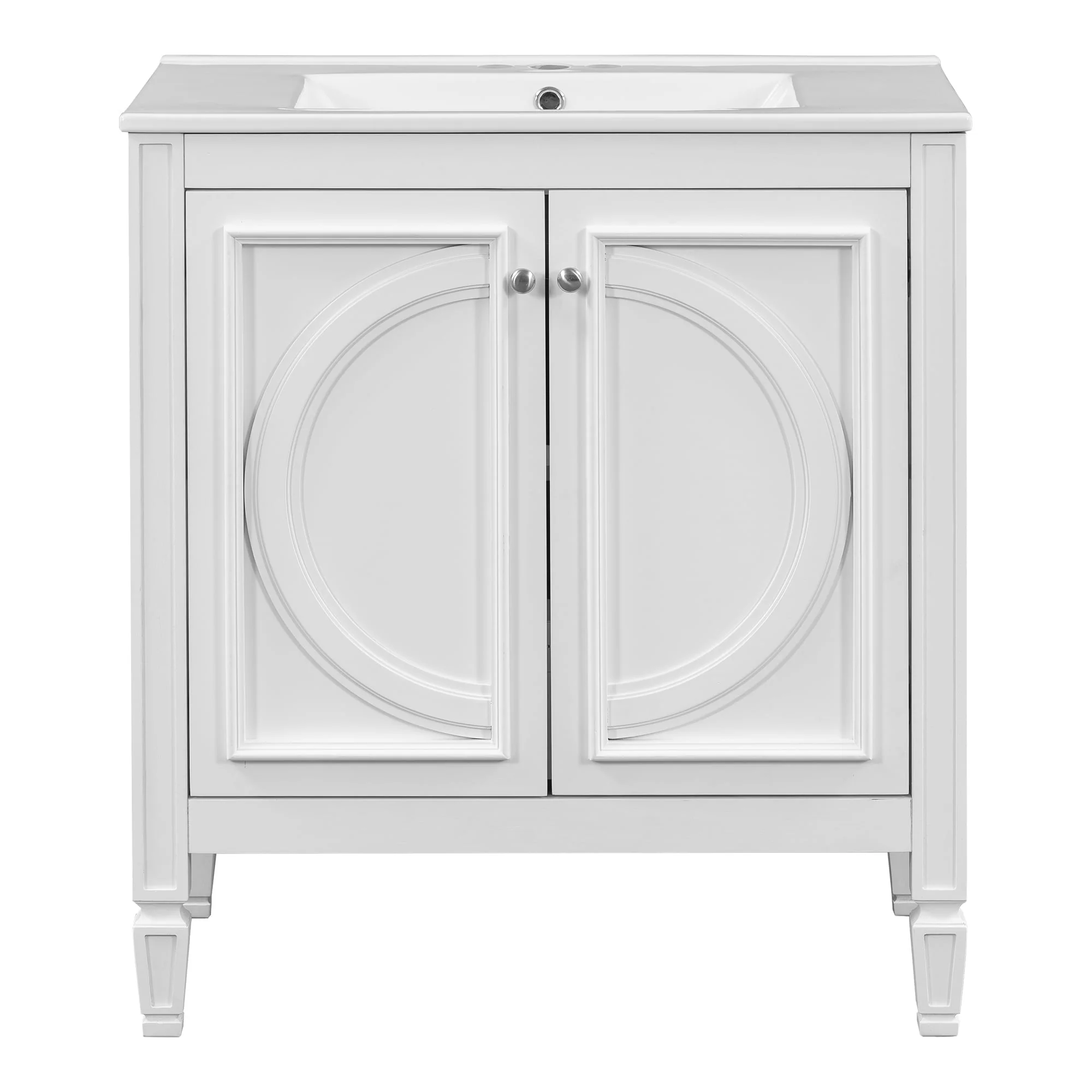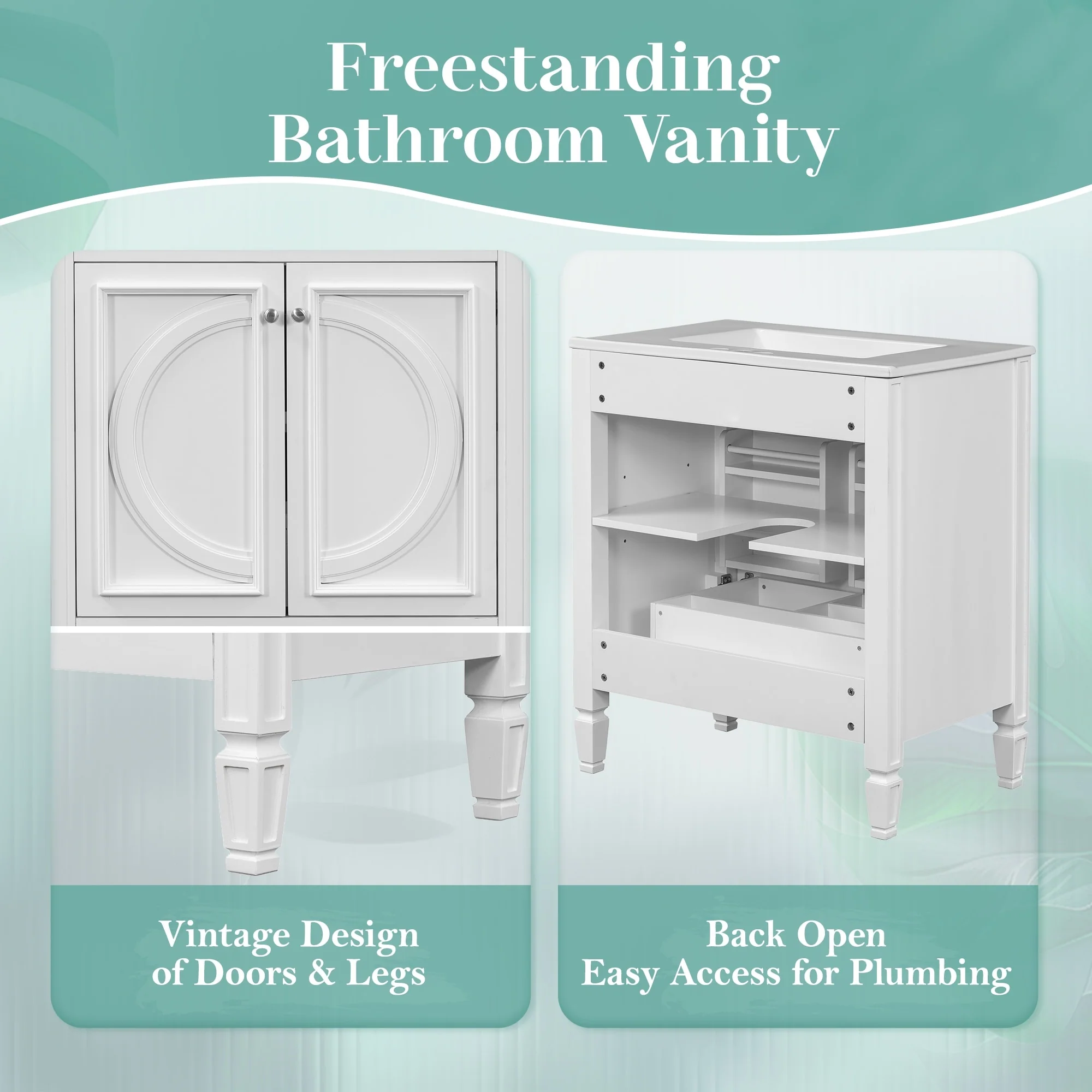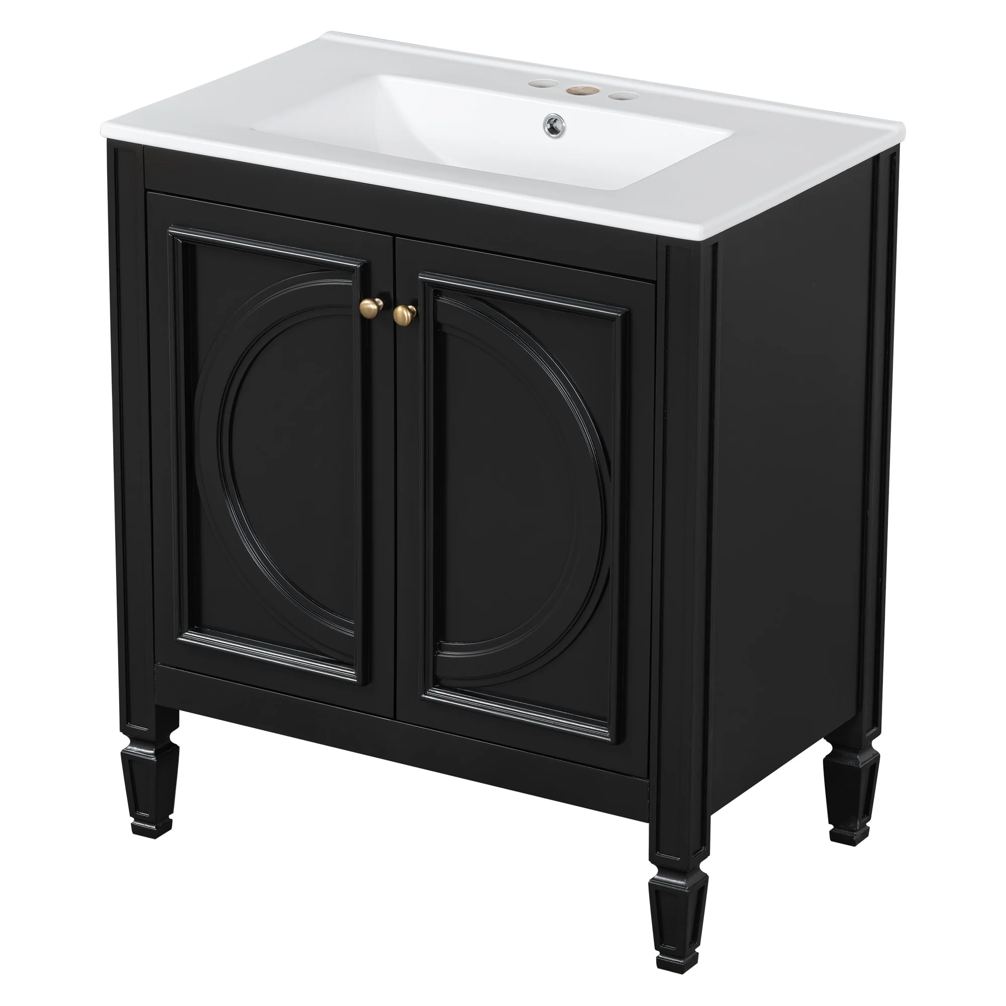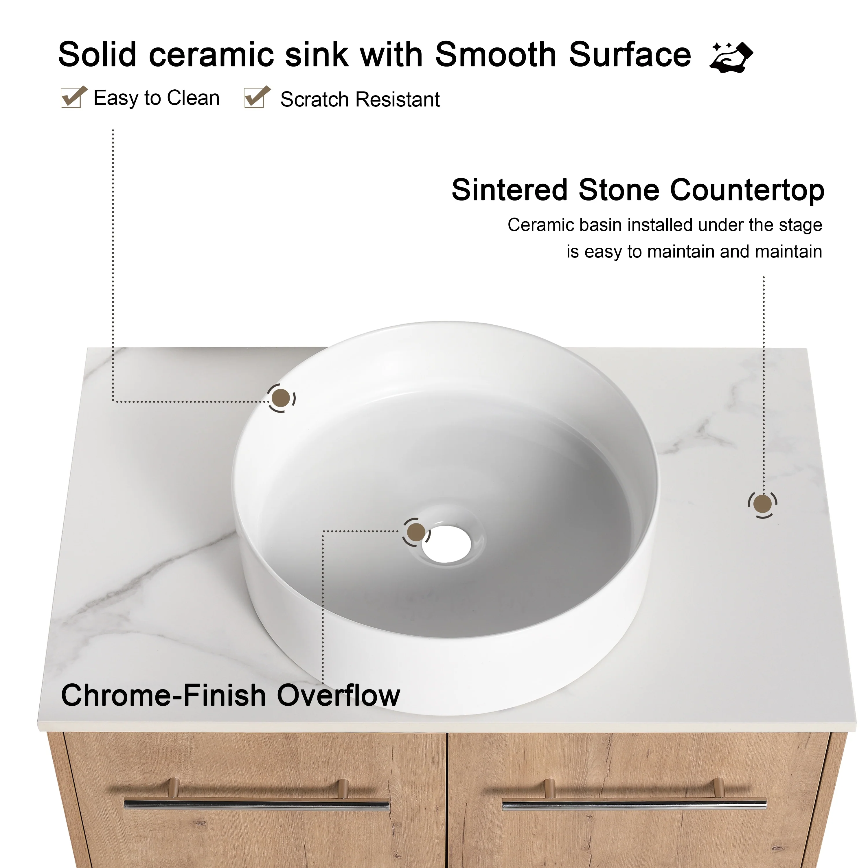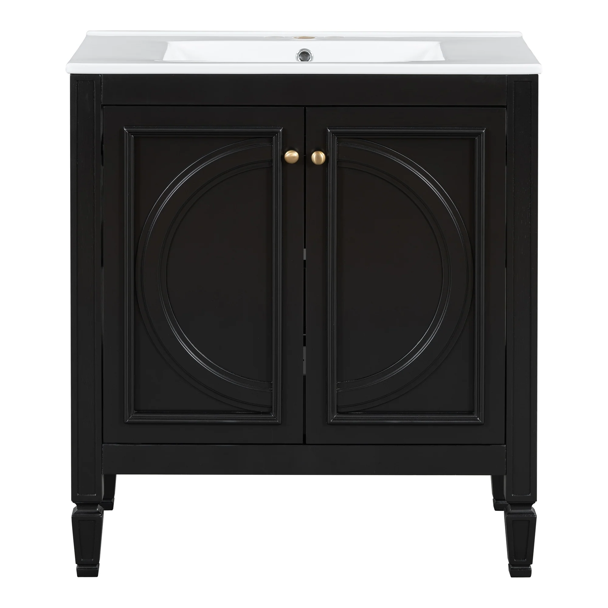 30inch Transitional Style Bathroom Vanity Cabinet Combo with Ceramic Sink