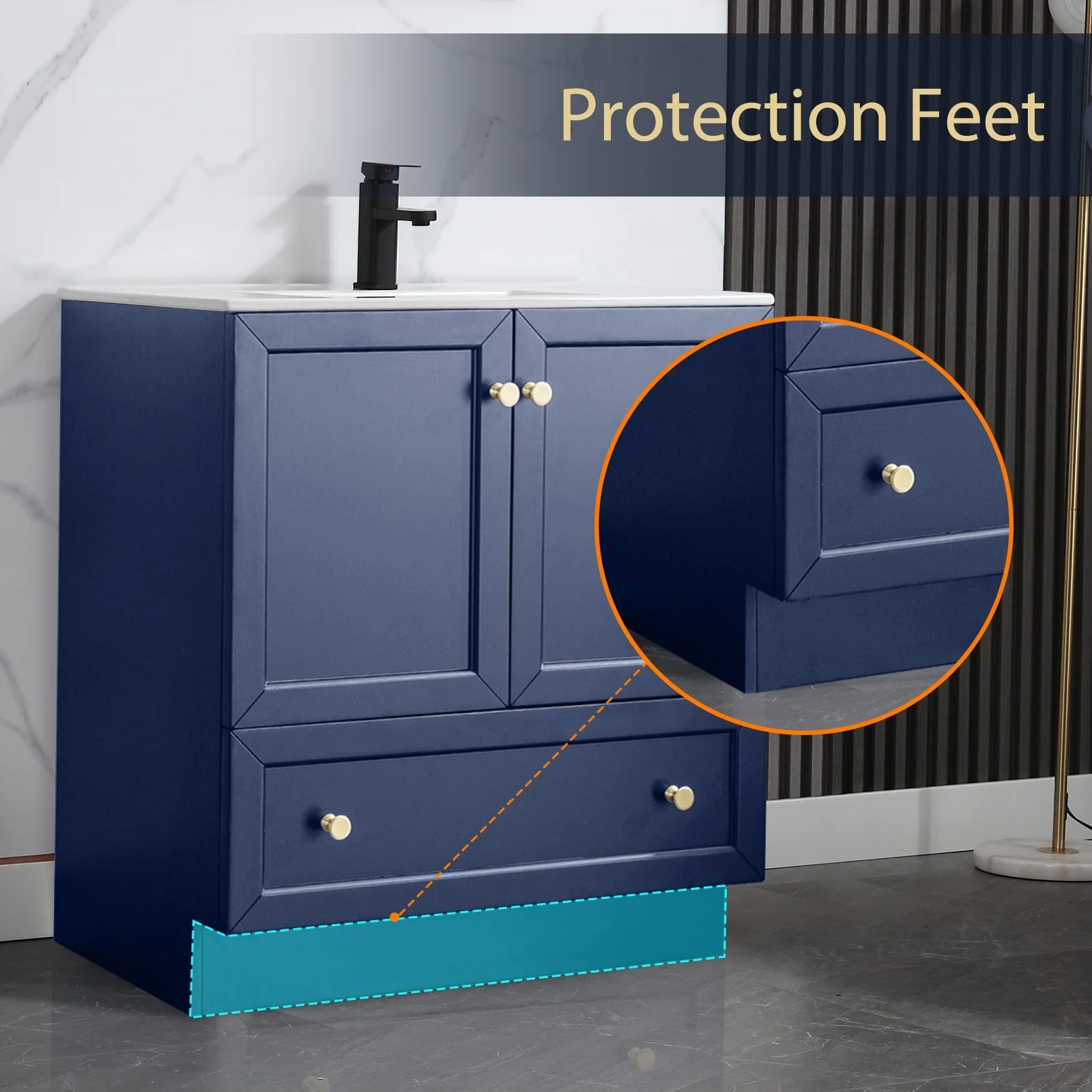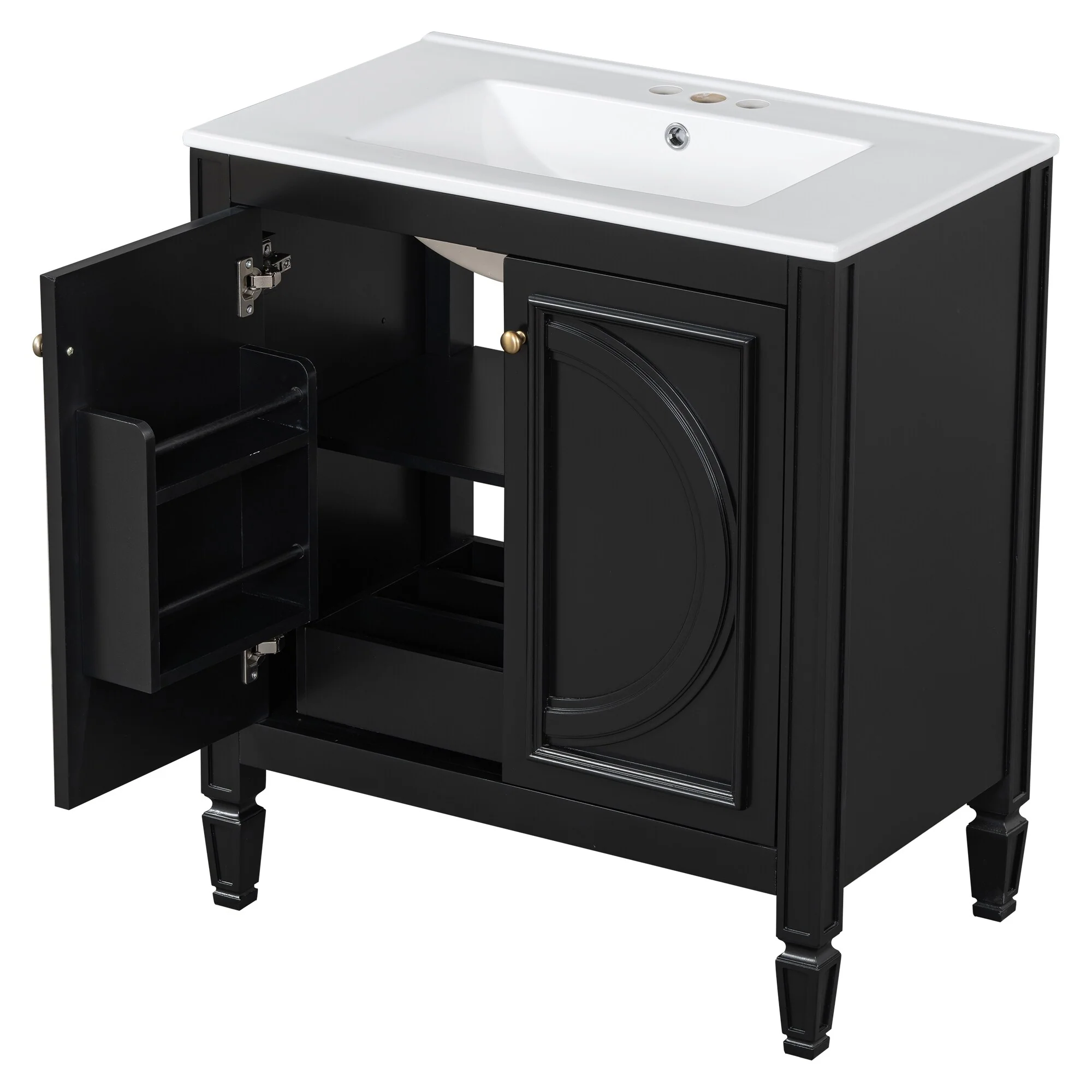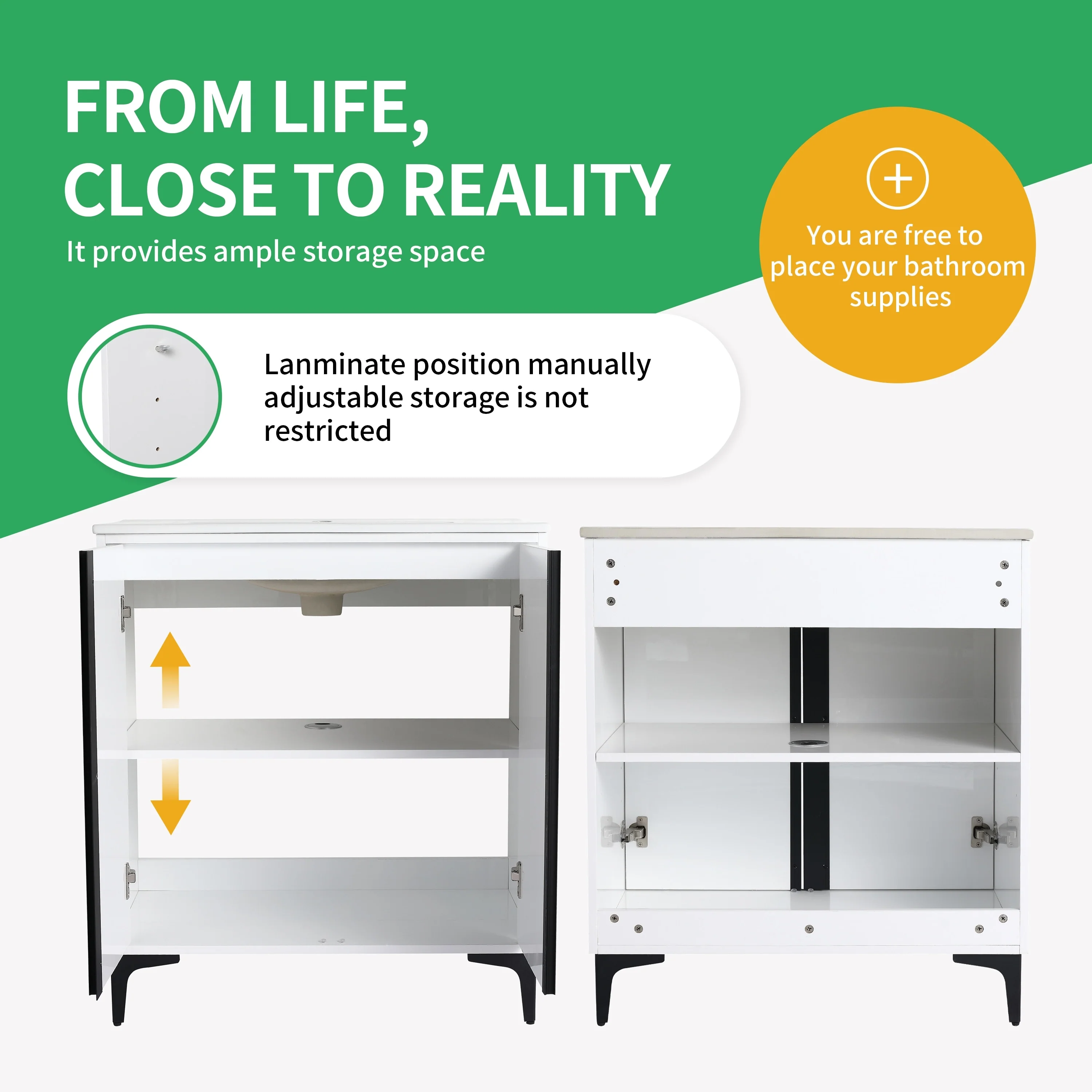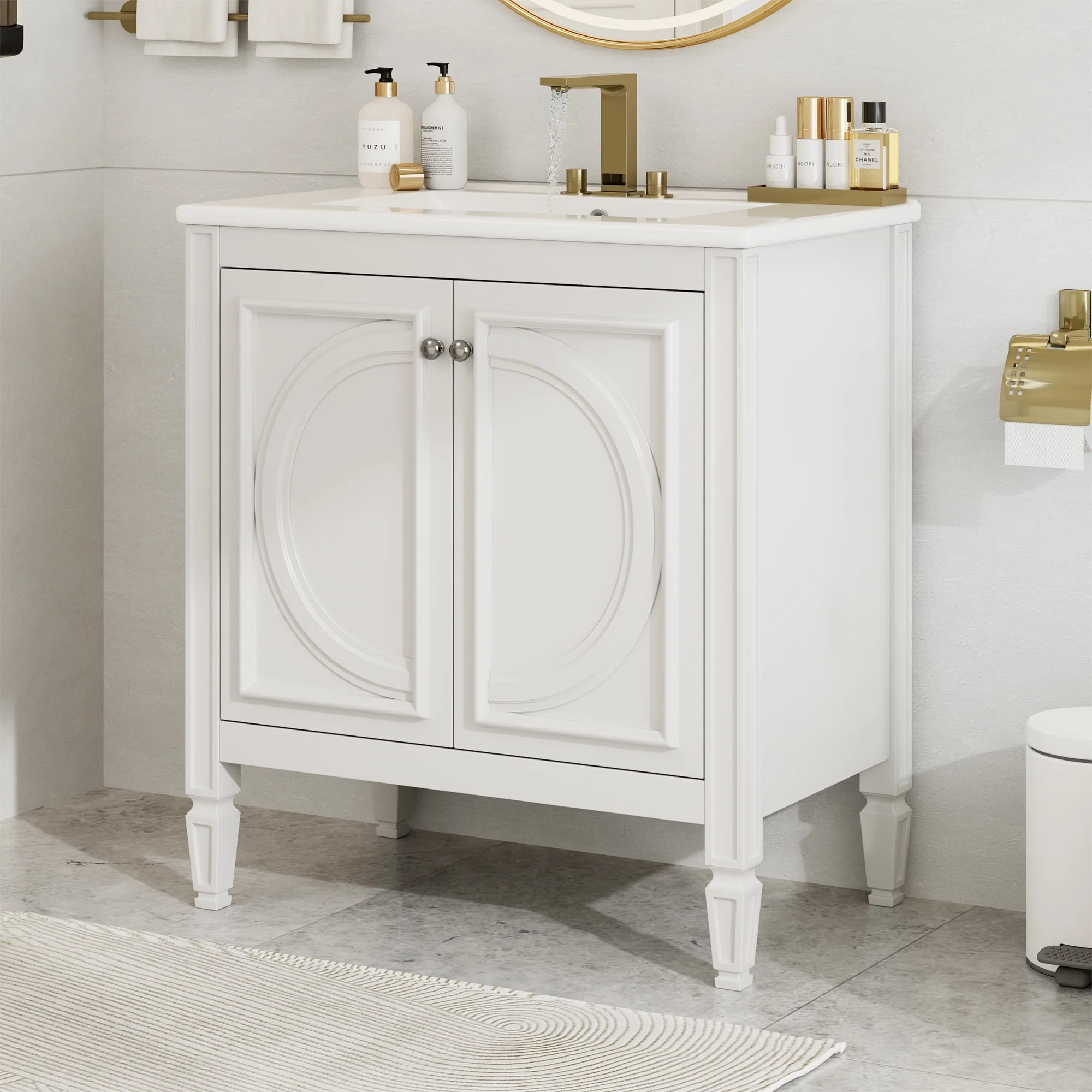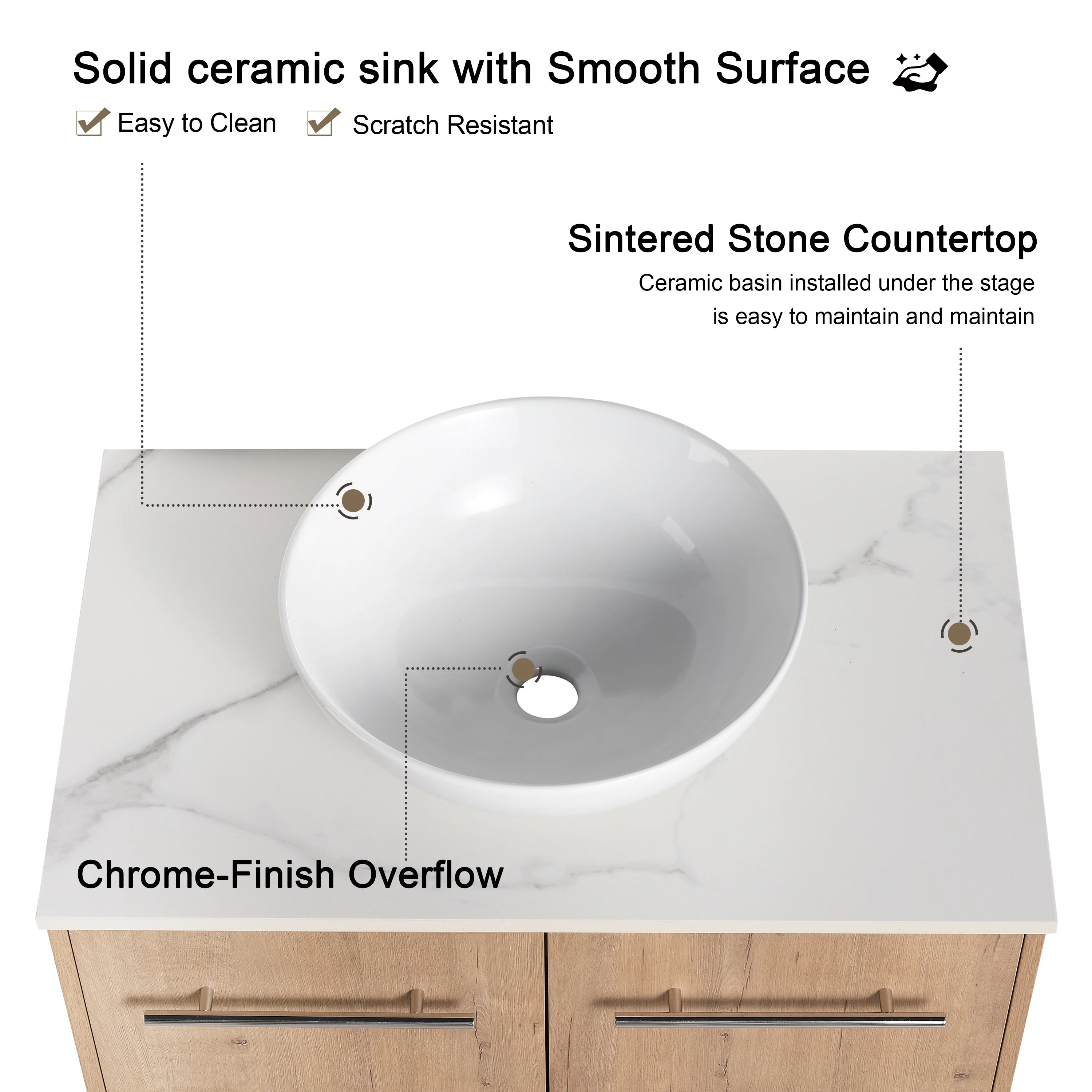 30inch Transitional Style Bathroom Vanity Cabinet Combo with Ceramic Sink