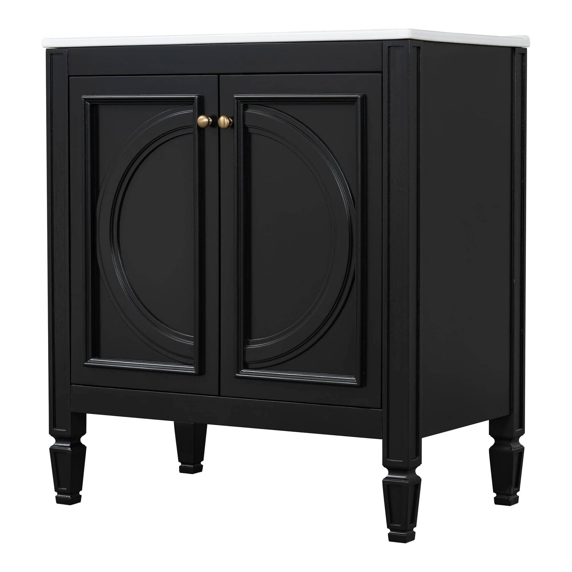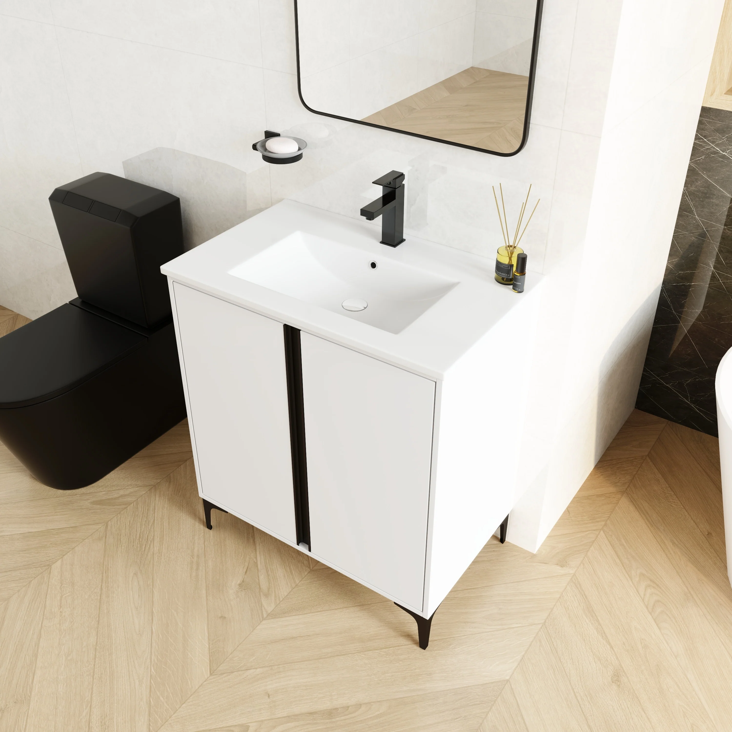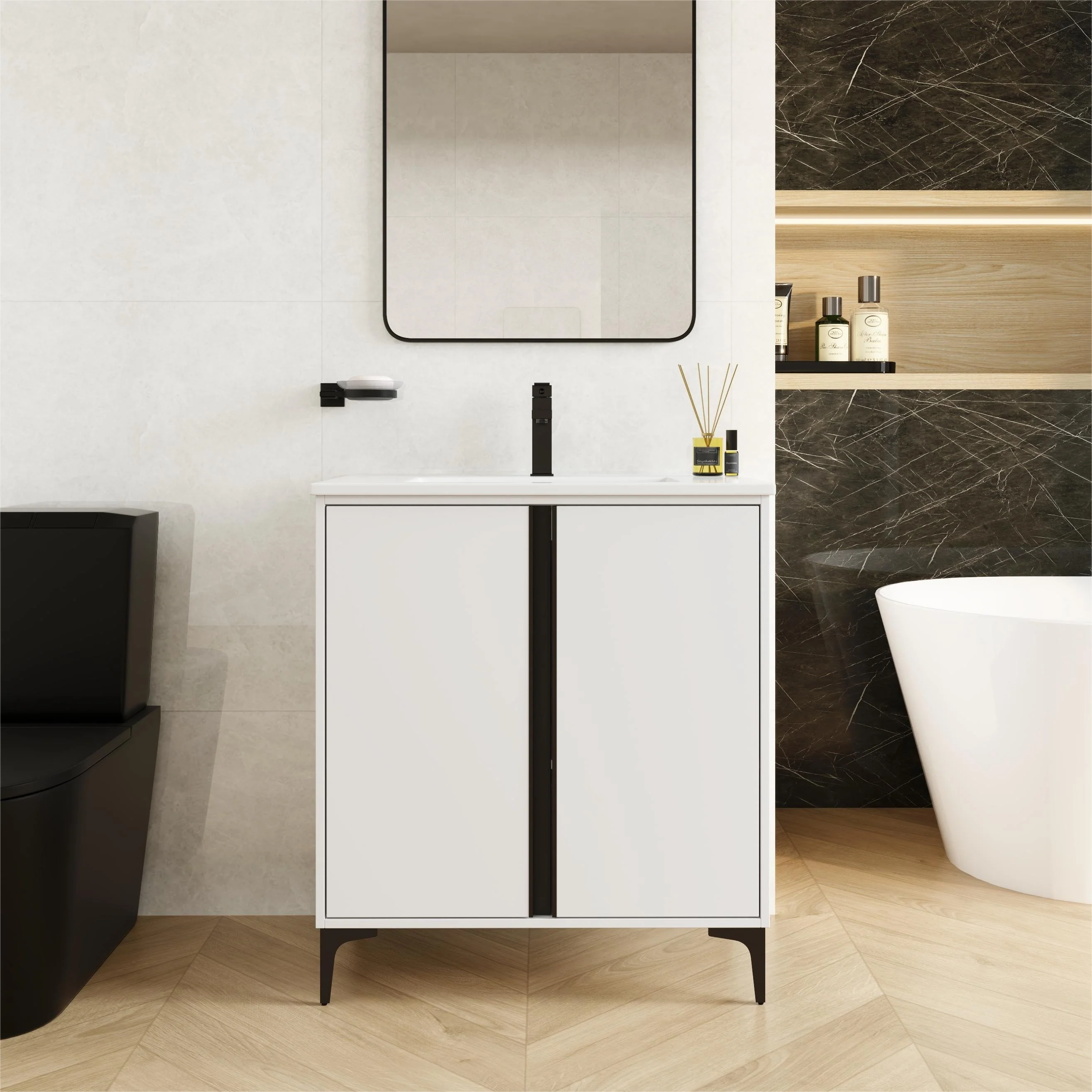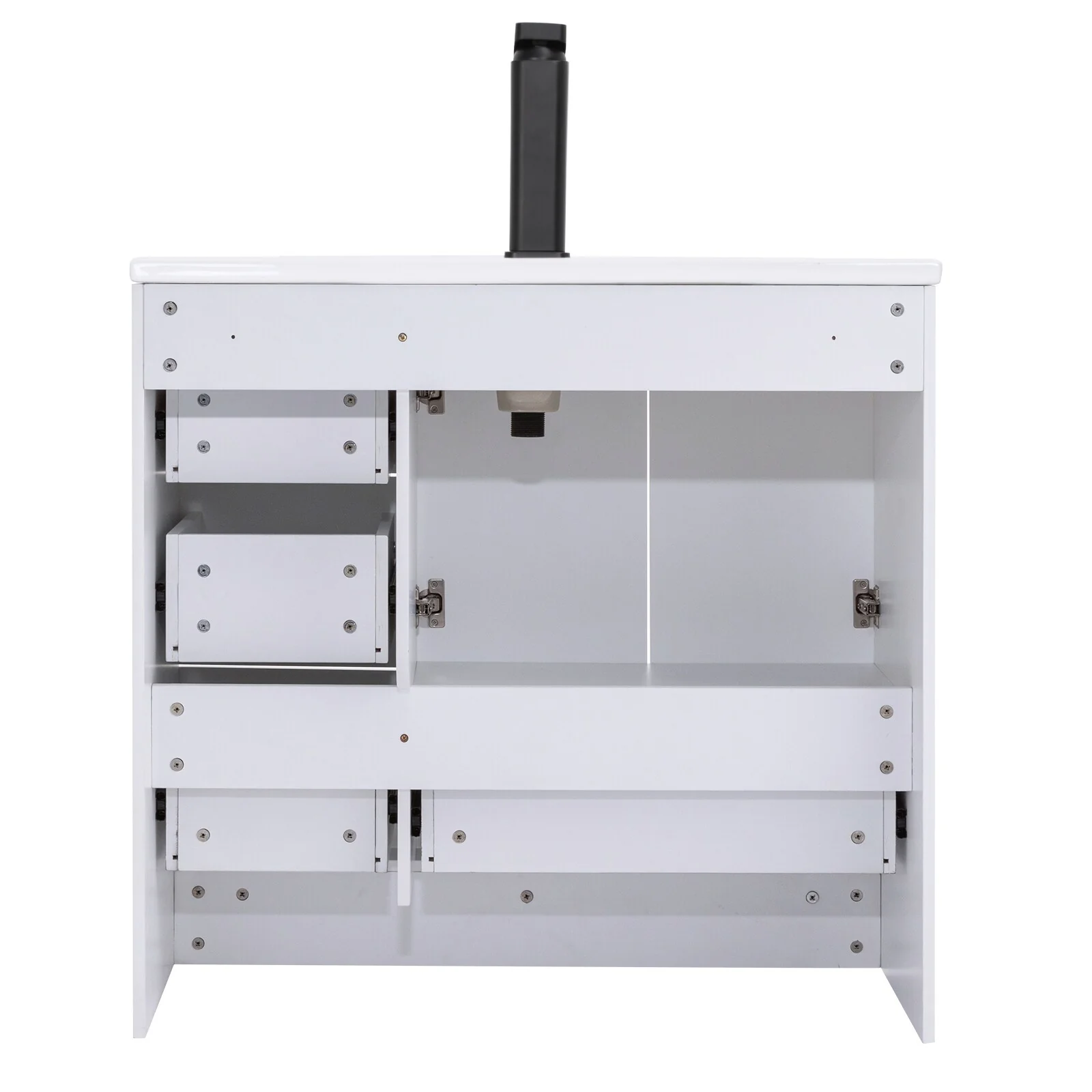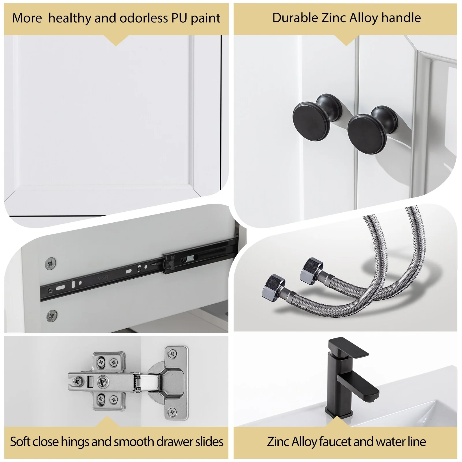 30inch Transitional Style Bathroom Vanity Cabinet Combo with Ceramic Sink