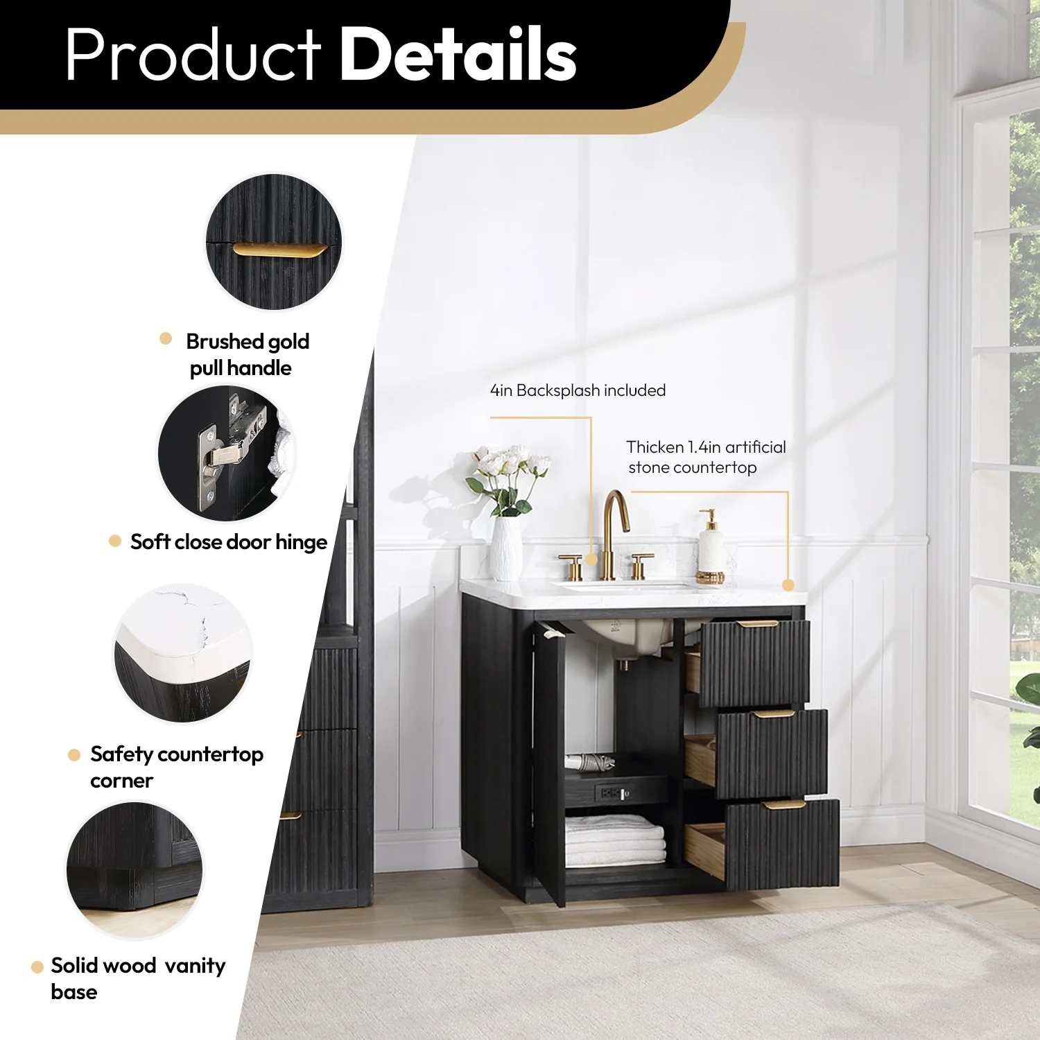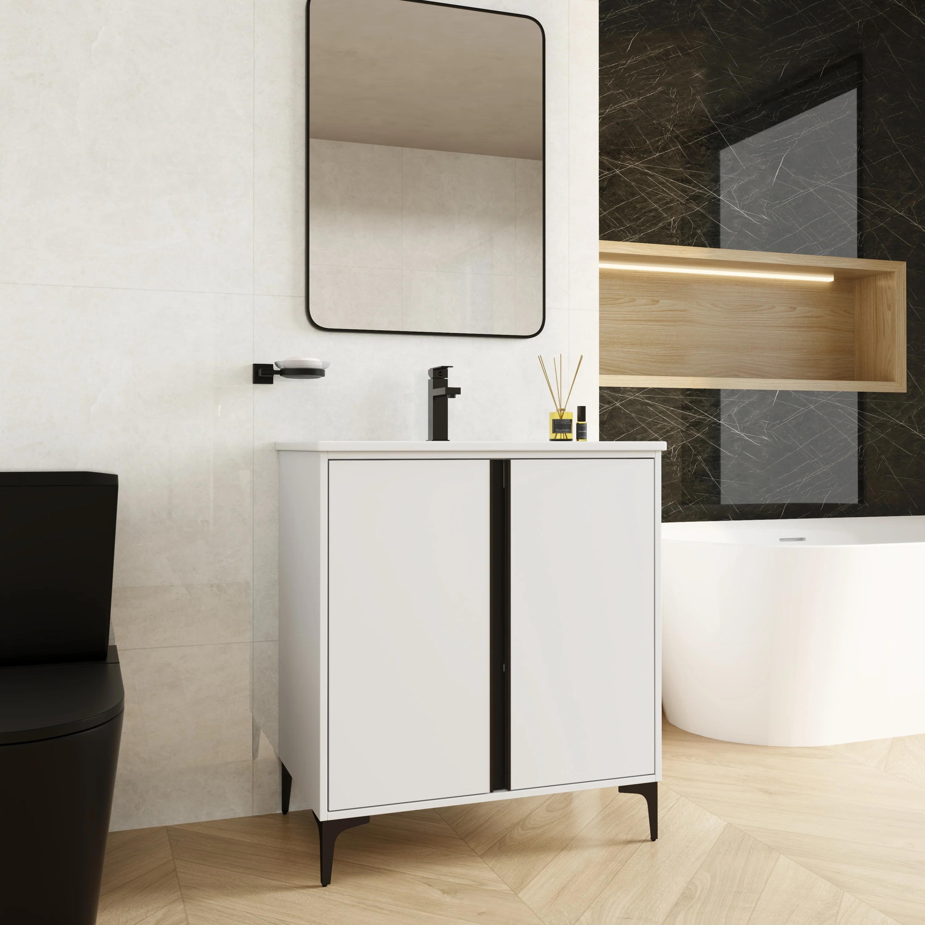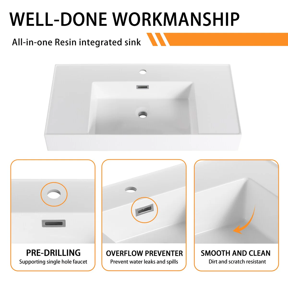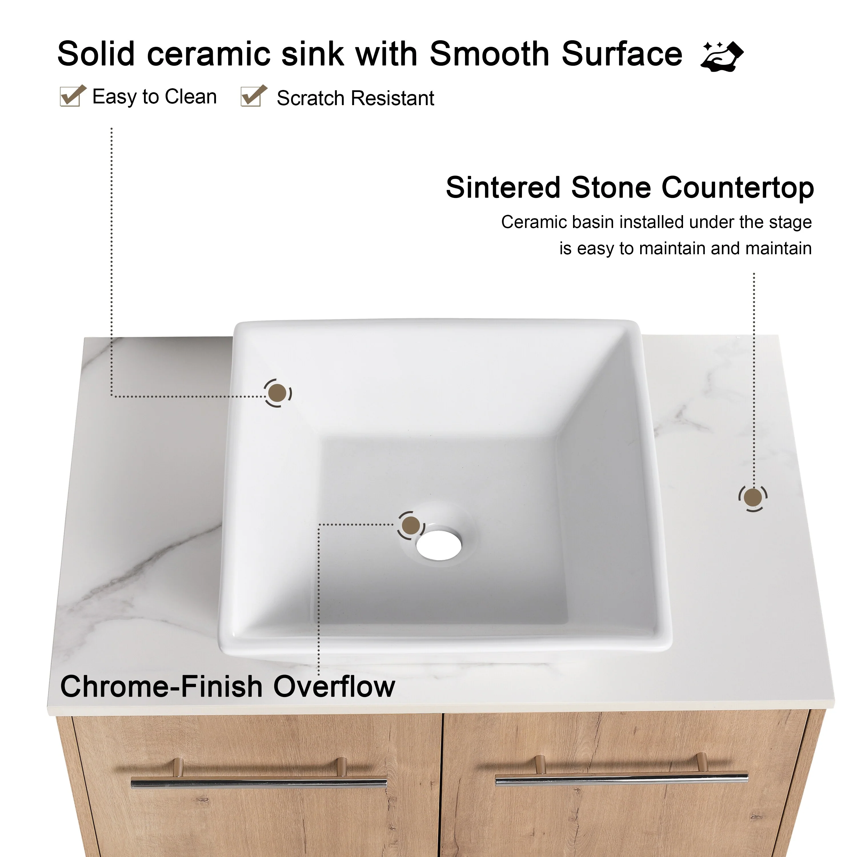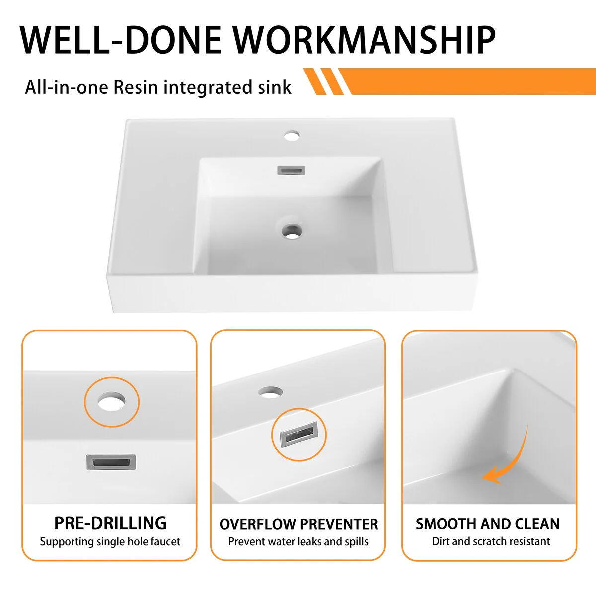 30inch Transitional Style Bathroom Vanity Cabinet Combo with Ceramic Sink