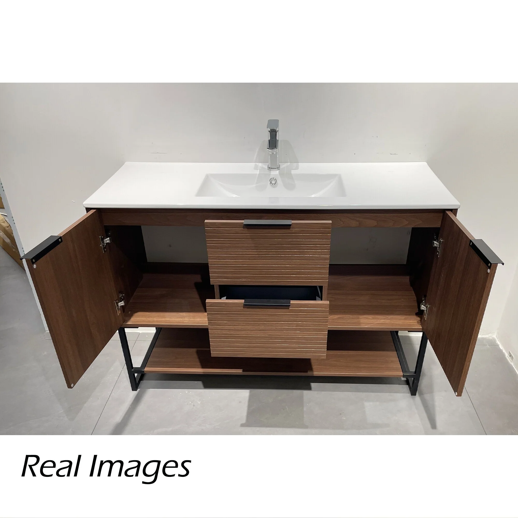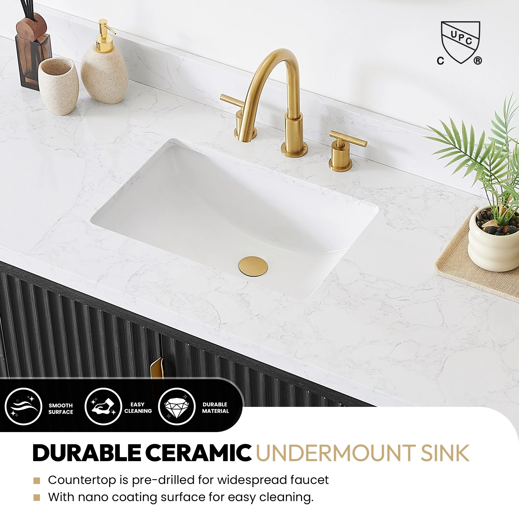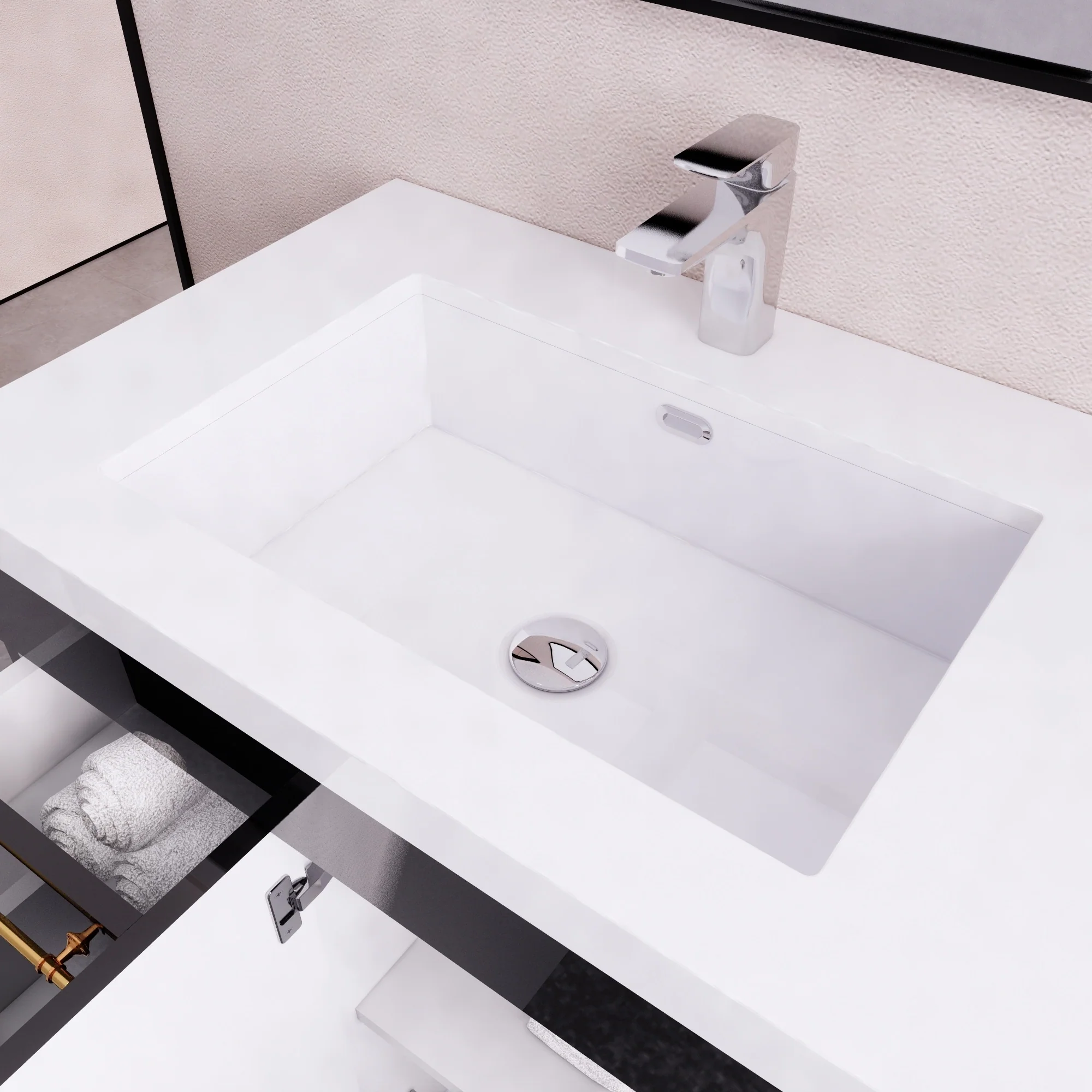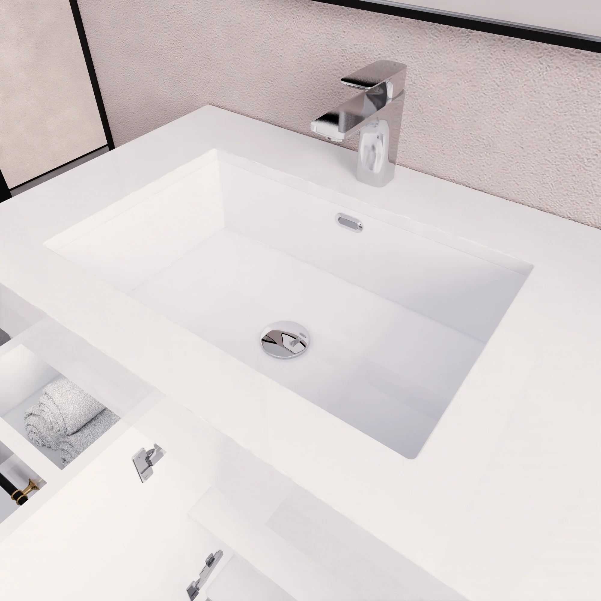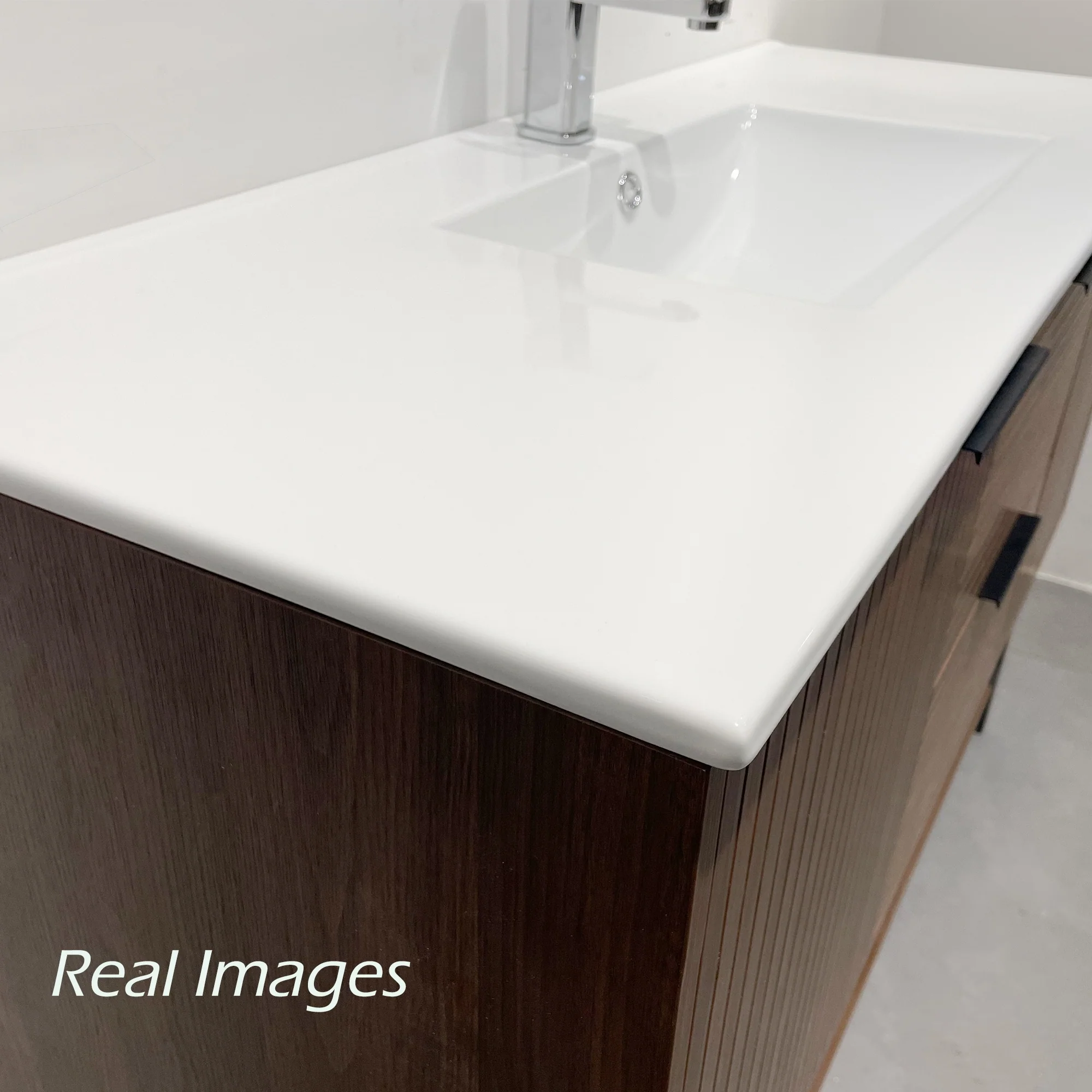 Solid Wood Bathroom Vanity Cabinet with Ceramic Undermount Sink Top Skirting Design