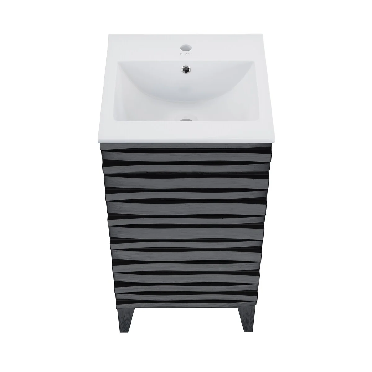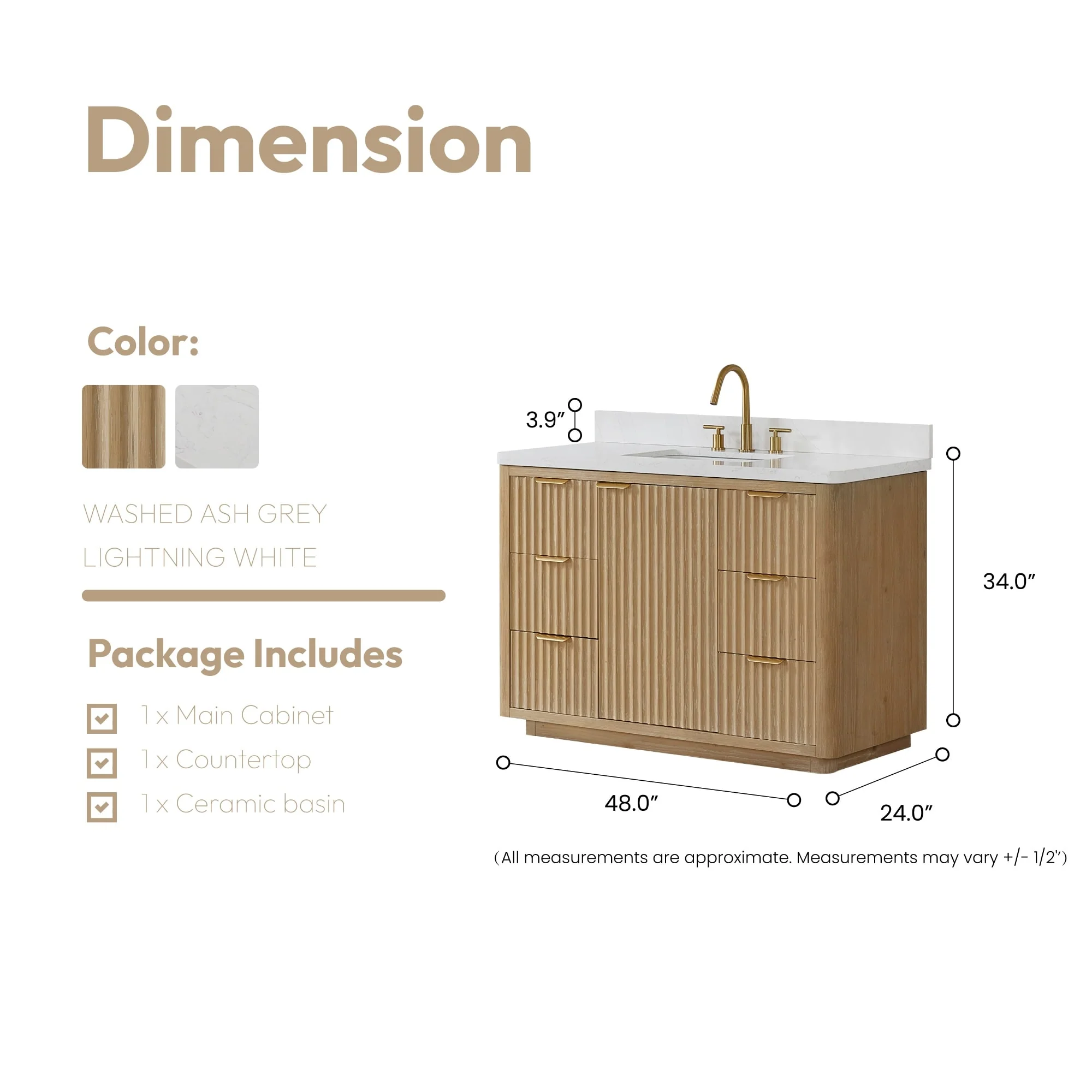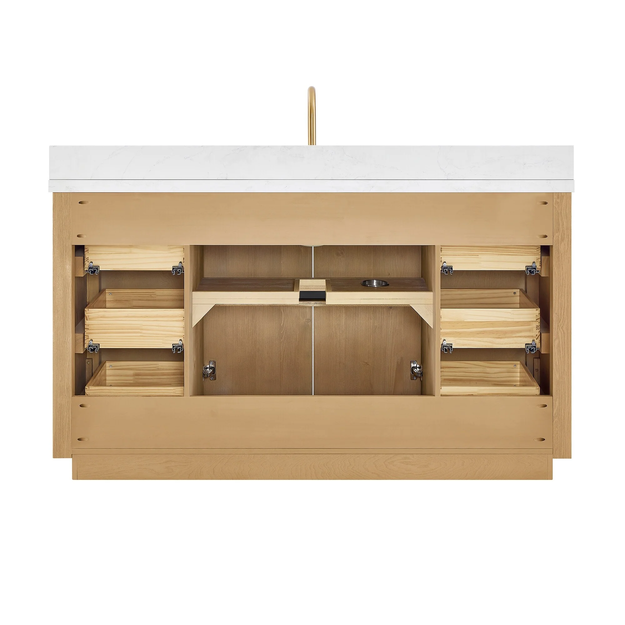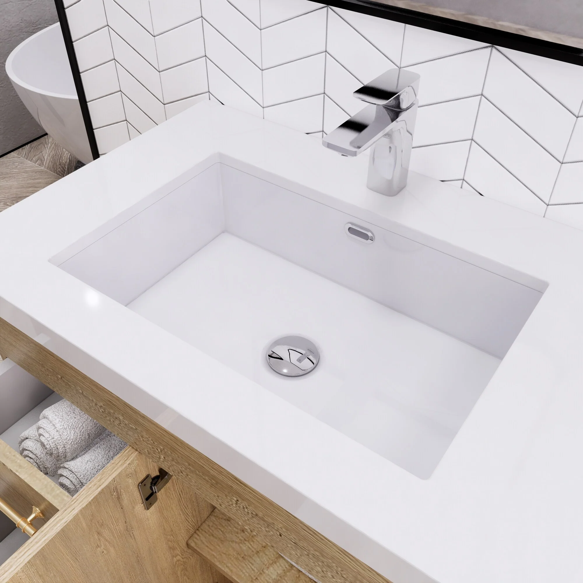 Solid Wood Bathroom Vanity Cabinet with Ceramic Undermount Sink Top Skirting Design
