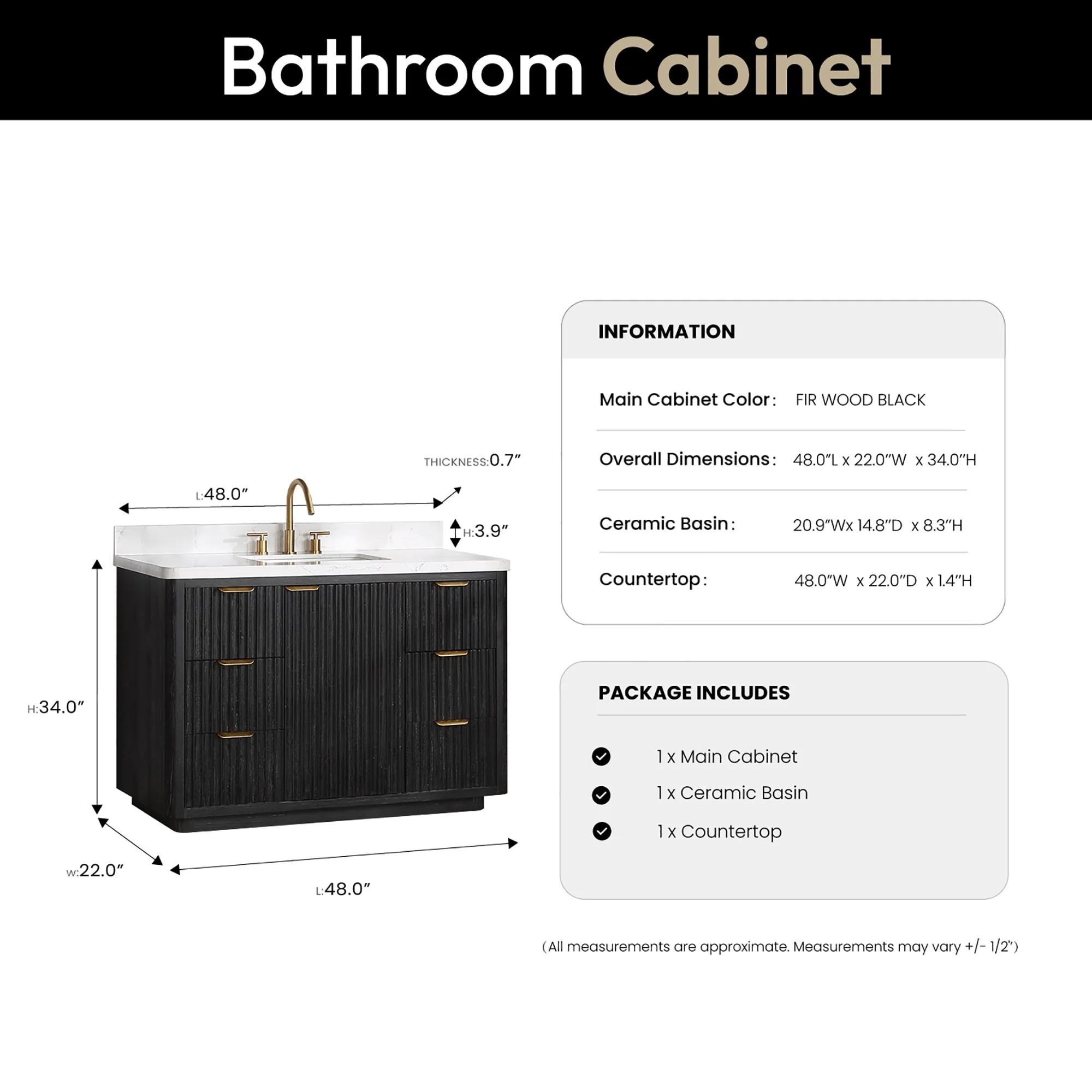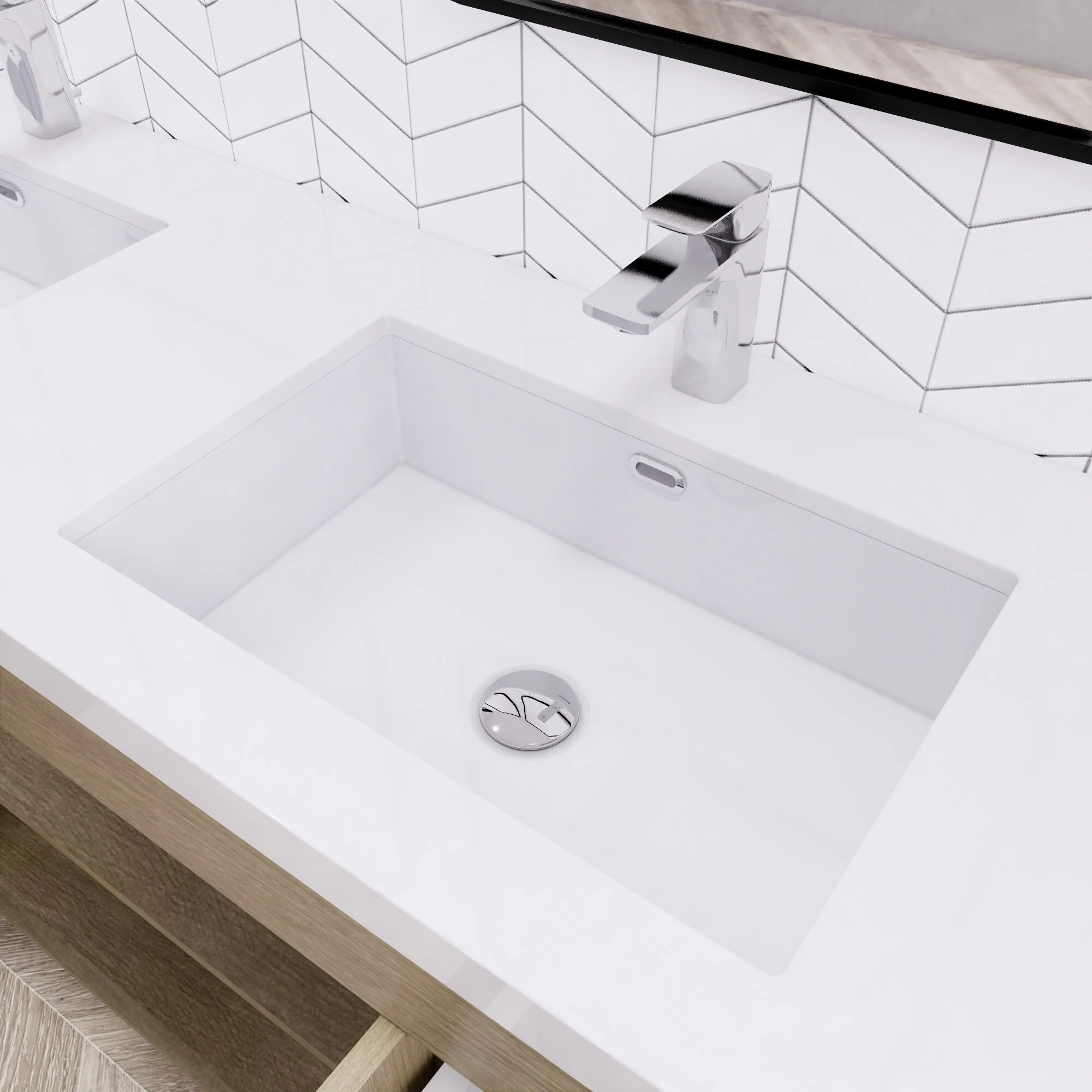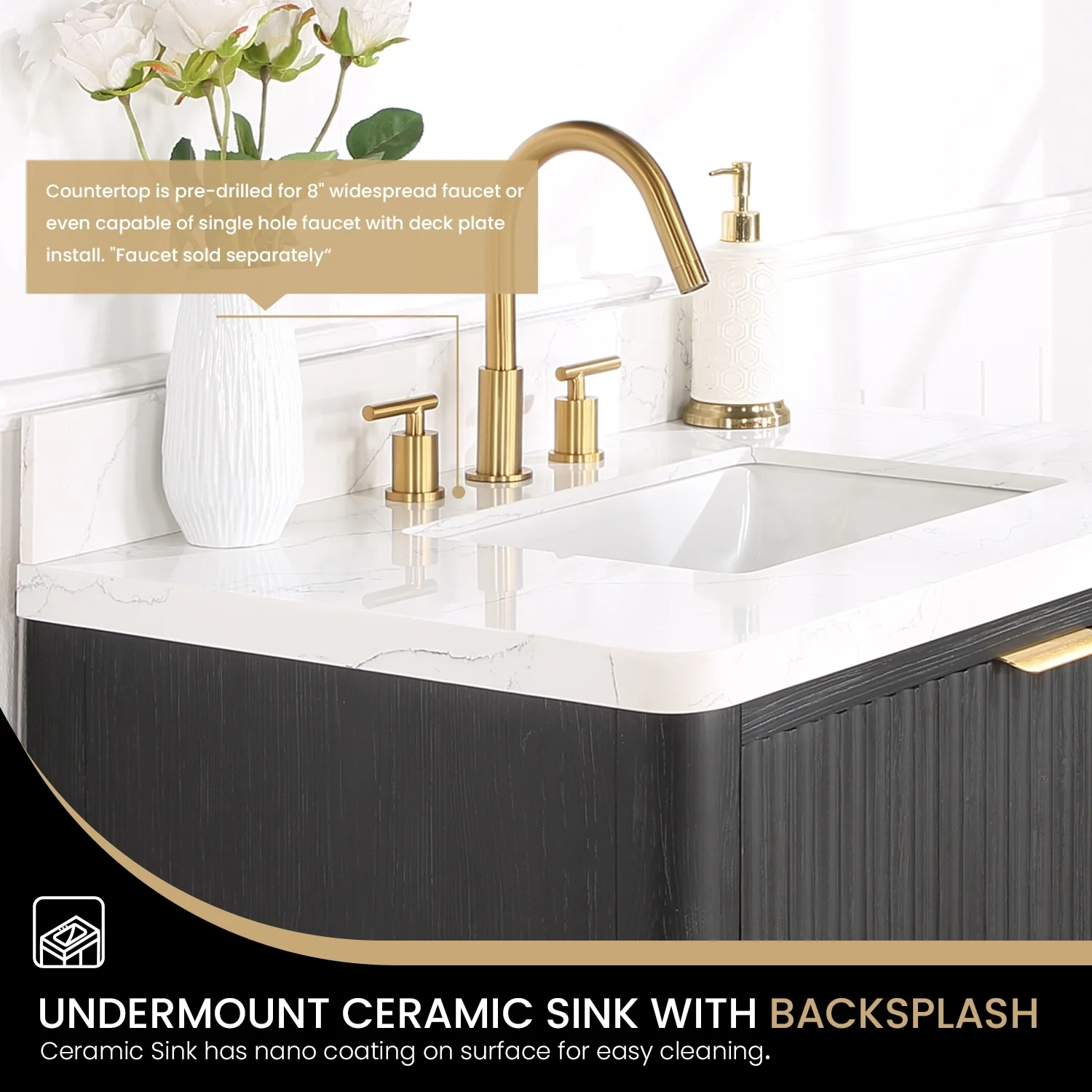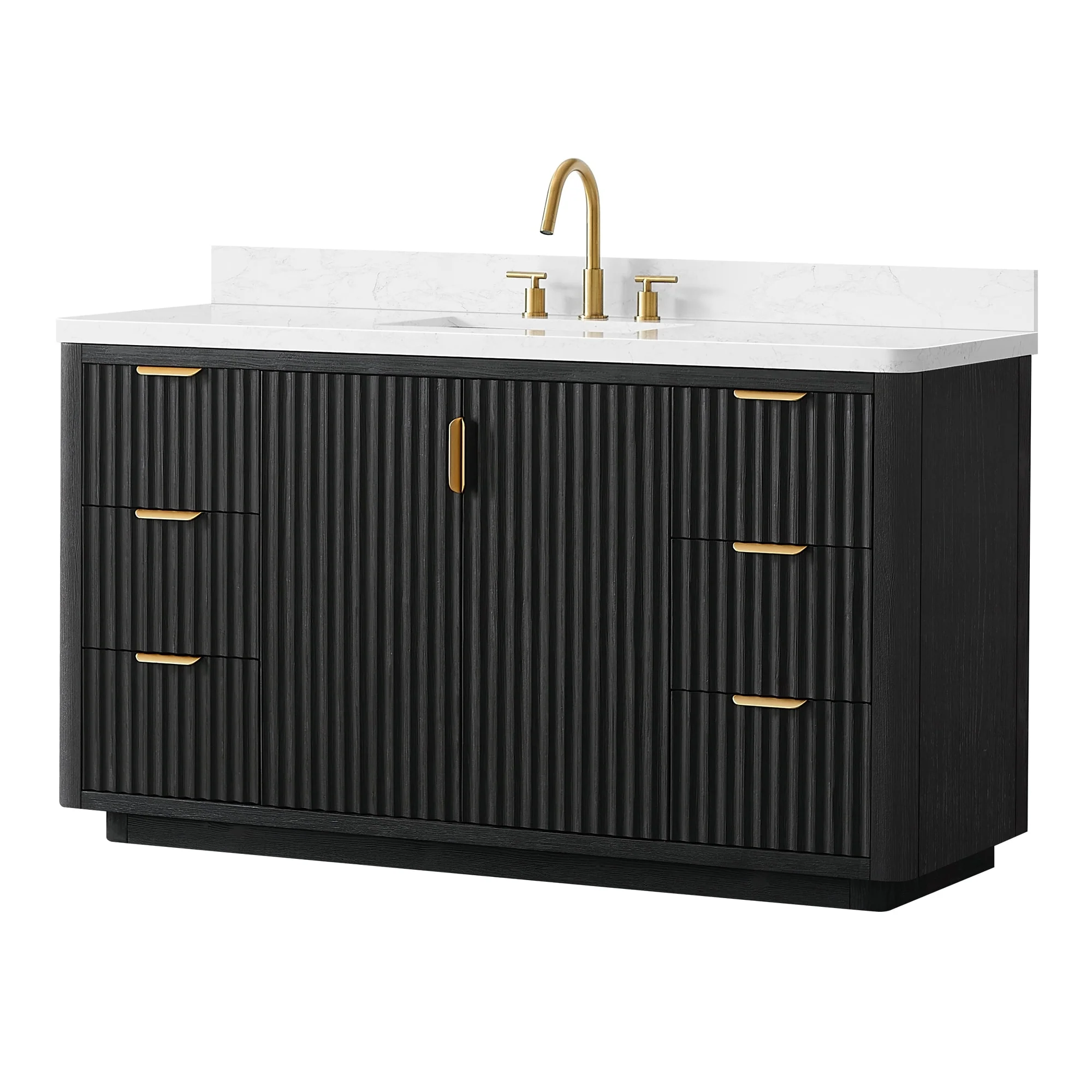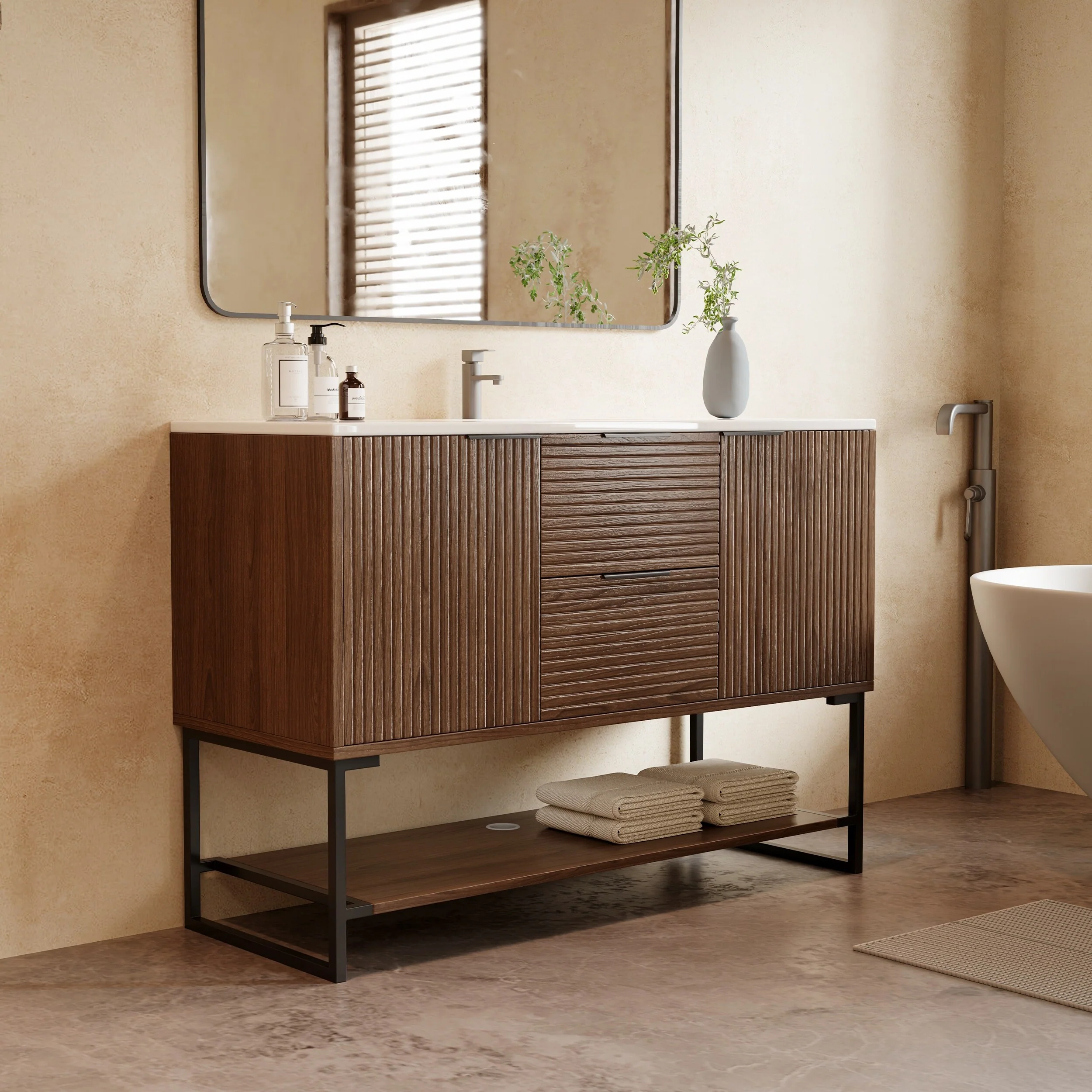 Solid Wood Bathroom Vanity Cabinet with Ceramic Undermount Sink Top Skirting Design