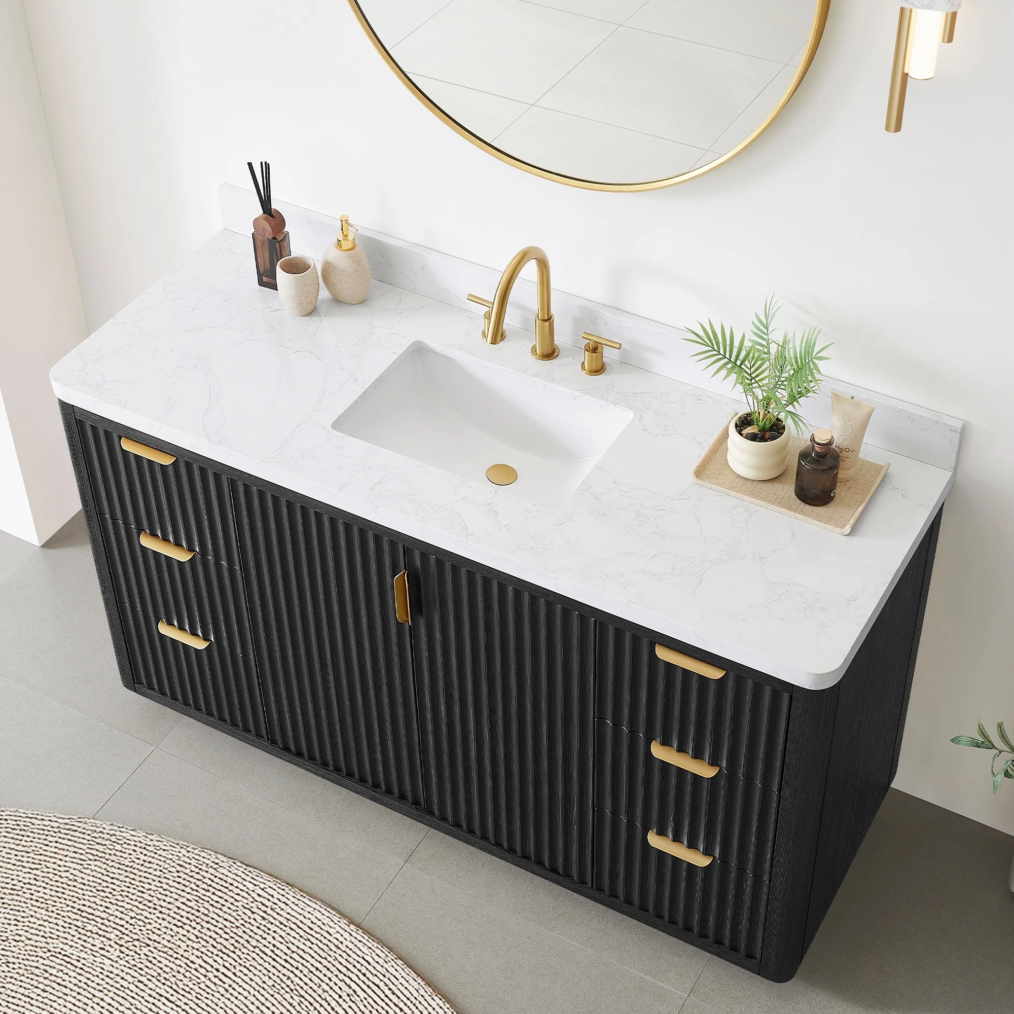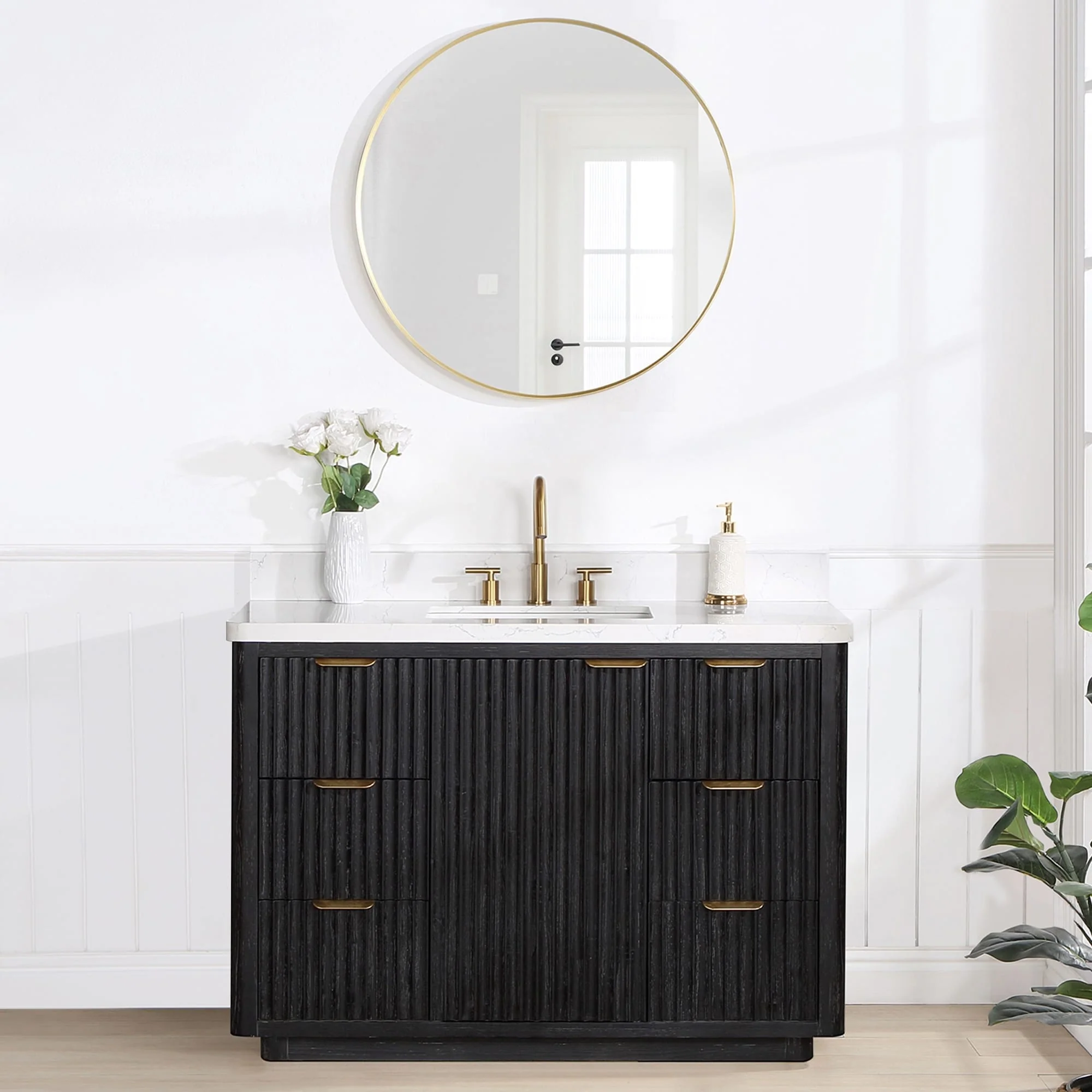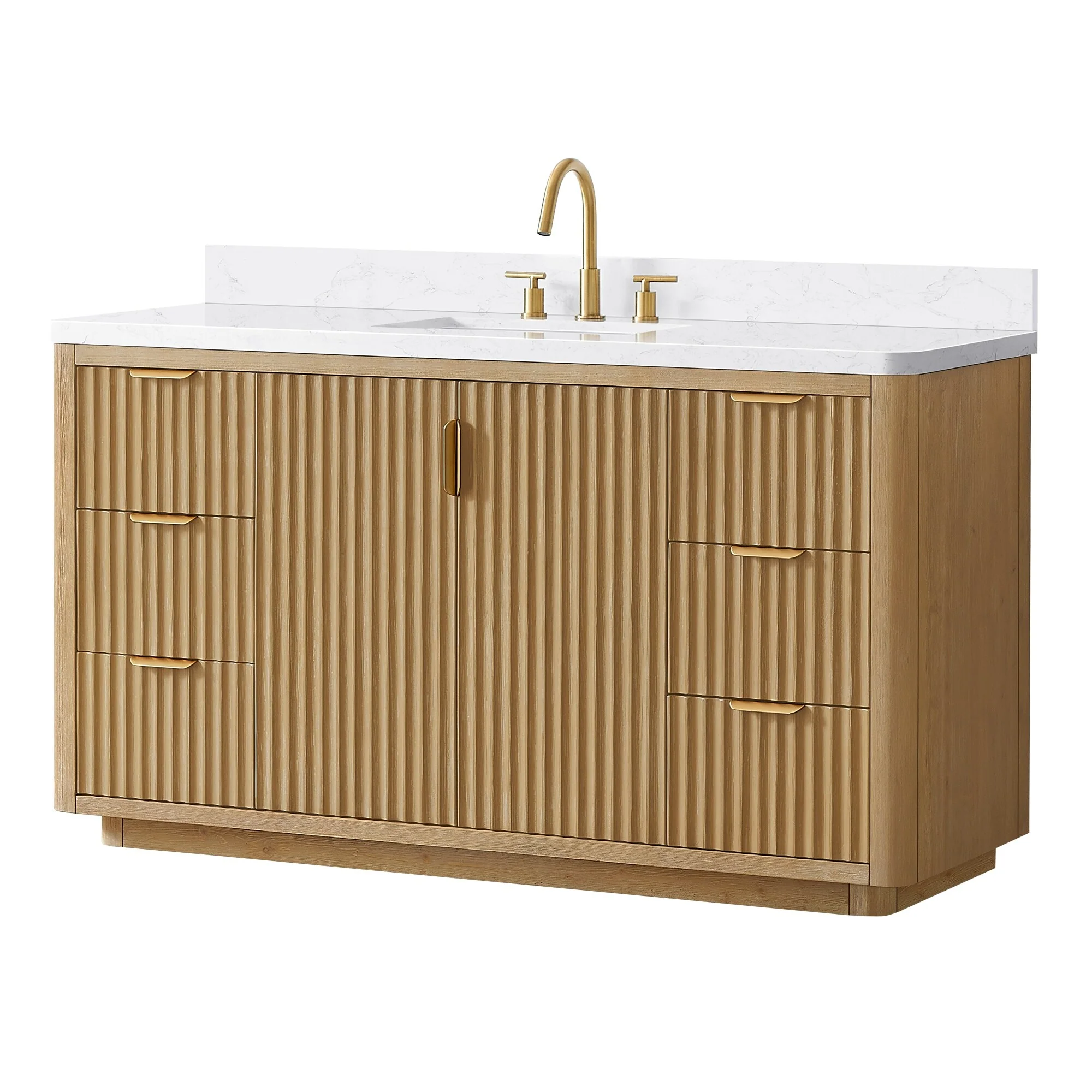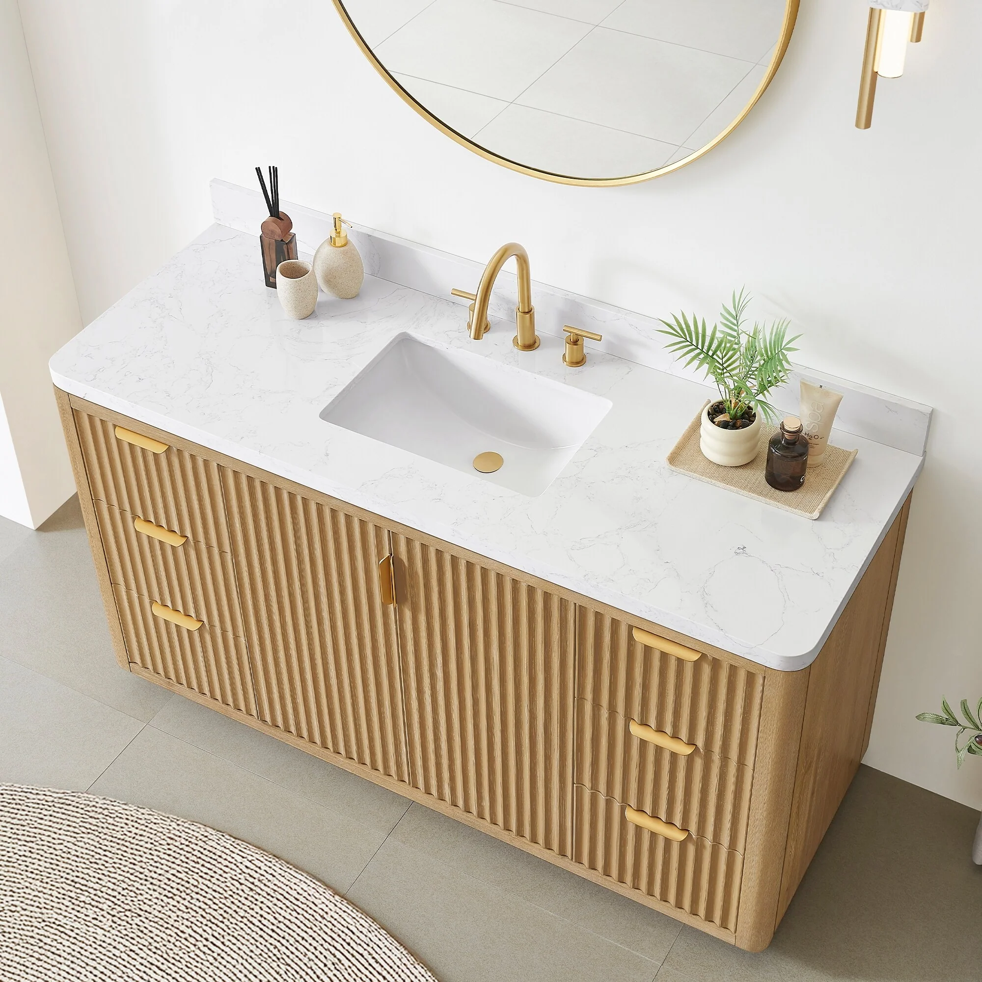 Solid Wood Bathroom Vanity Cabinet with Ceramic Undermount Sink Top Skirting Design