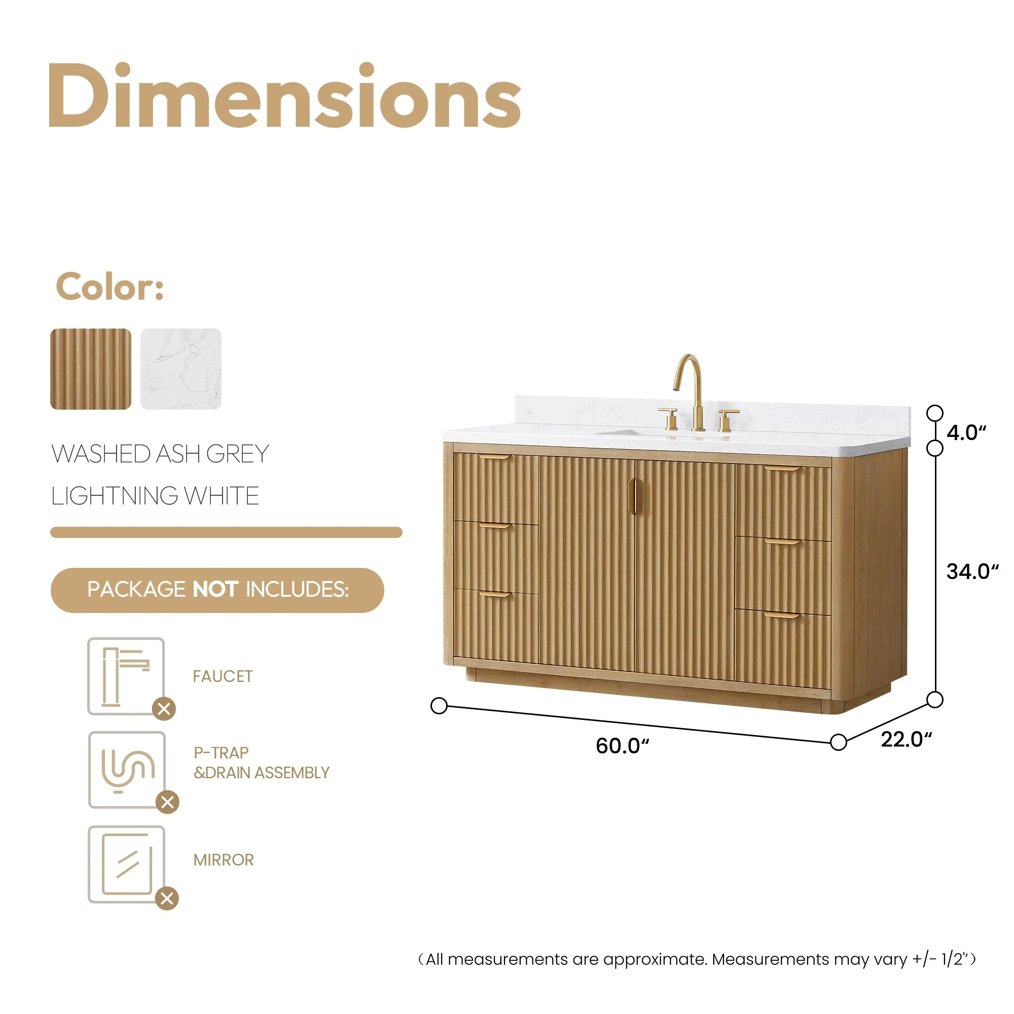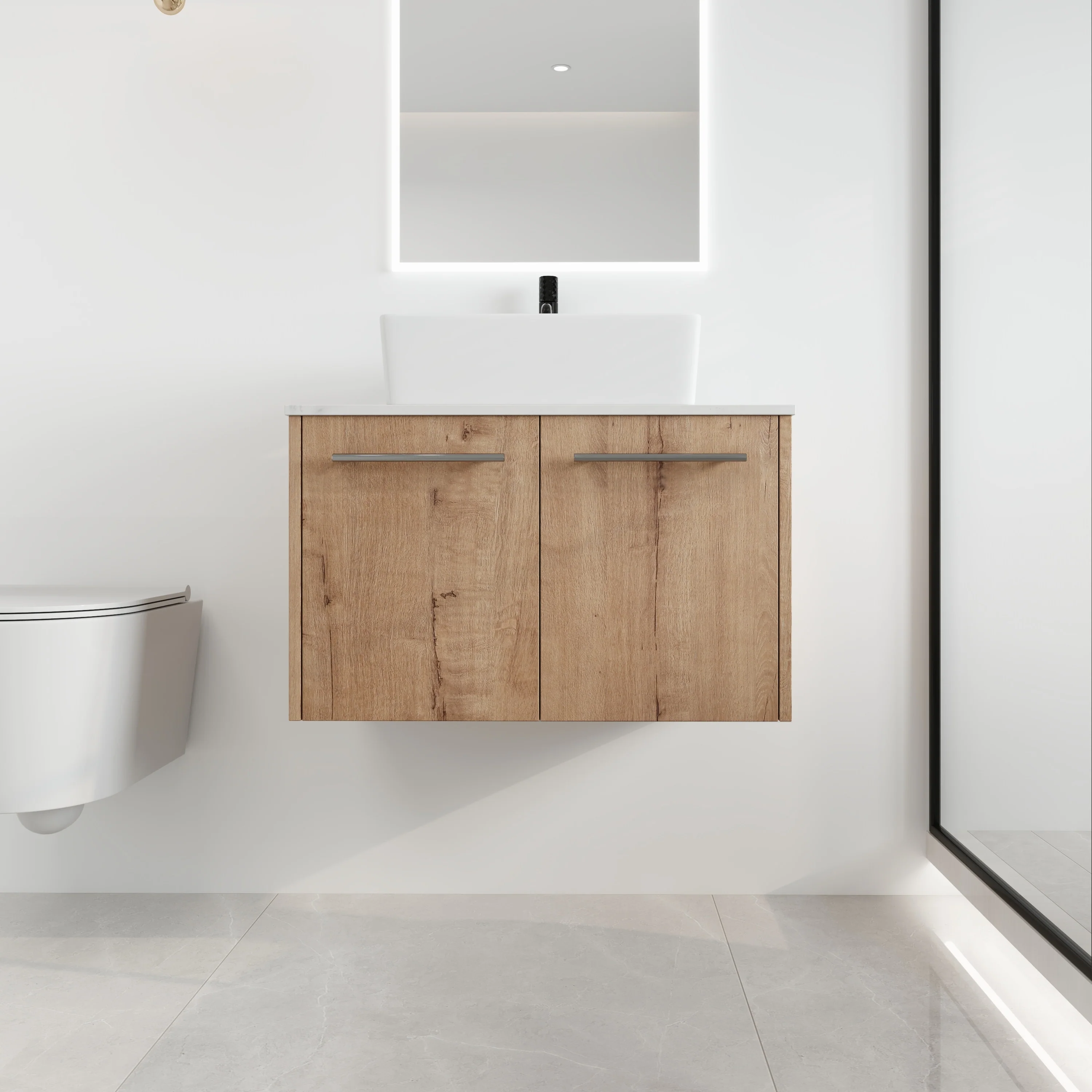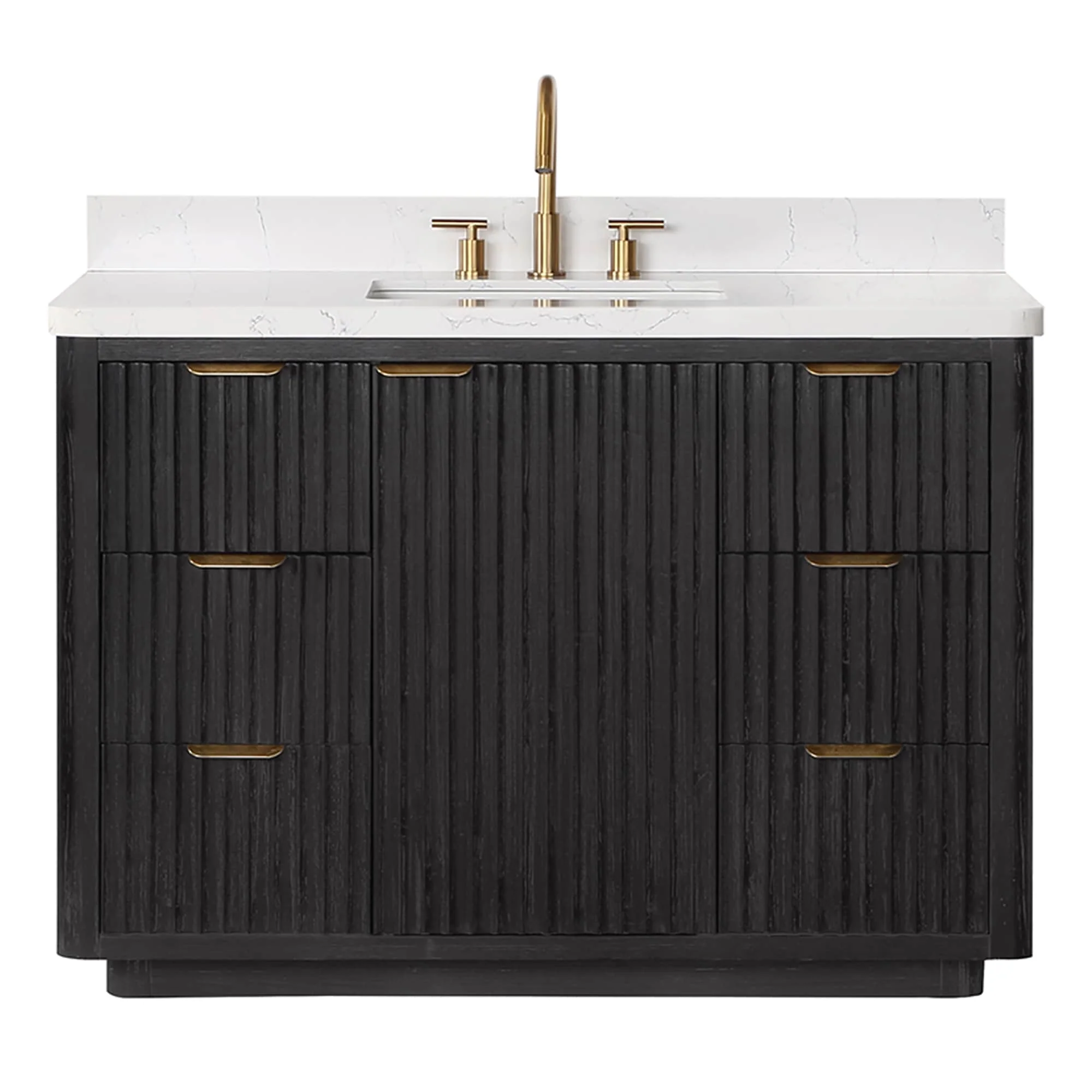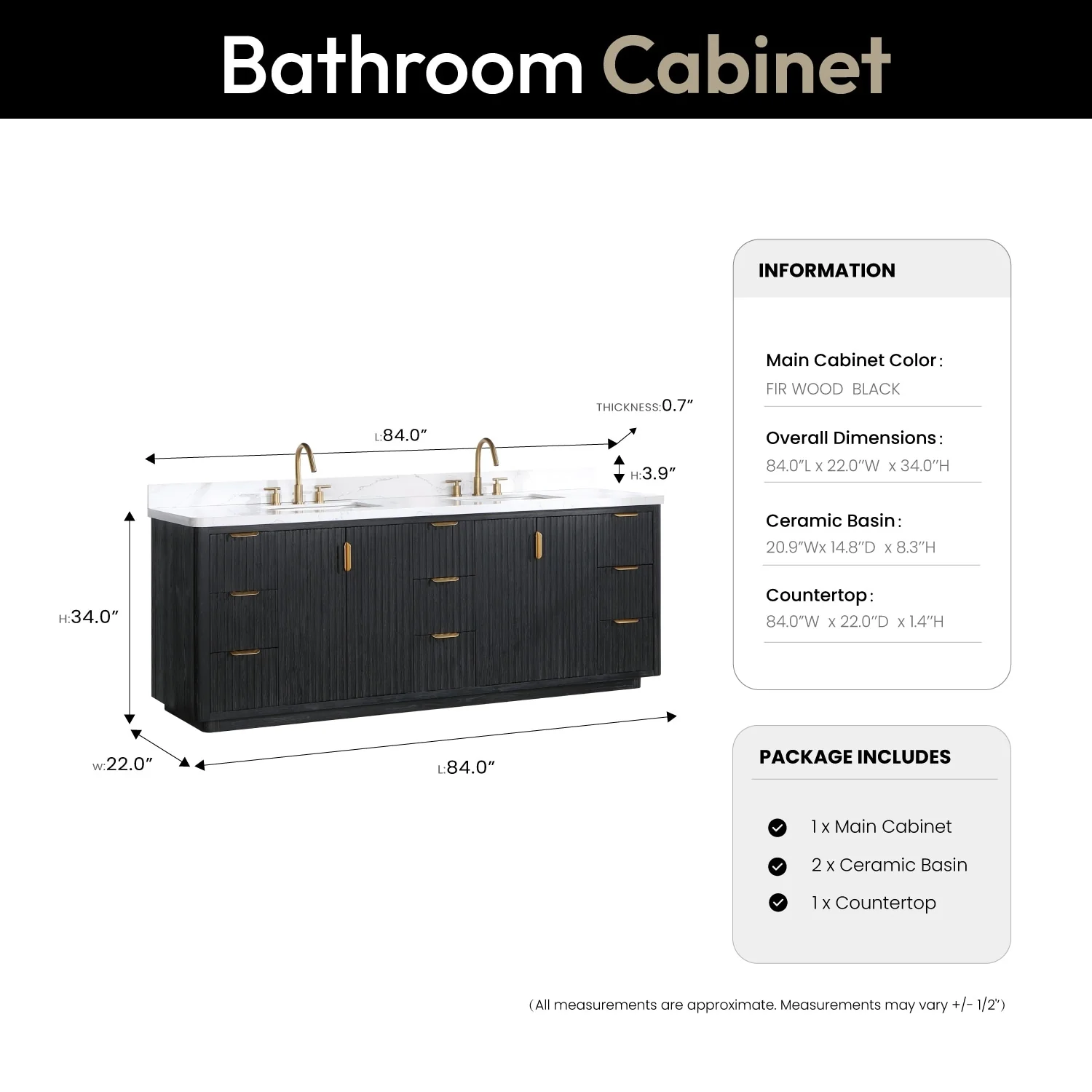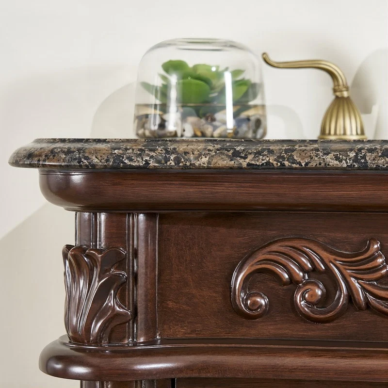 Solid Wood Bathroom Vanity Cabinet with Ceramic Undermount Sink Top Skirting Design
