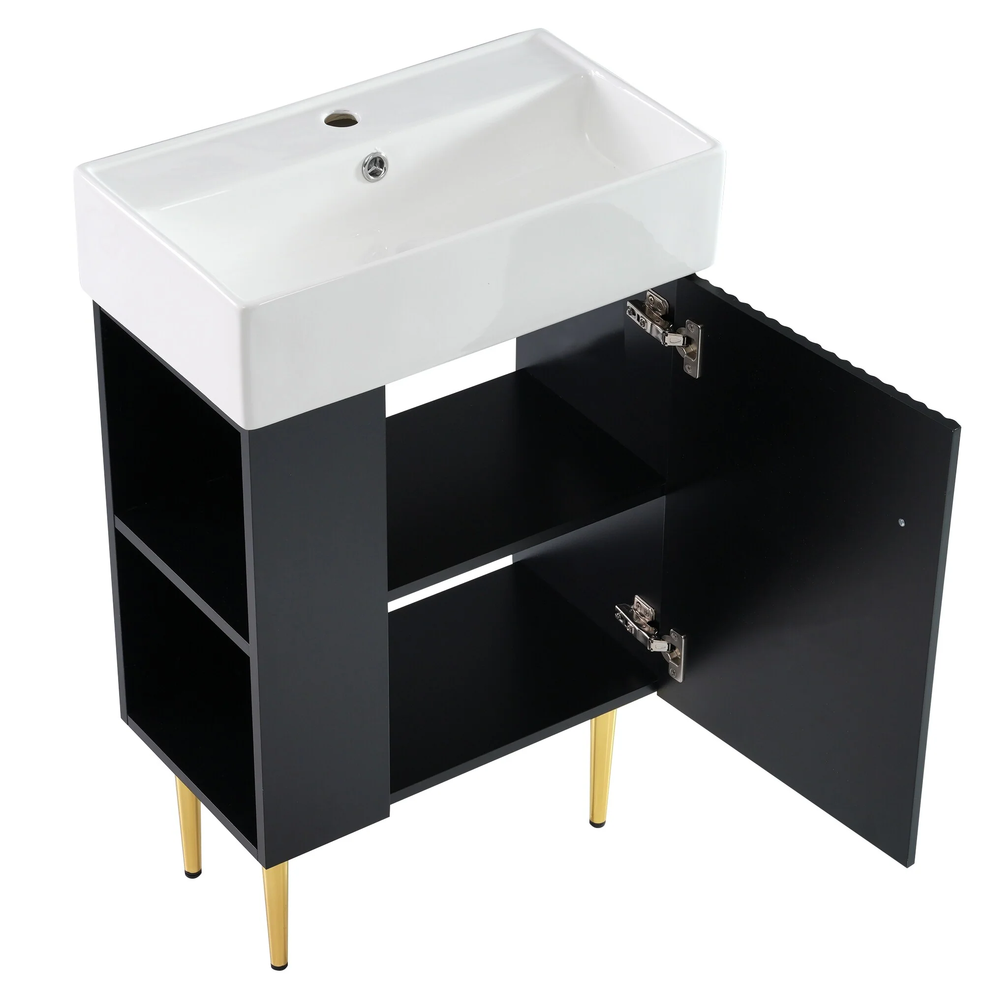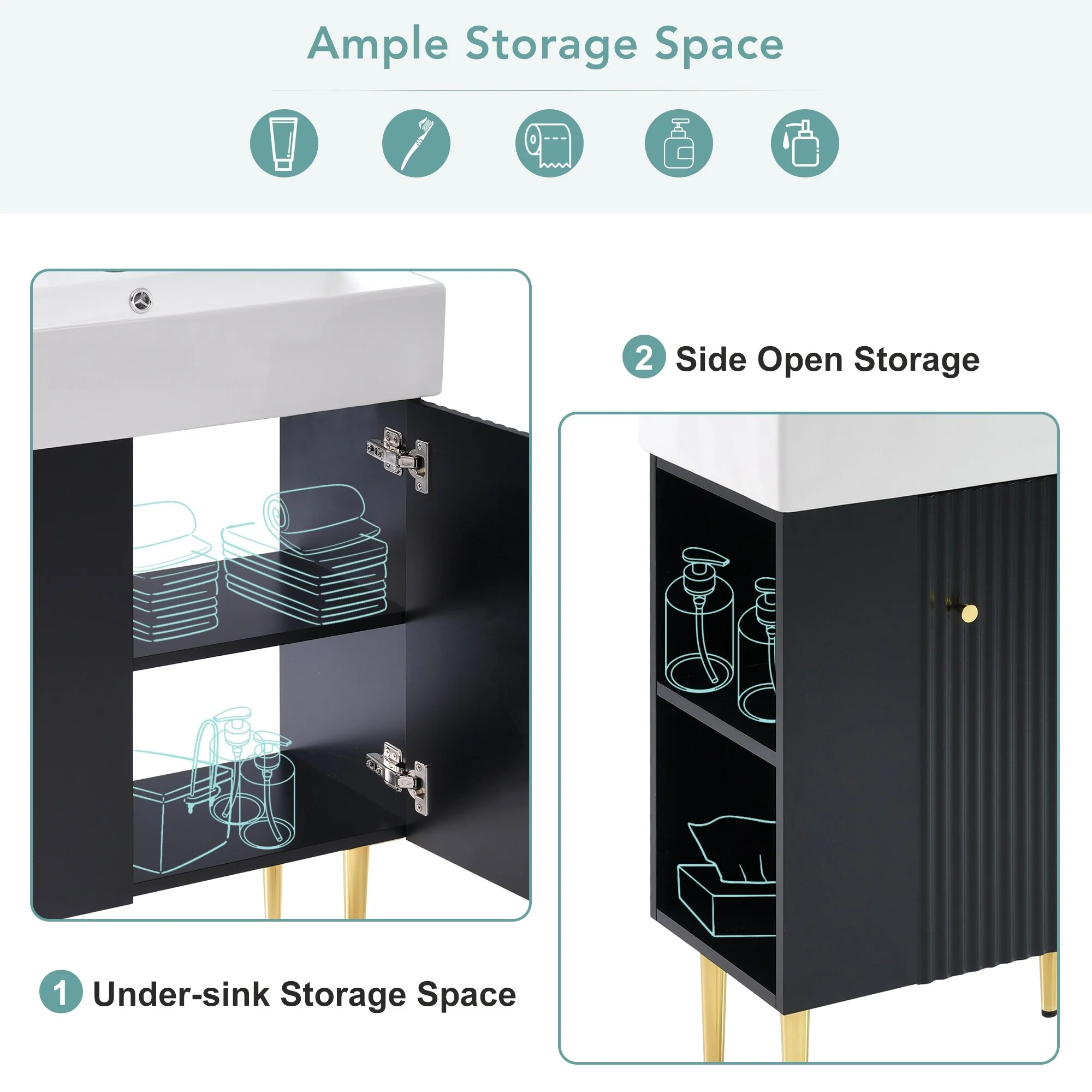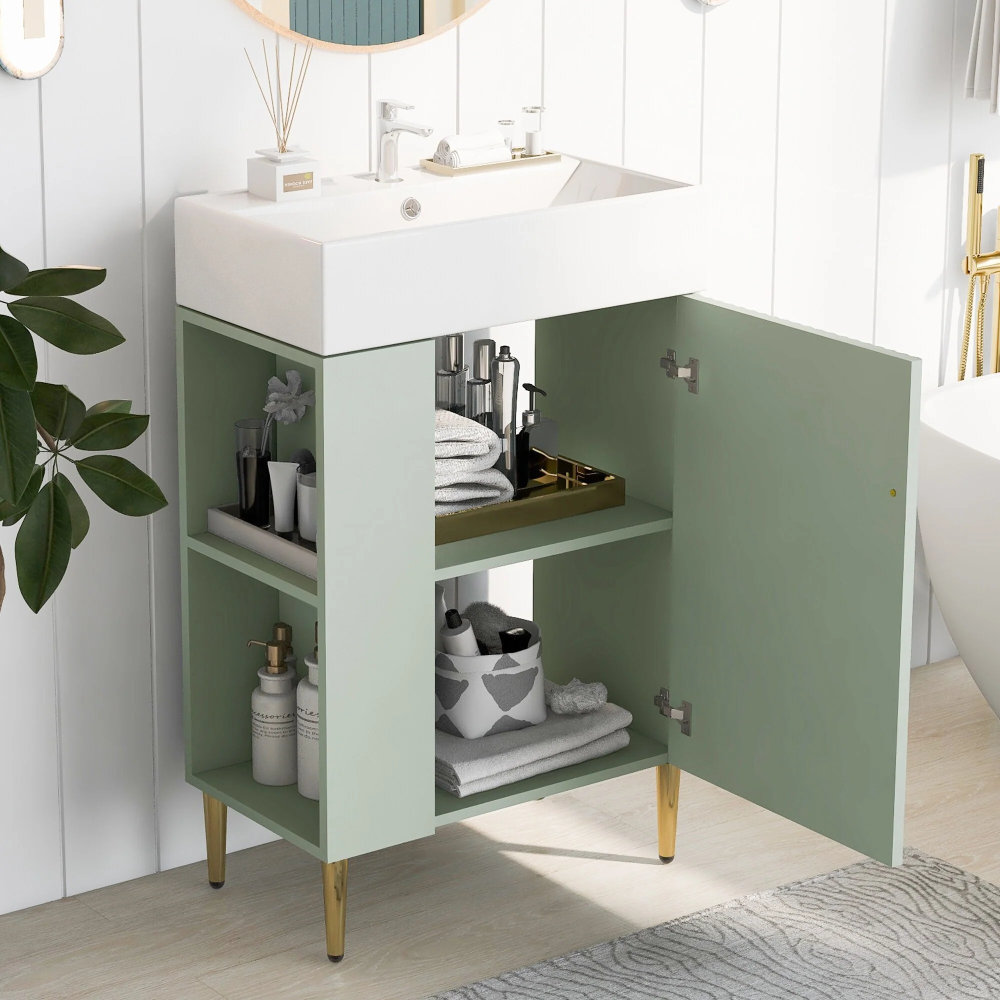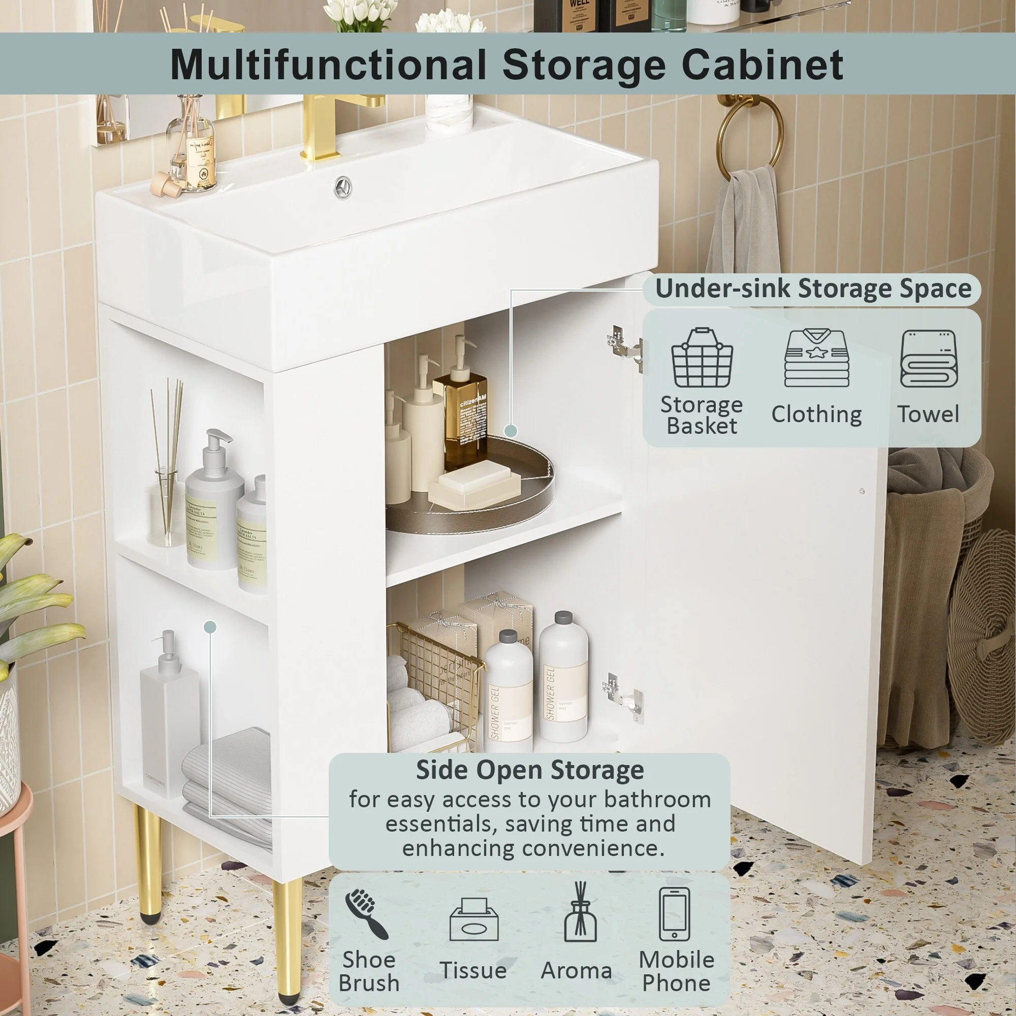 Small Bathroom Vanity with Sink, Bathroom Cabinet with Soft Closing Door, Bathroom Storage Cabinet with Open Storage Shelf