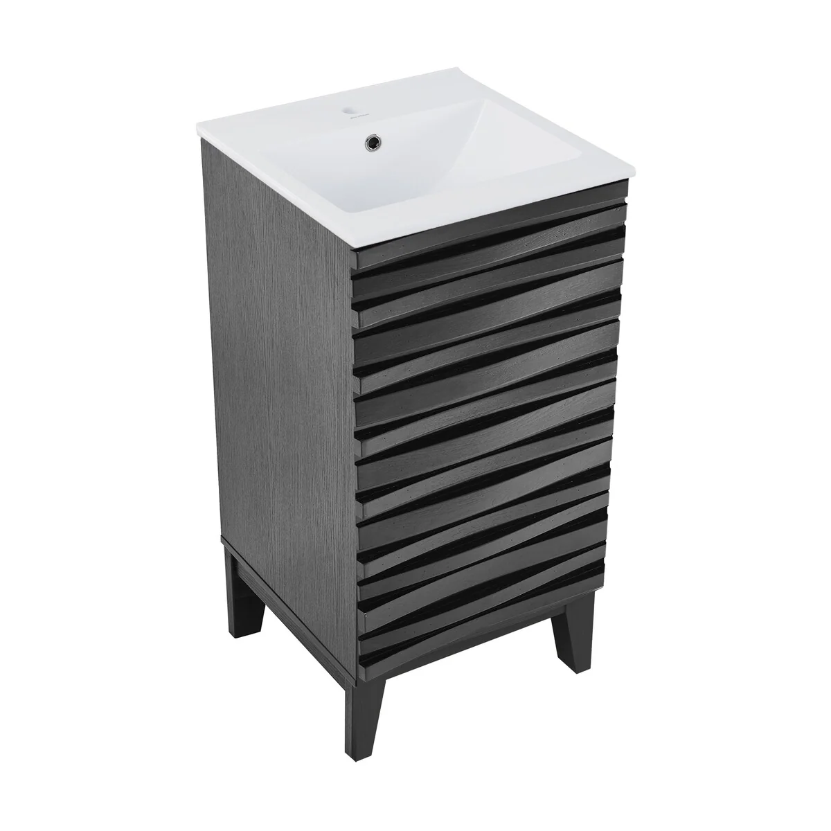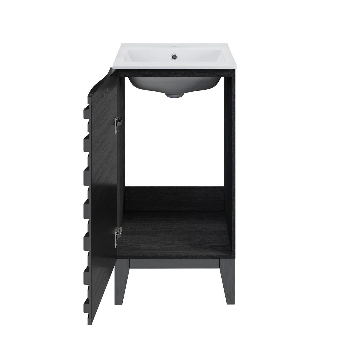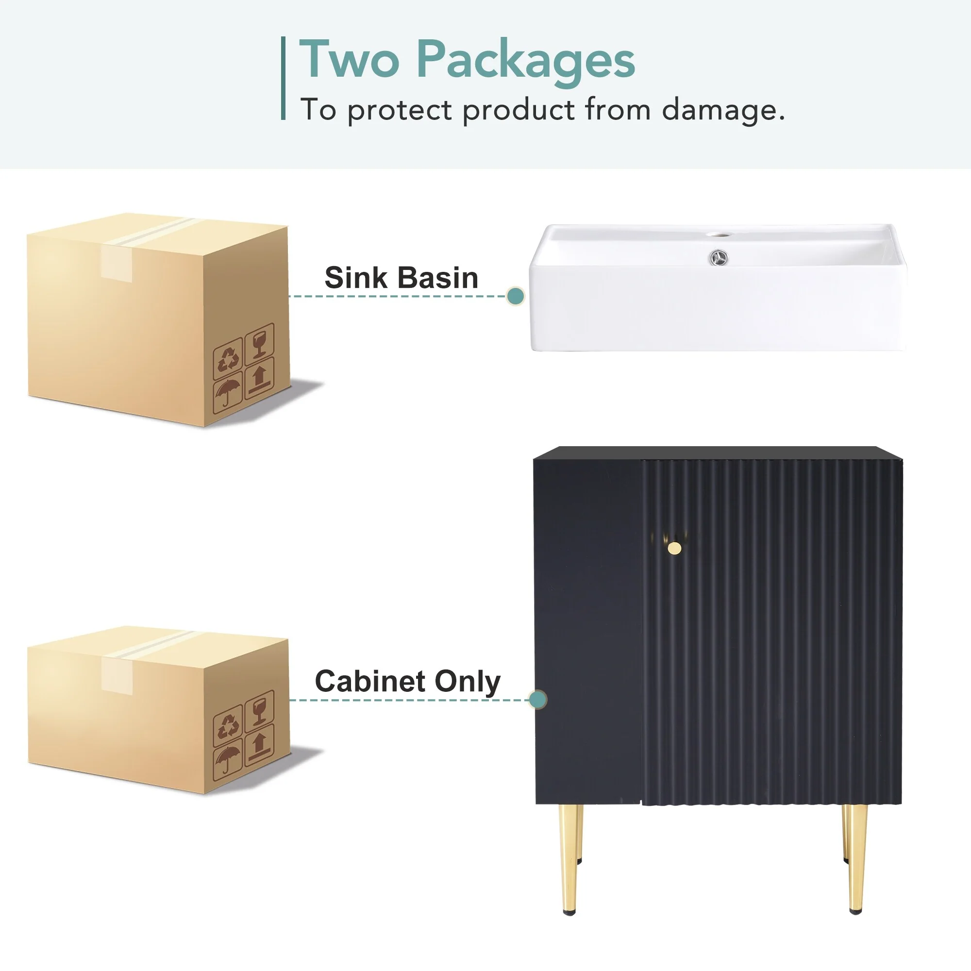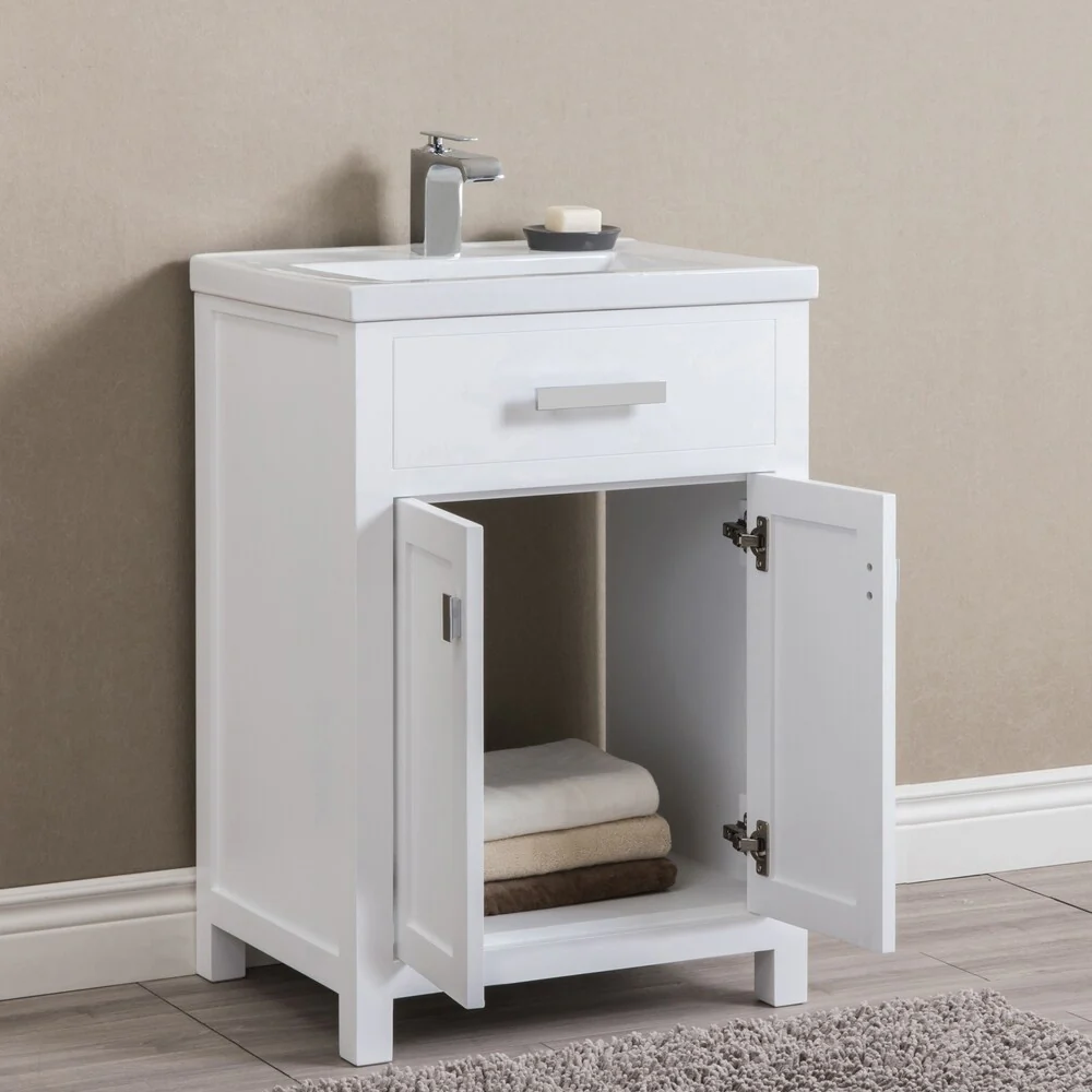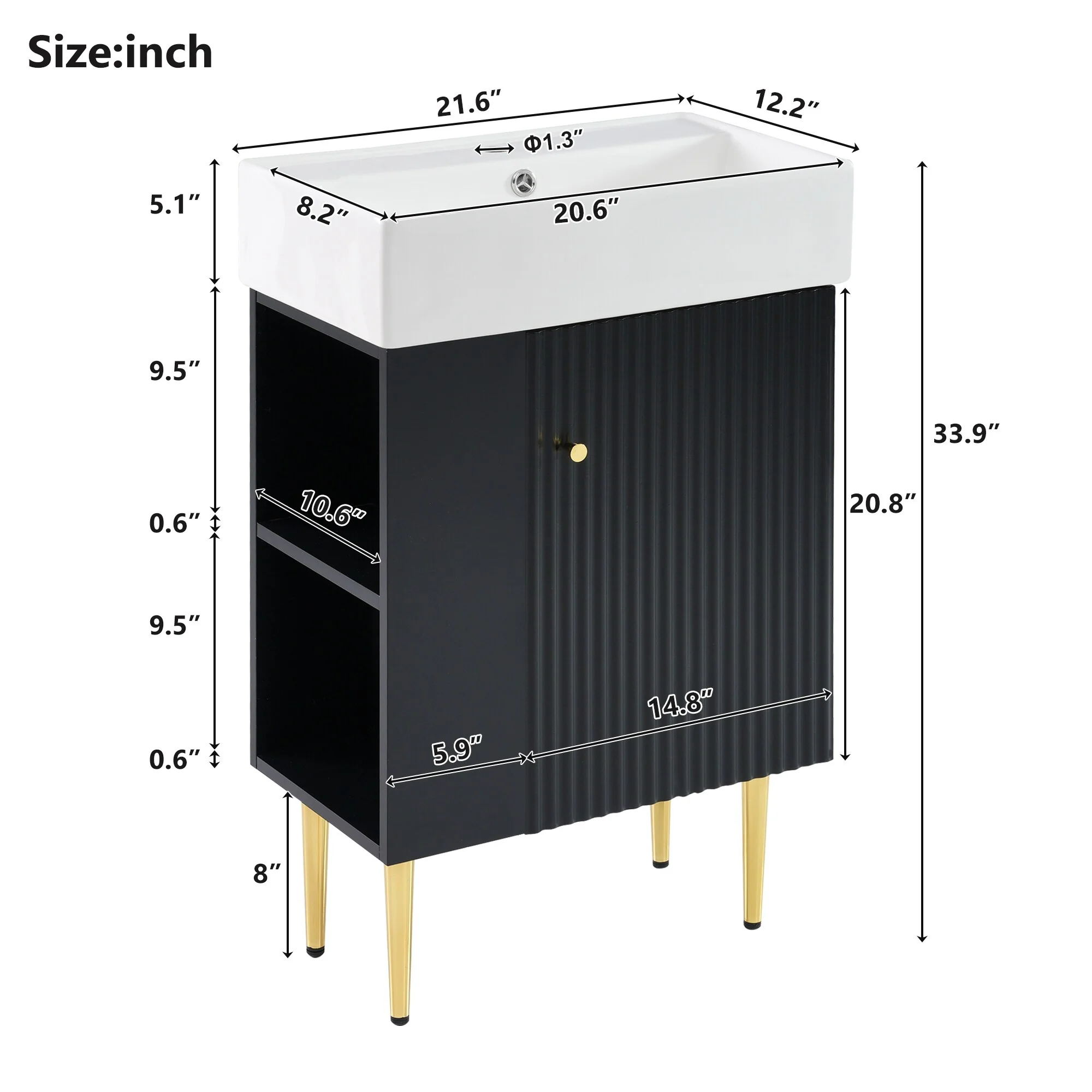 Small Bathroom Vanity with Sink, Bathroom Cabinet with Soft Closing Door, Bathroom Storage Cabinet with Open Storage Shelf