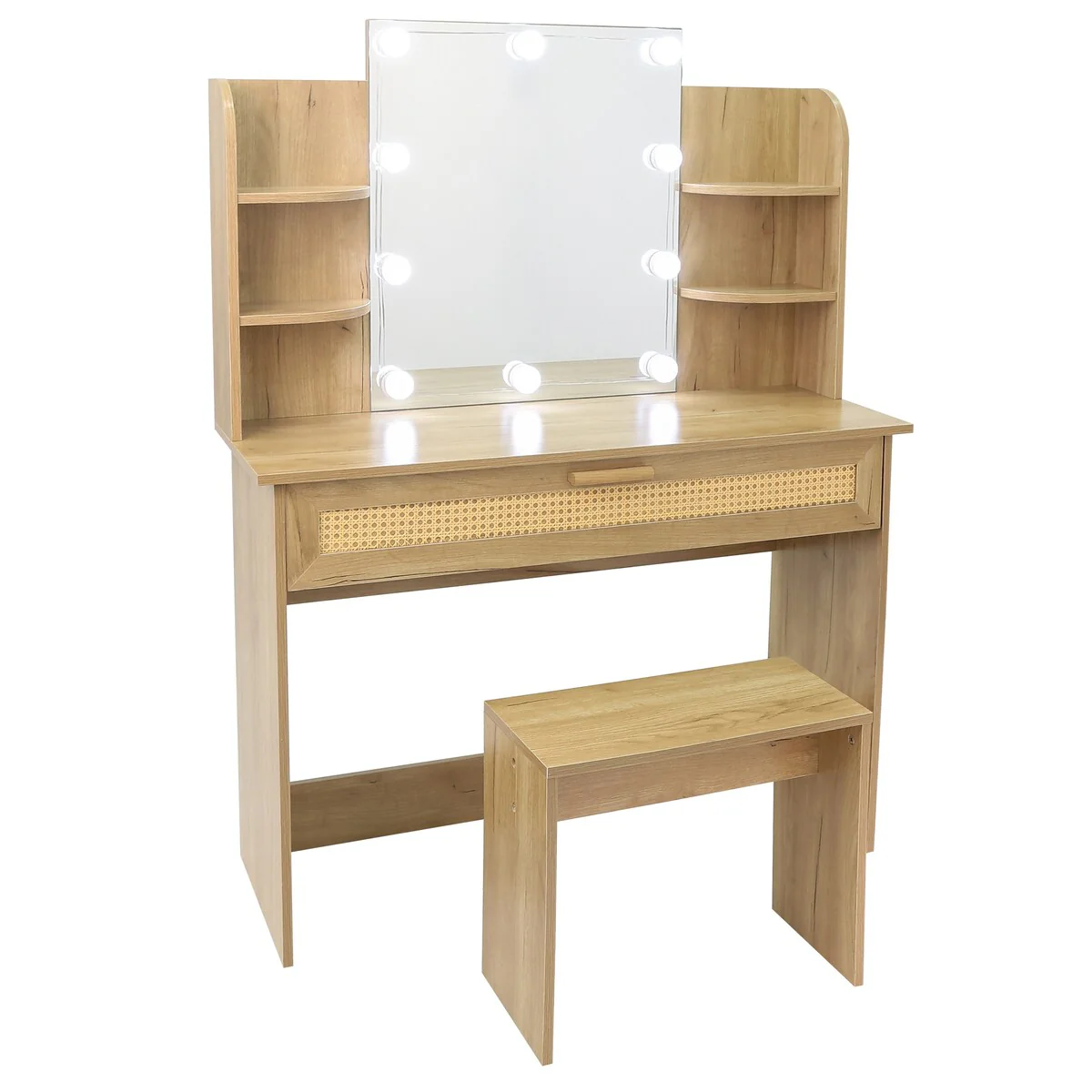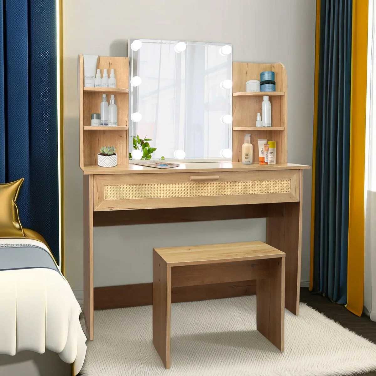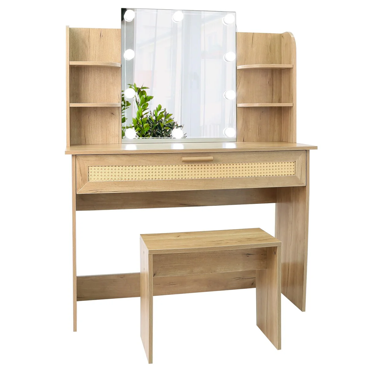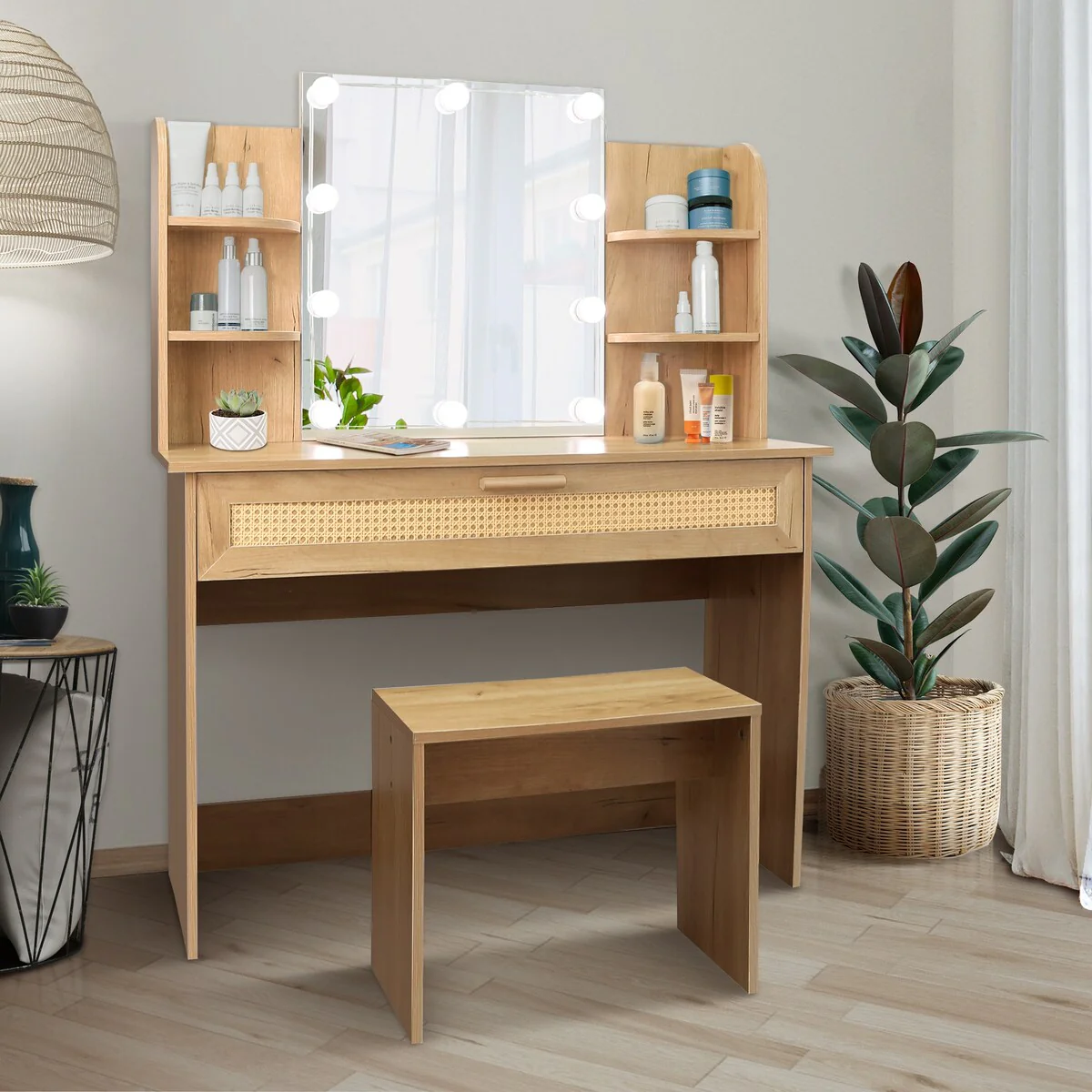 Vanity Table Set Table/Stool Set with LED Lighted Mirror for Bedroom Bathroom