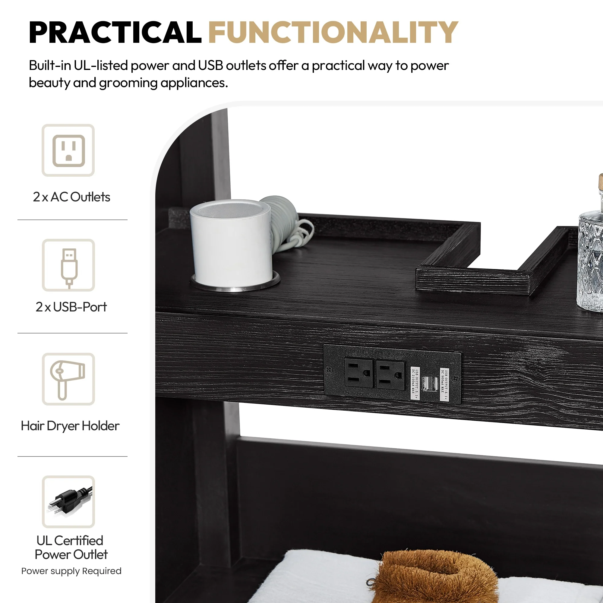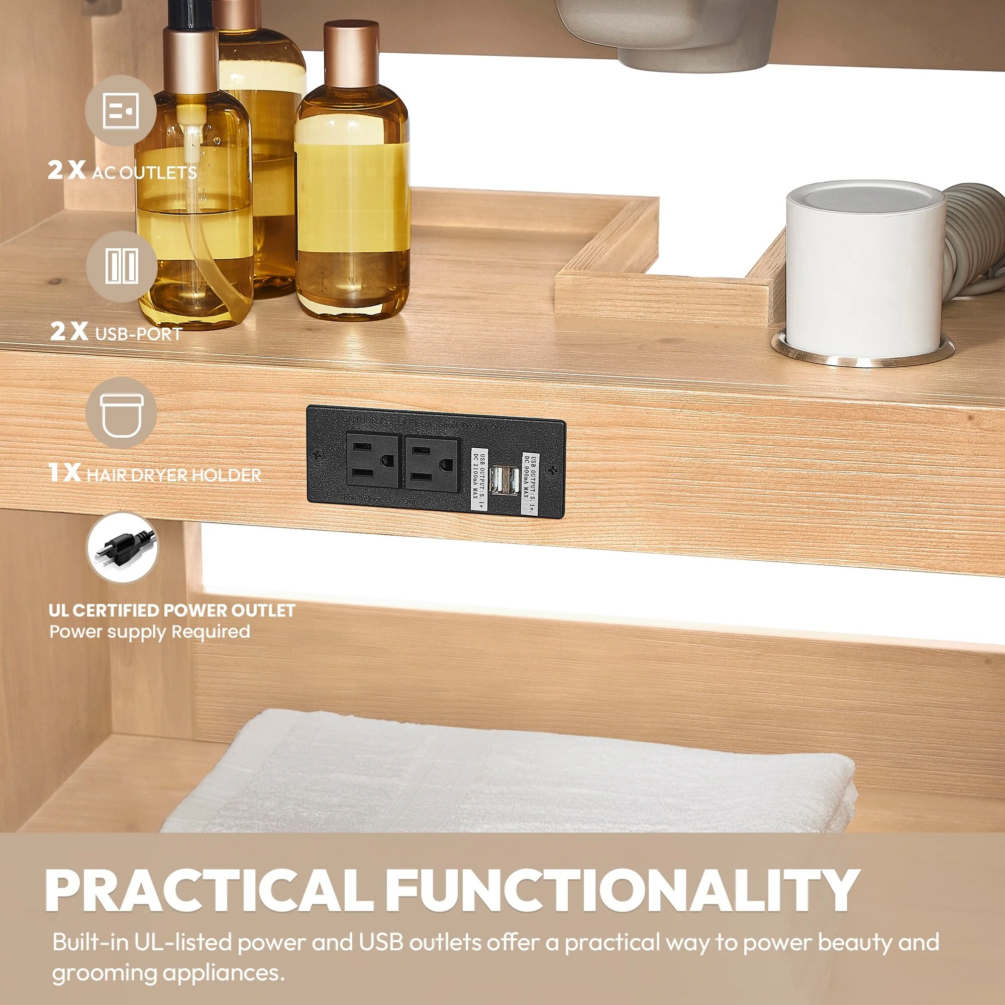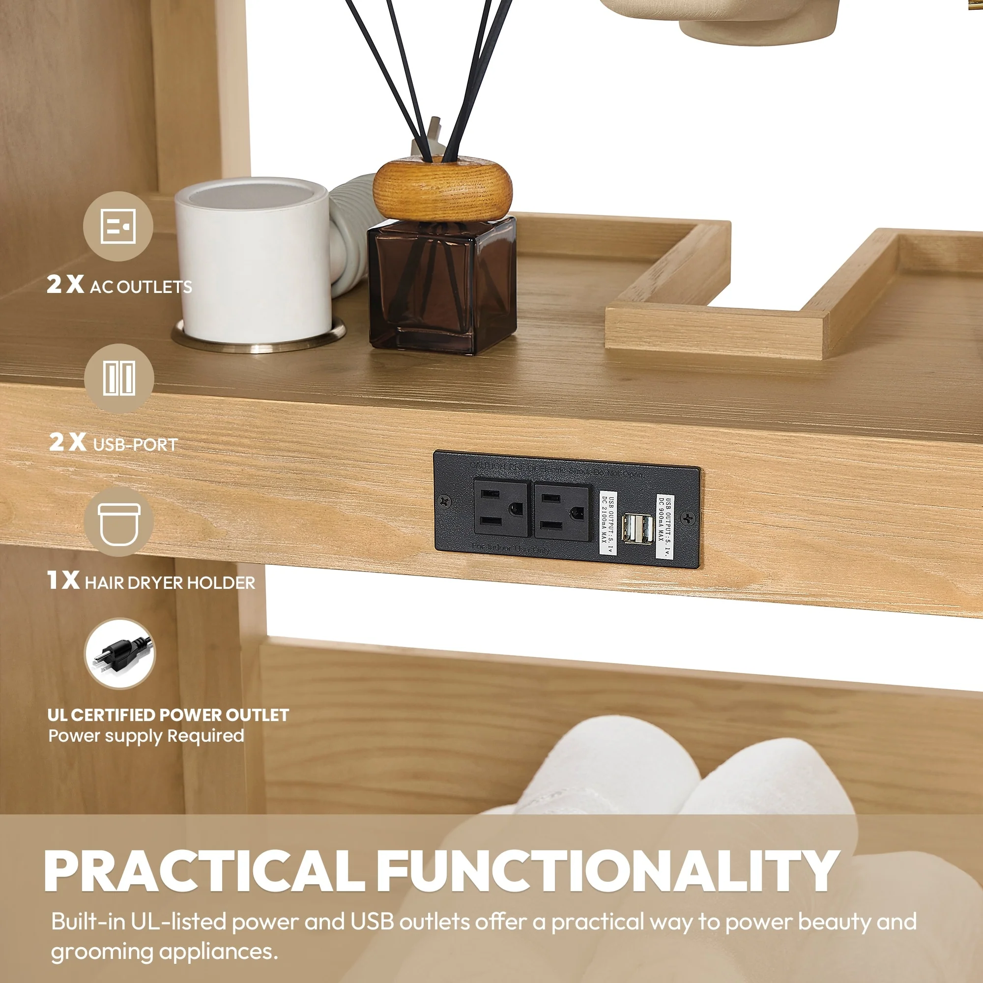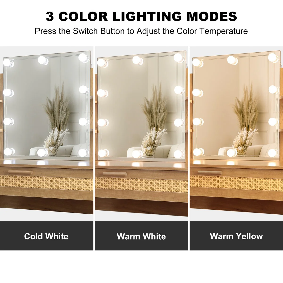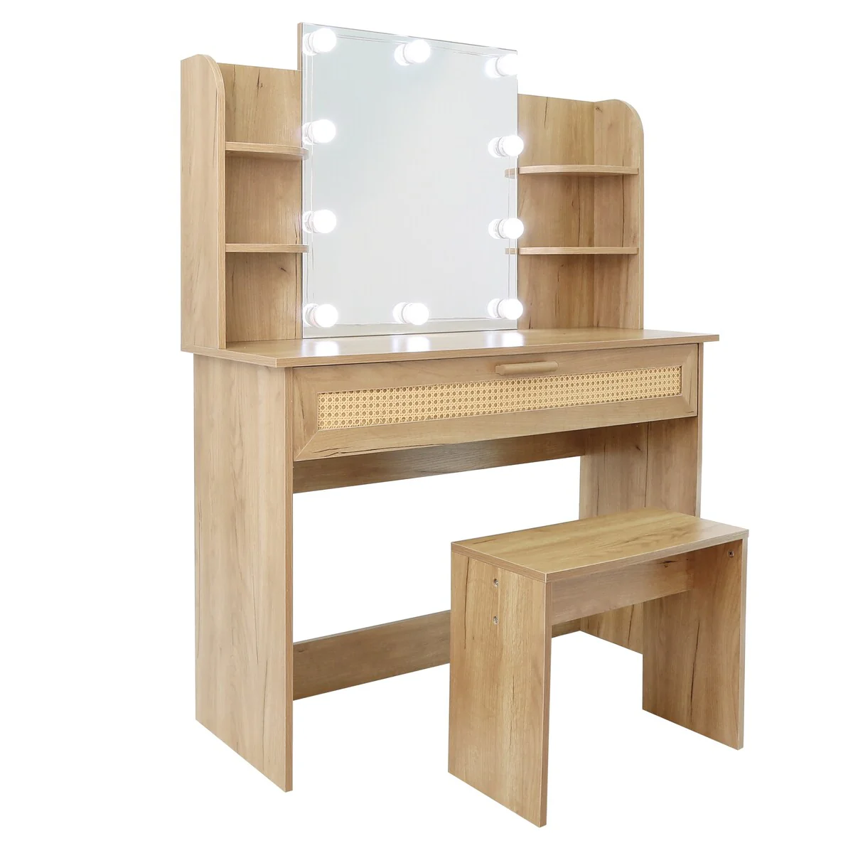 Vanity Table Set Table/Stool Set with LED Lighted Mirror for Bedroom Bathroom