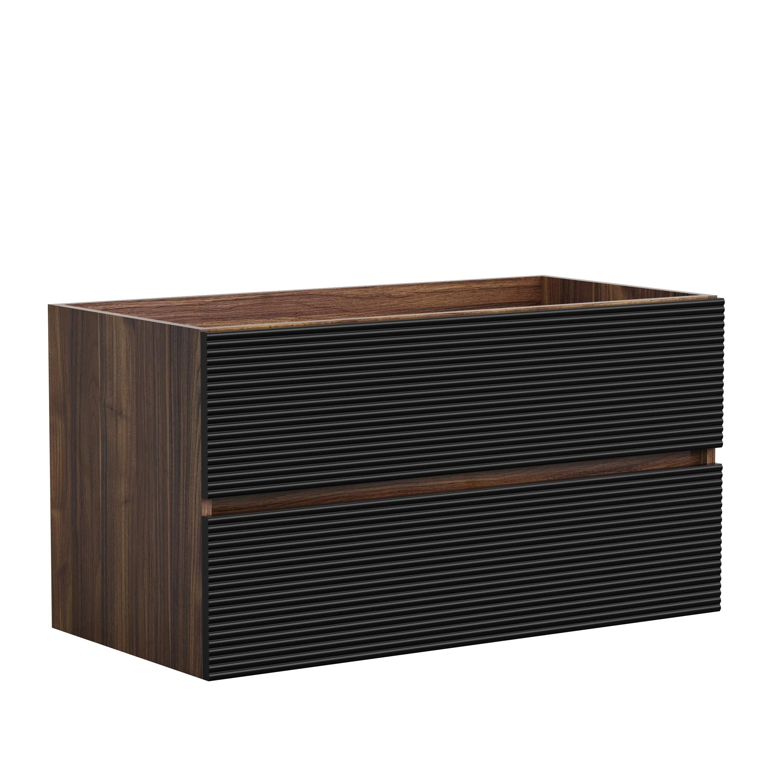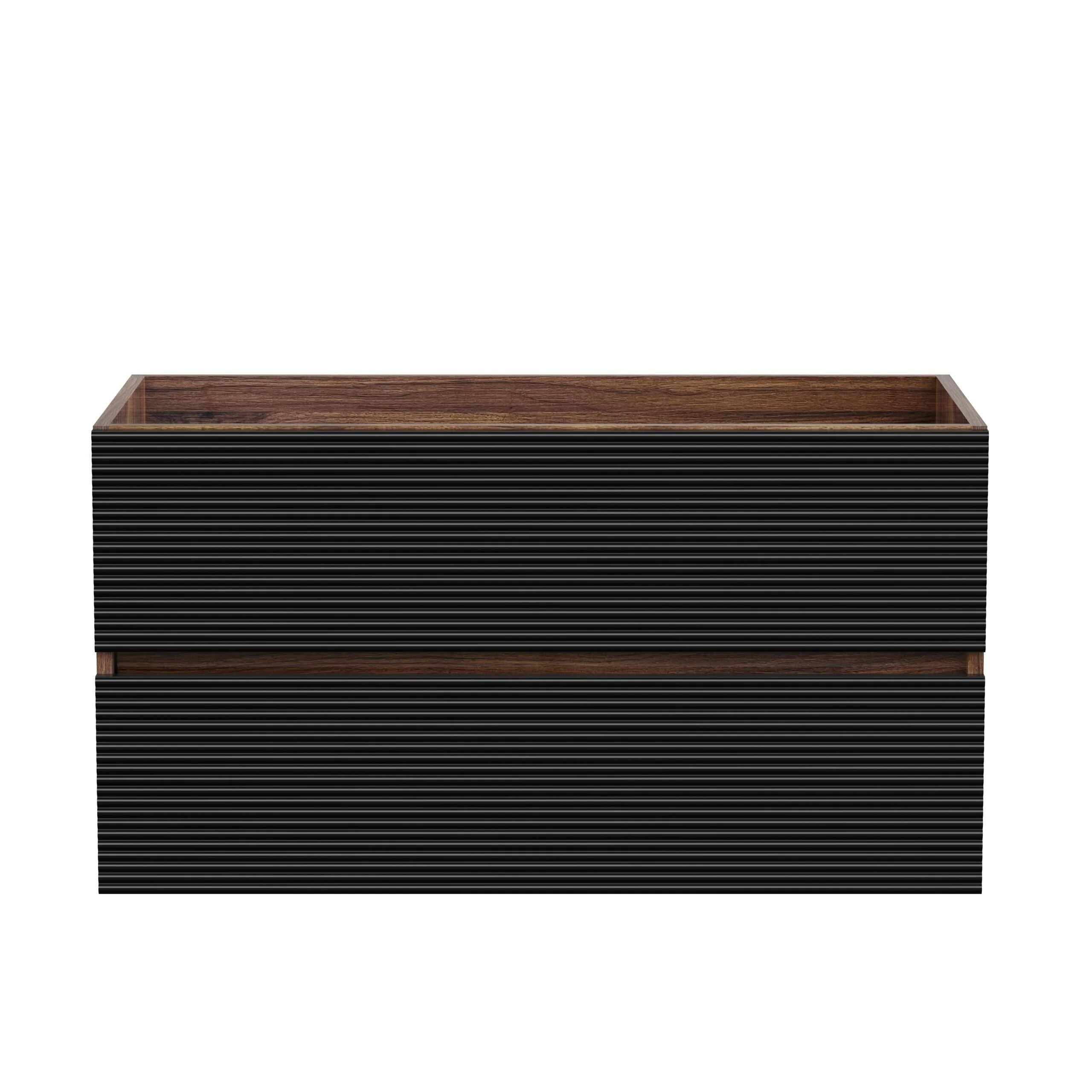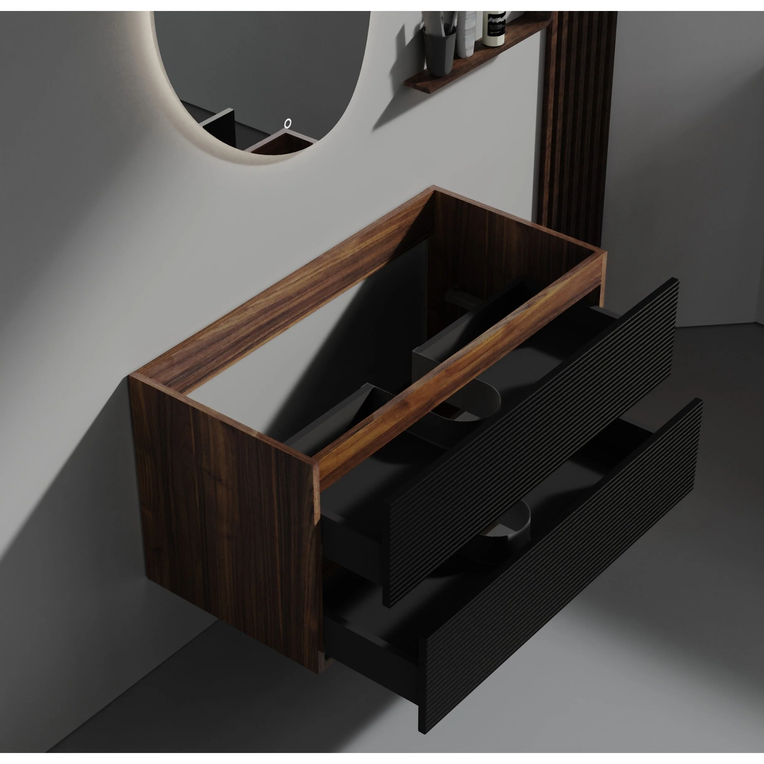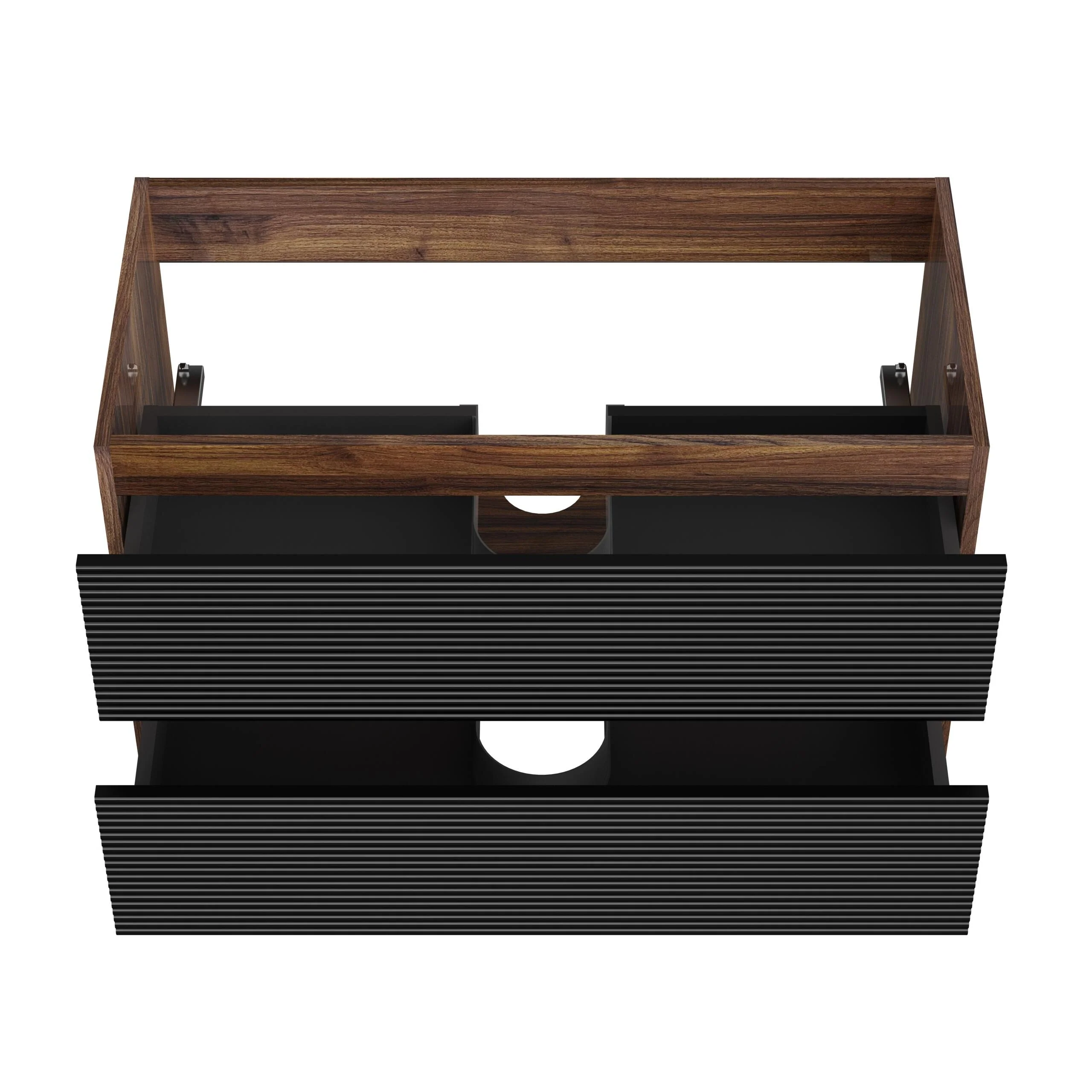 Wall-Mounted Cabinet WITHOUT Basin in Black & Walnut with 2 Drawers KD