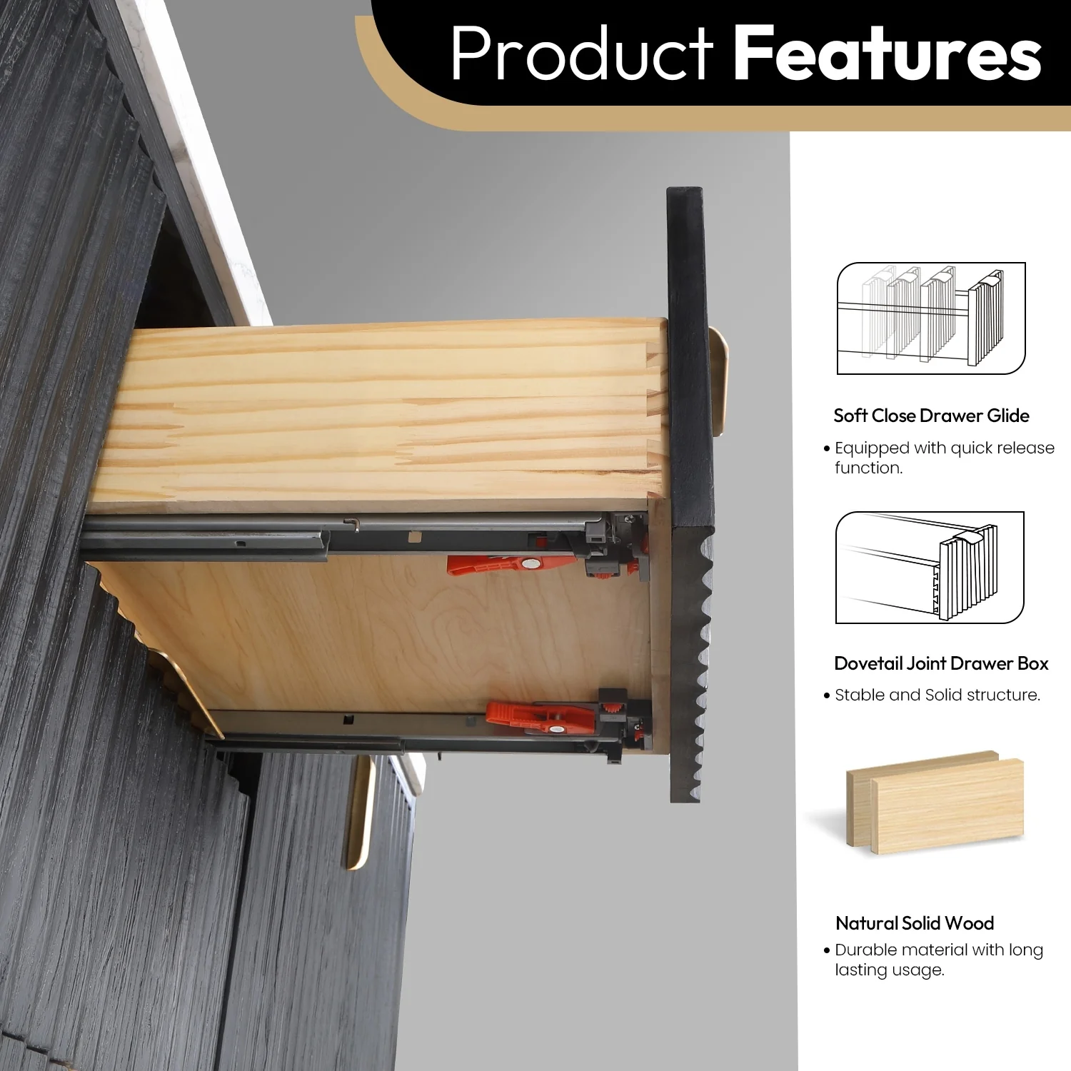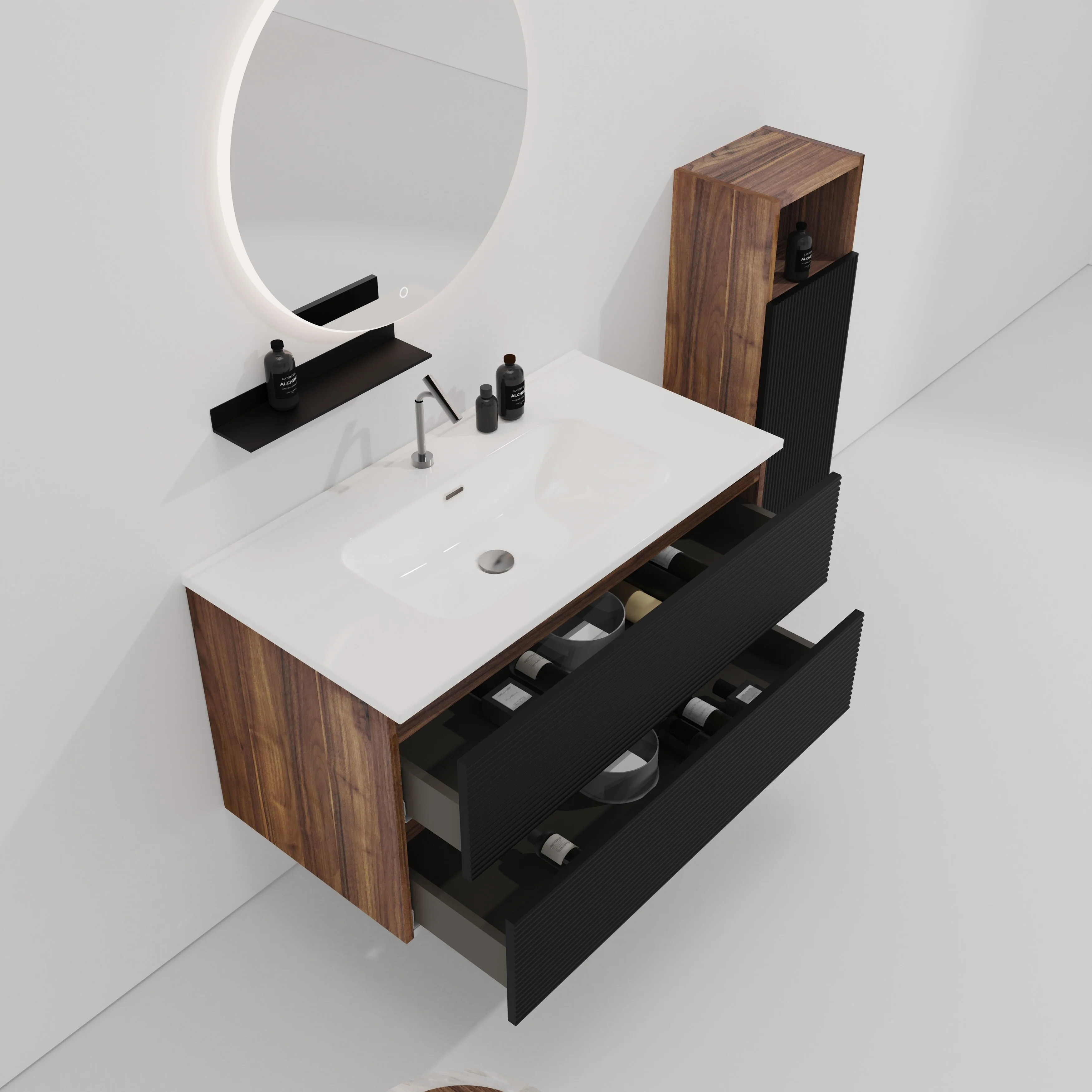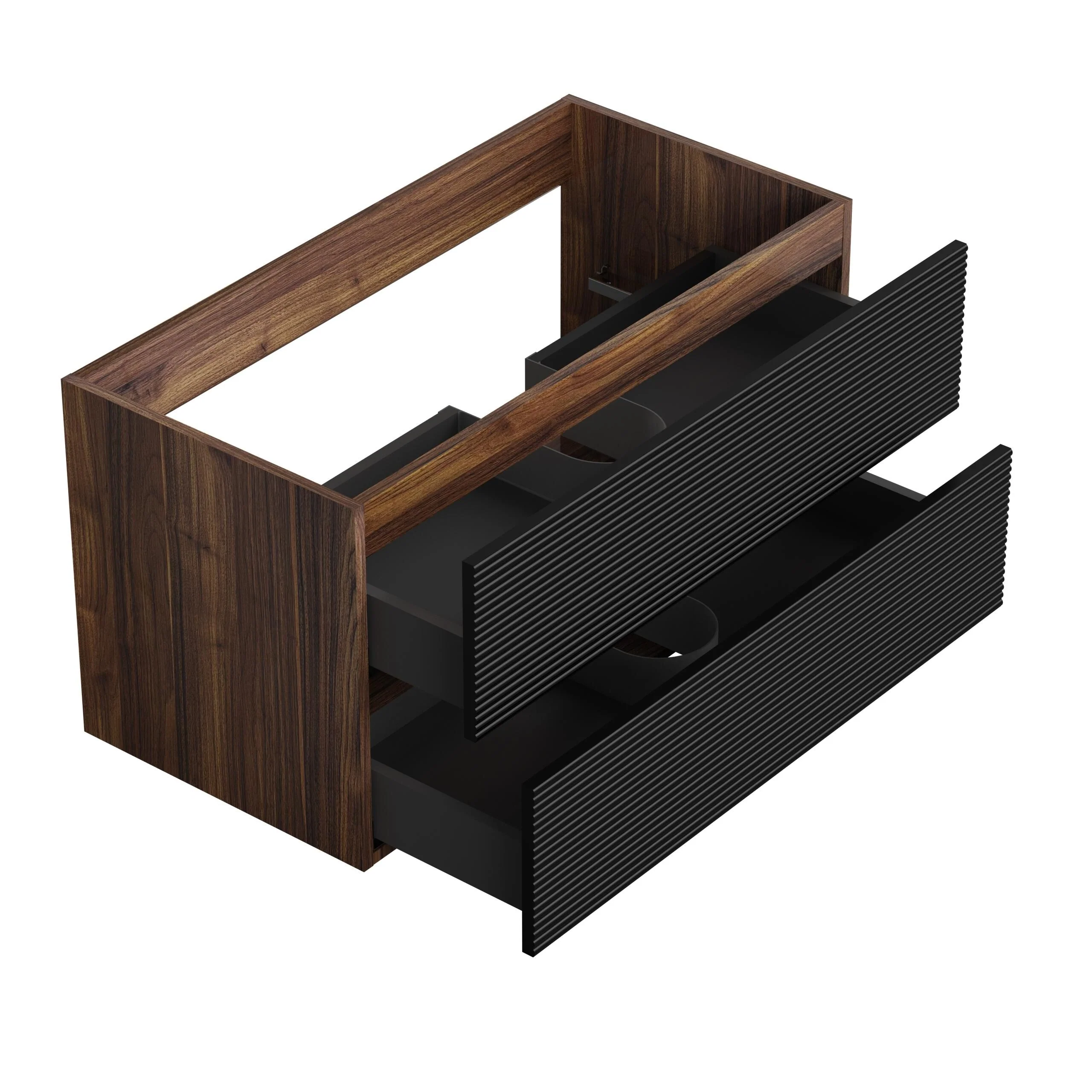 Wall-Mounted Cabinet WITHOUT Basin in Black & Walnut with 2 Drawers KD