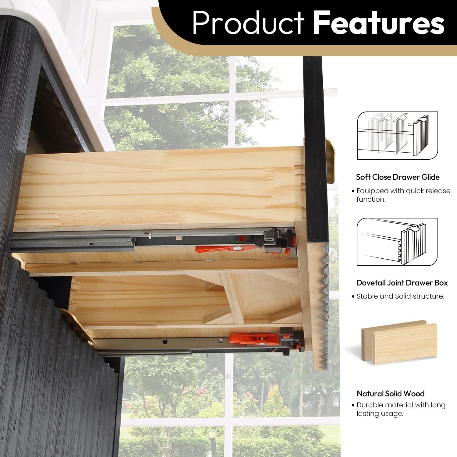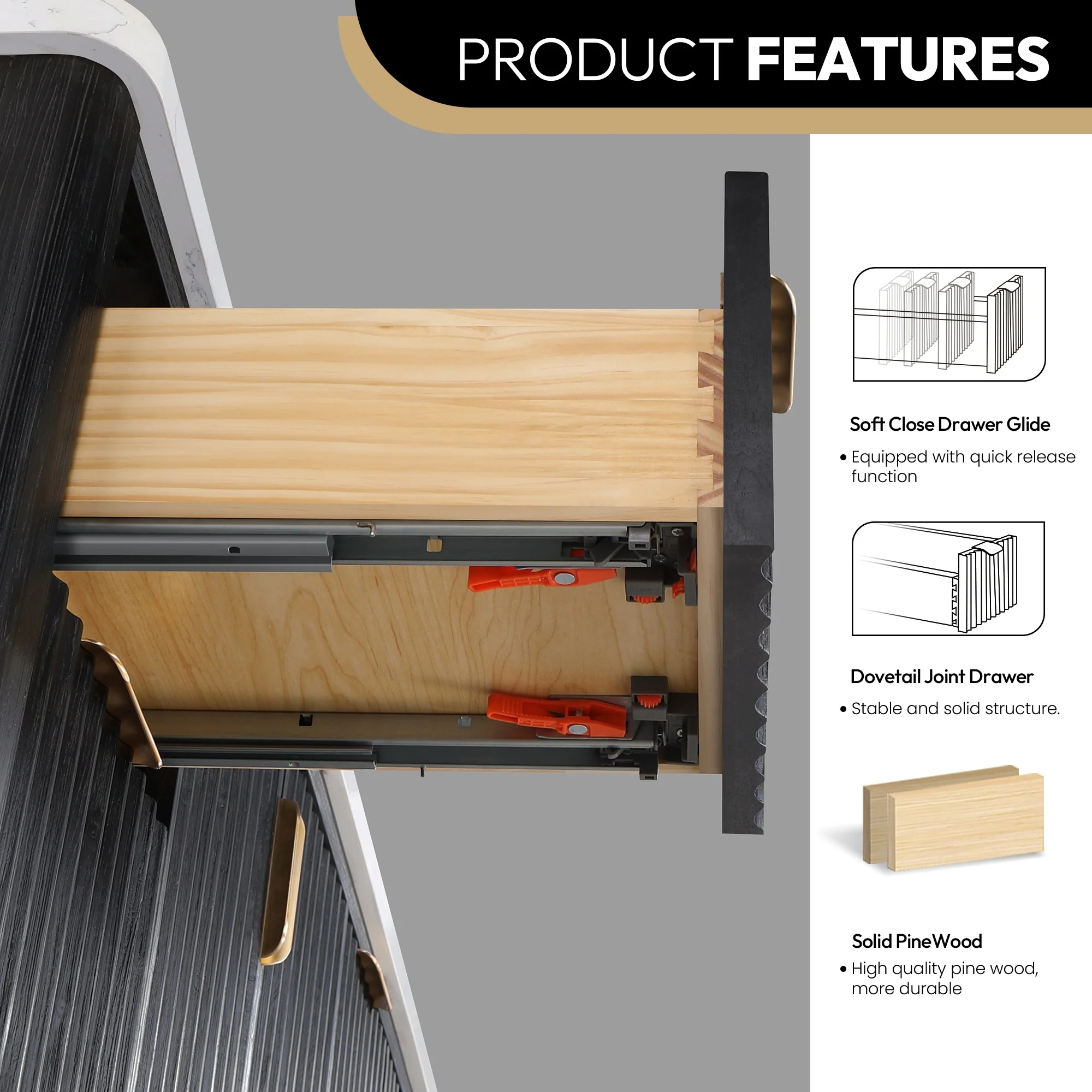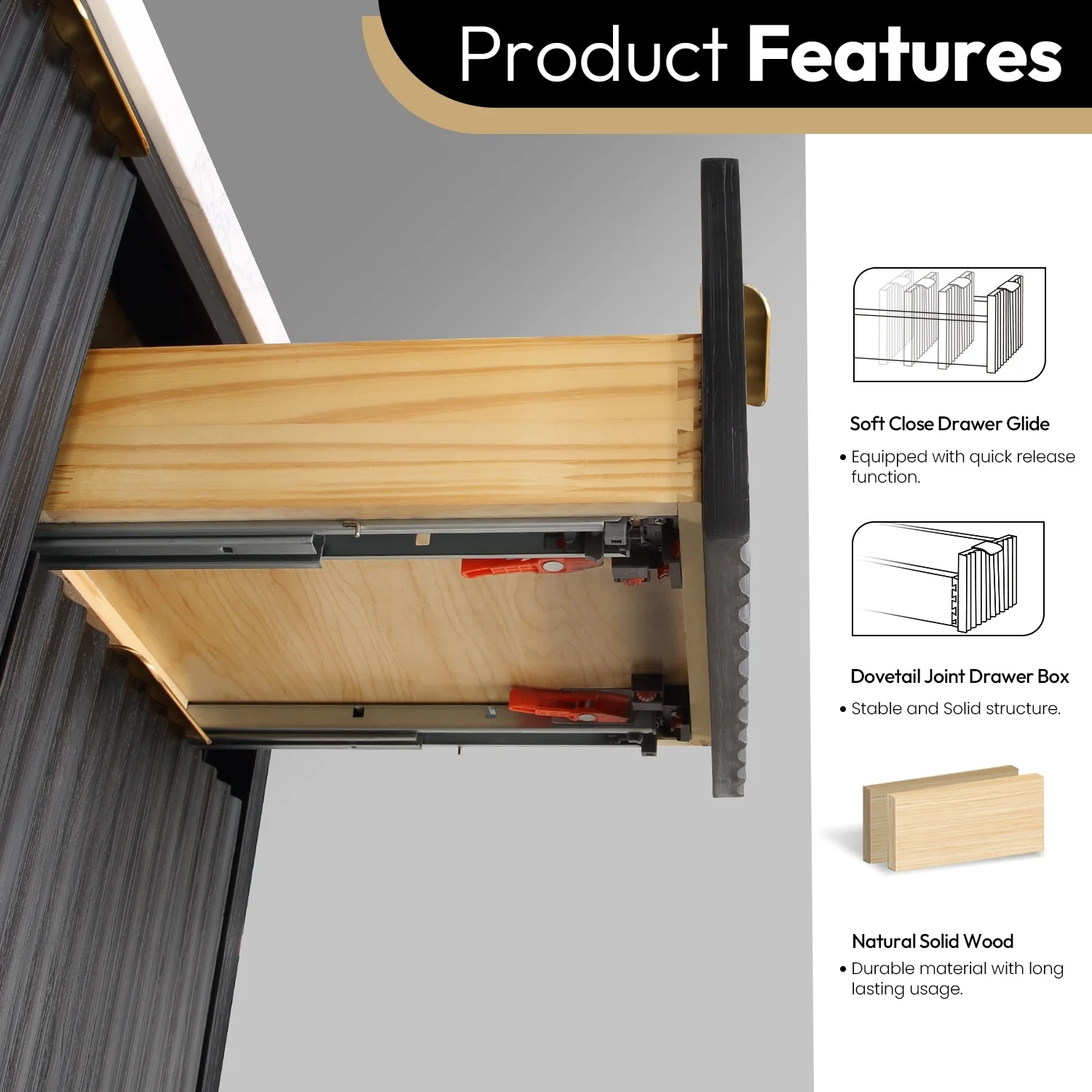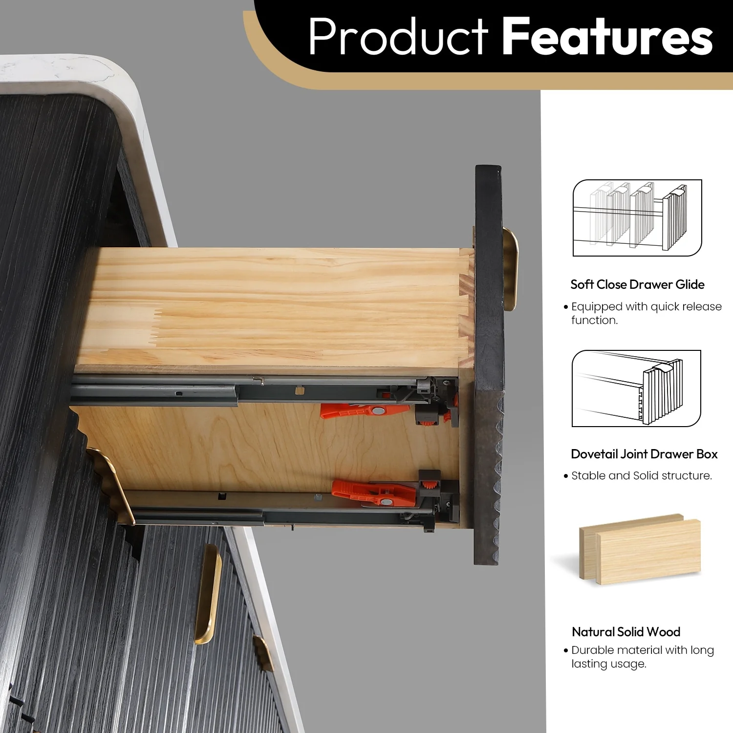 Wall-Mounted Cabinet WITHOUT Basin in Black & Walnut with 2 Drawers KD