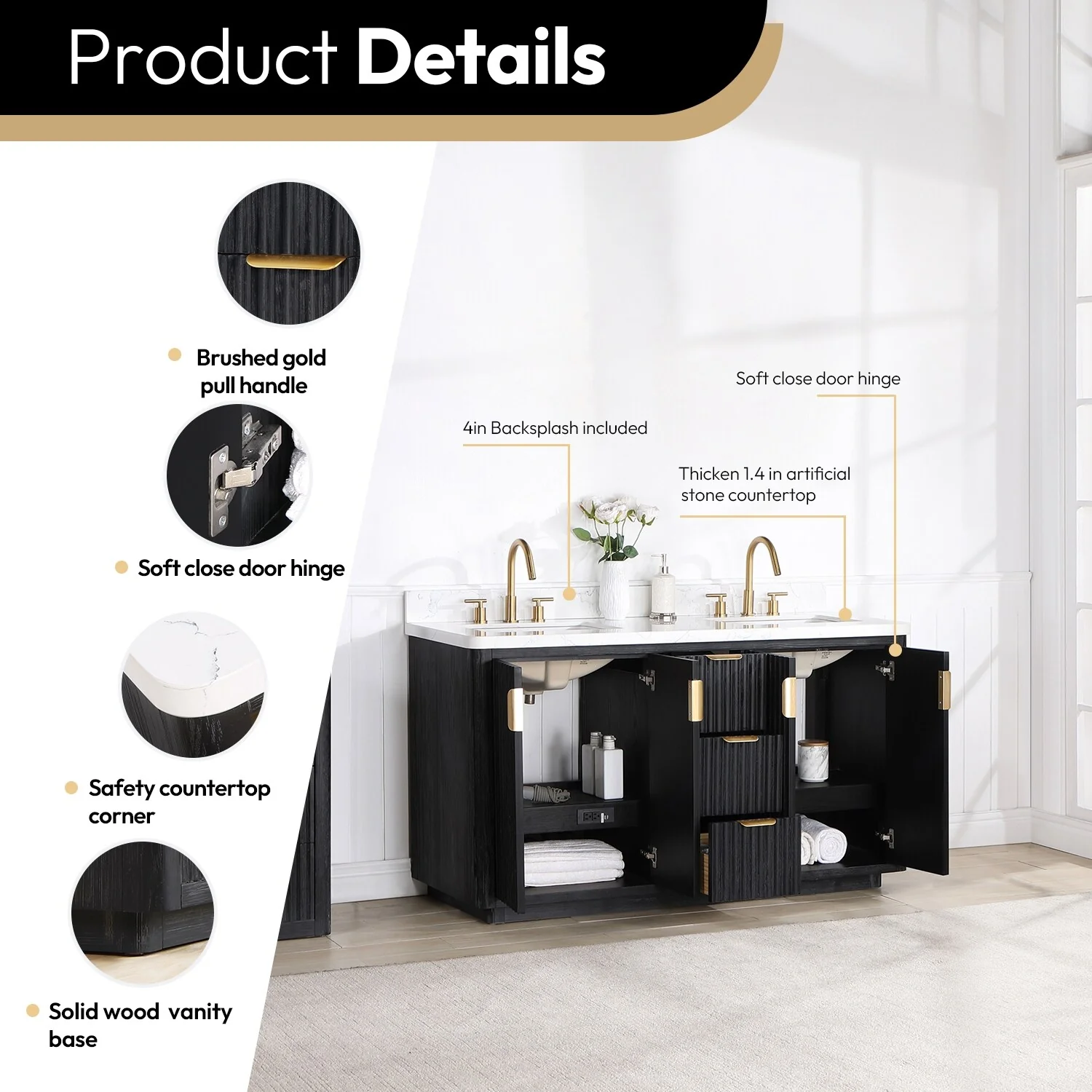 Vanity Art 54" Double Sink Bathroom Vanity with Top & Backsplash