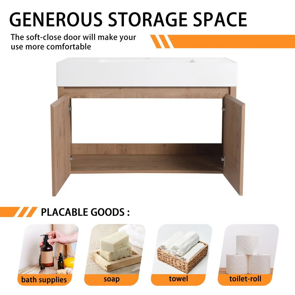 18'' Floating Wall-Mounted Bathroom Vanity with White Resin Sink ,Soft-Close Cabinet Door