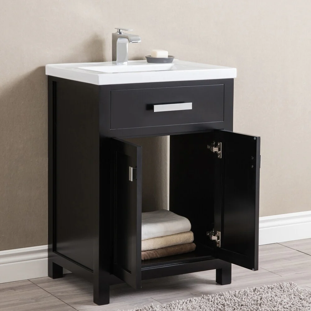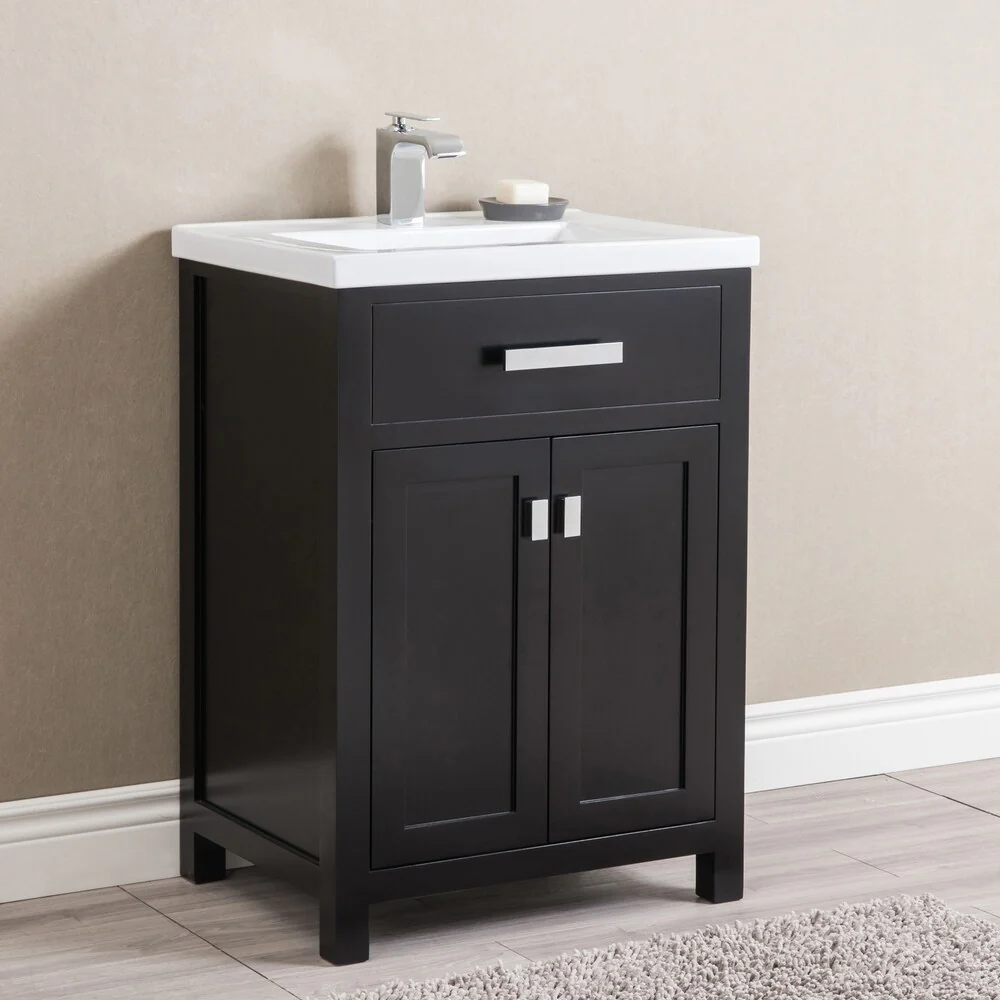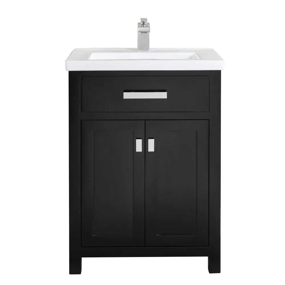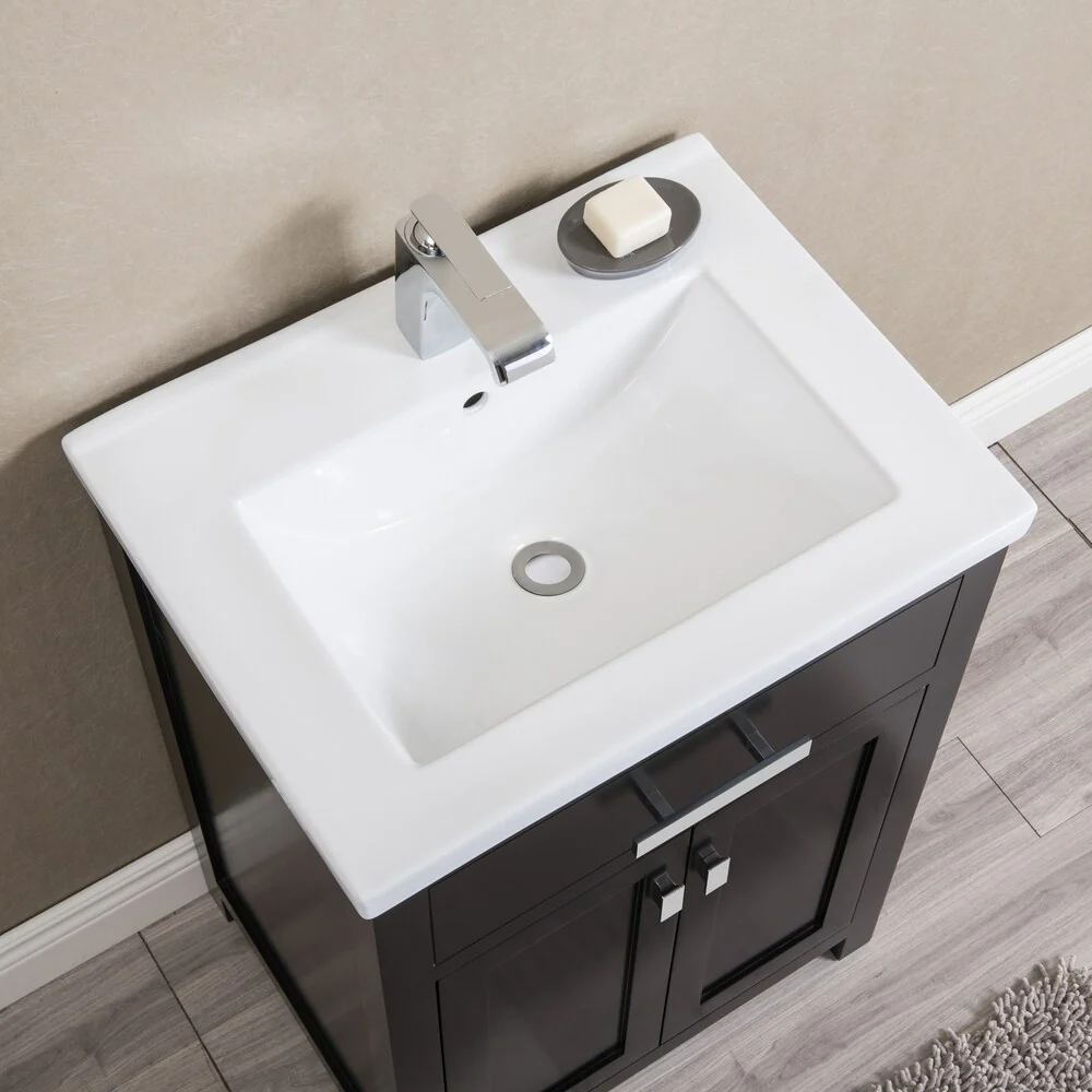 Myra 24-inch Espresso MDF Single Bowl Ceramic Top Vanity with Double Door