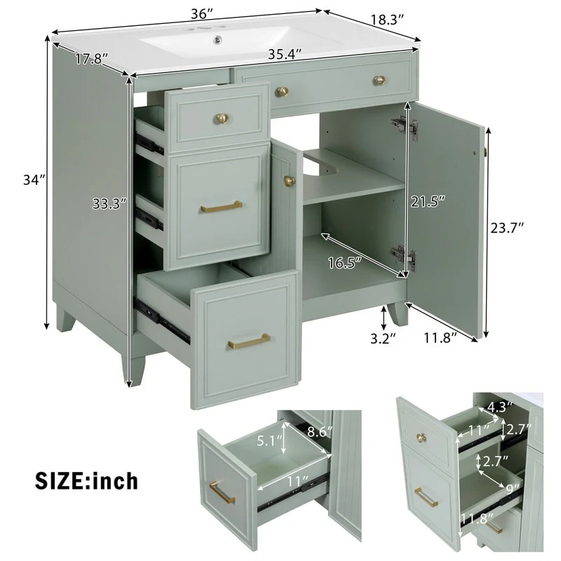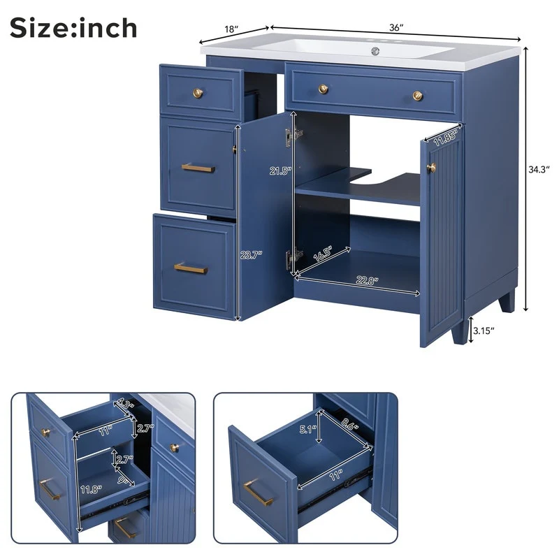 36" Bathroom Vanity Cabinet Free Standing Vanity Set