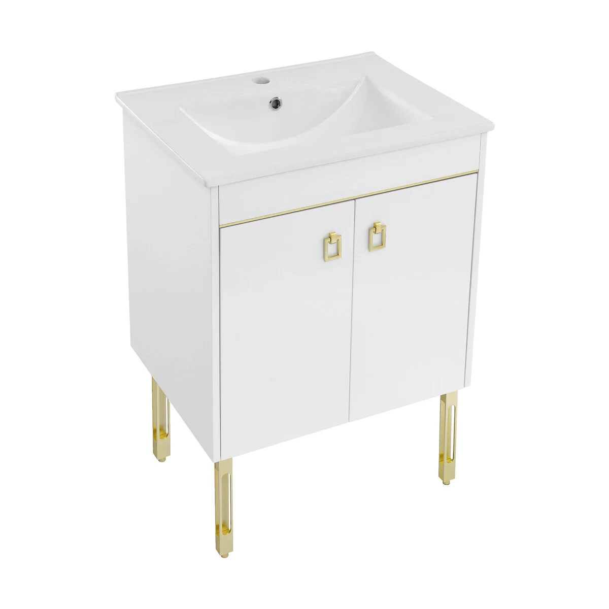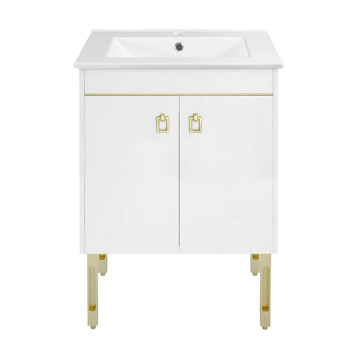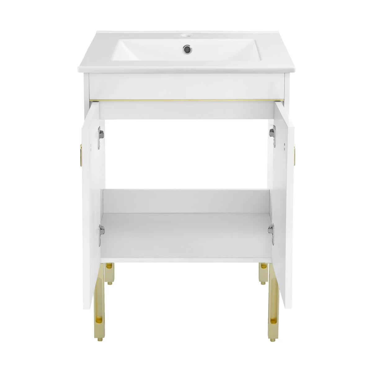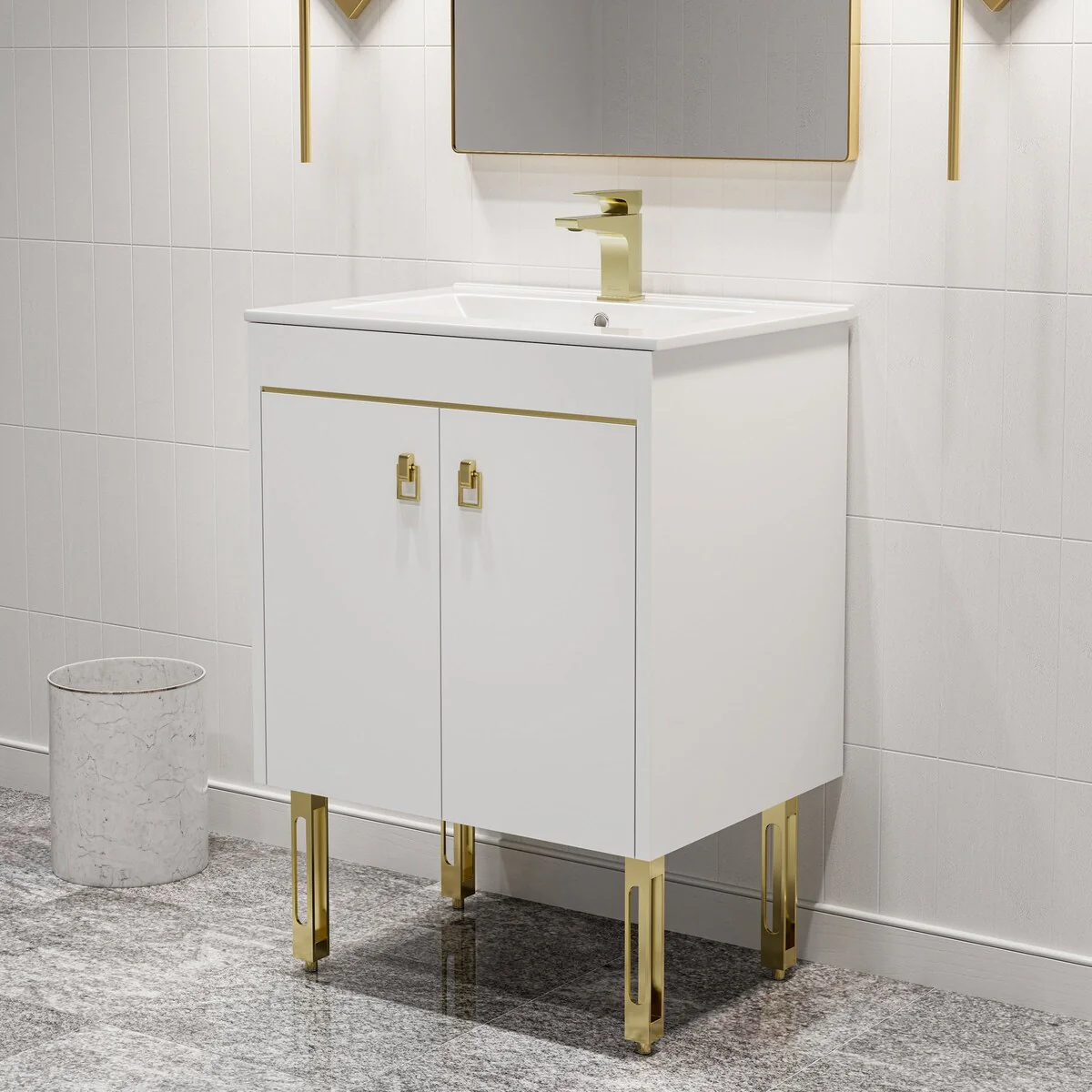 Lumiere 24" Freestanding, Bathroom Vanity in Glossy White and Gold