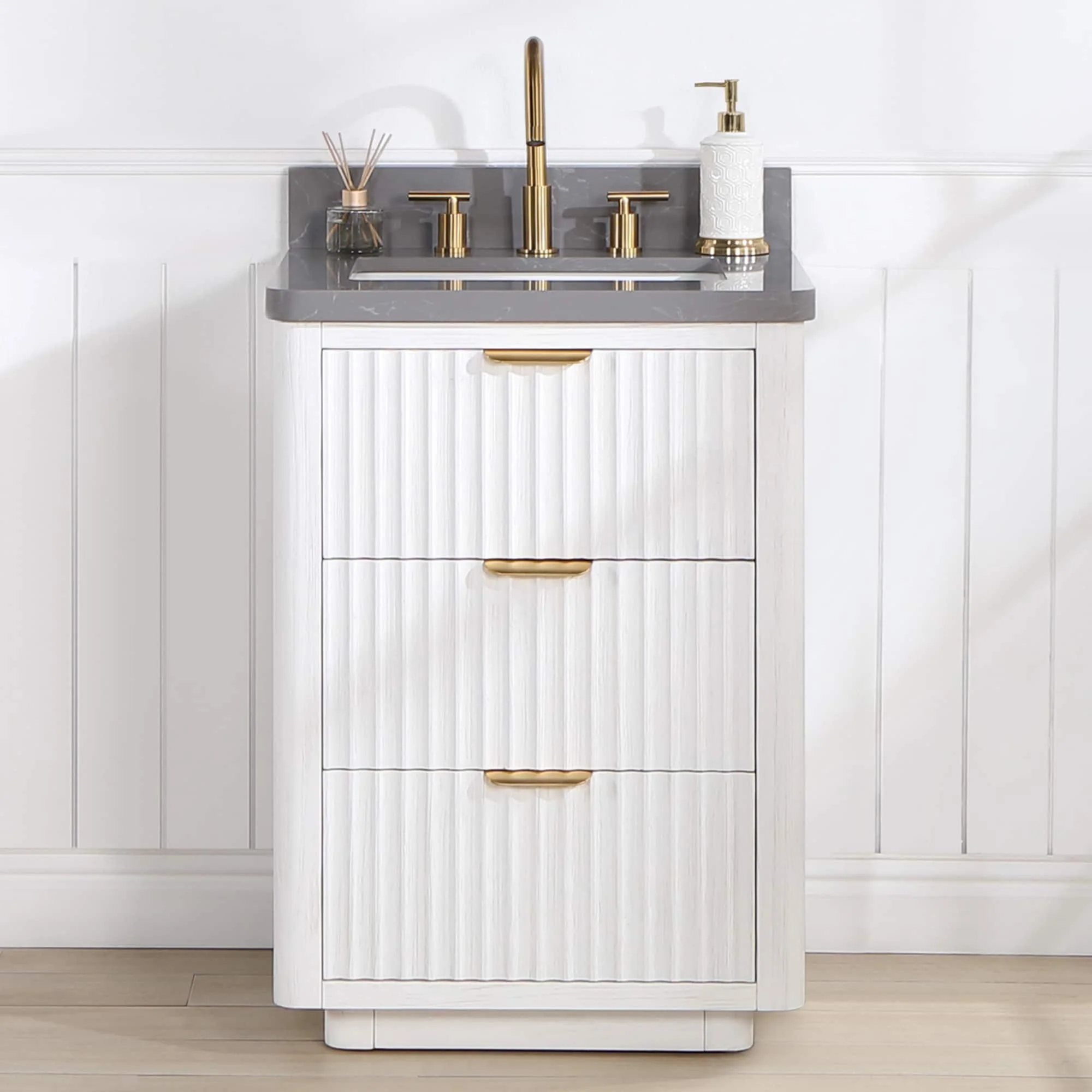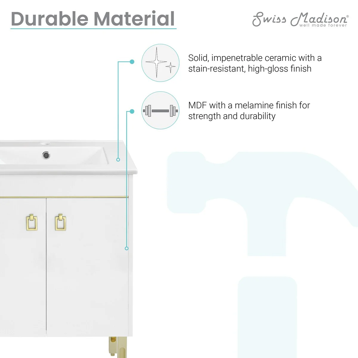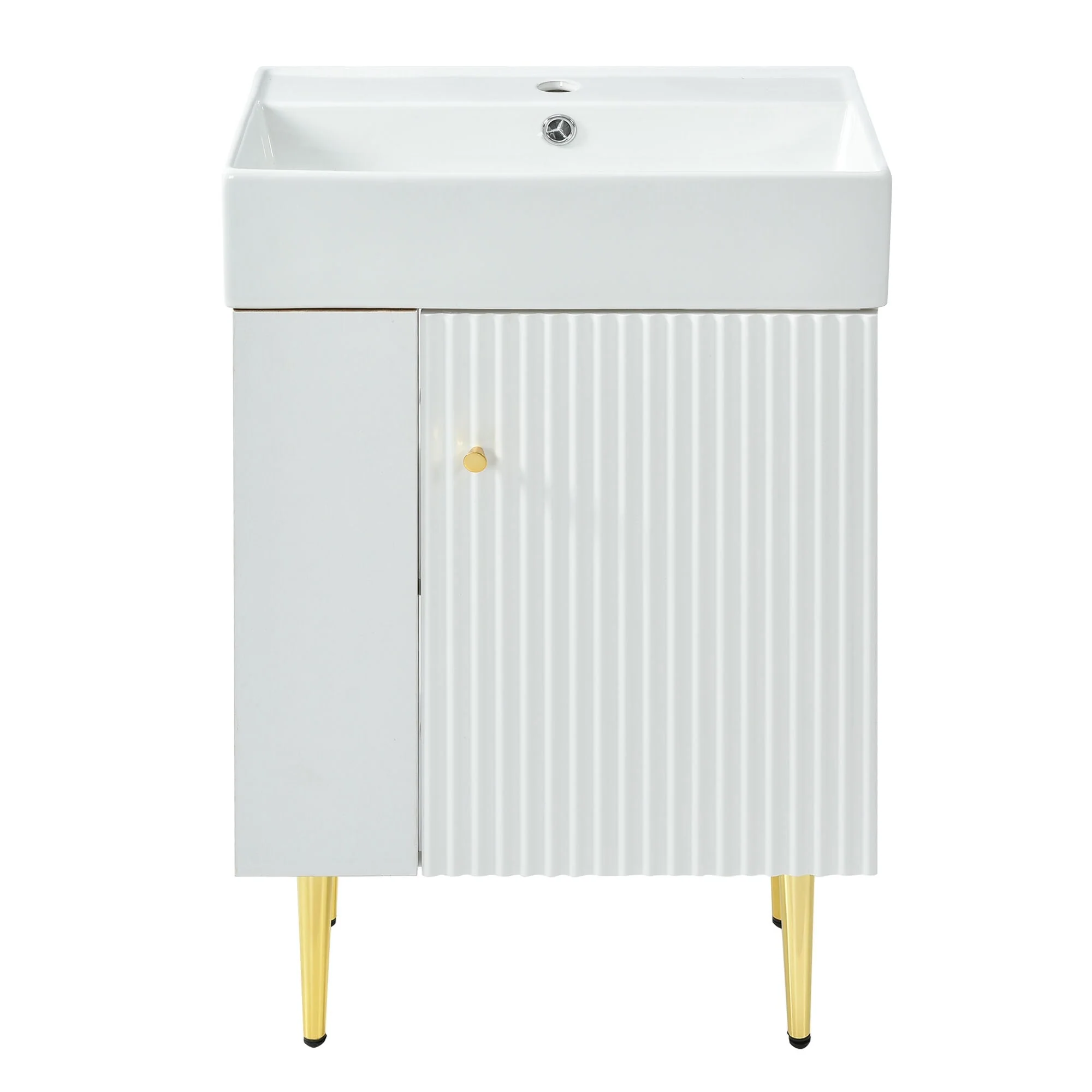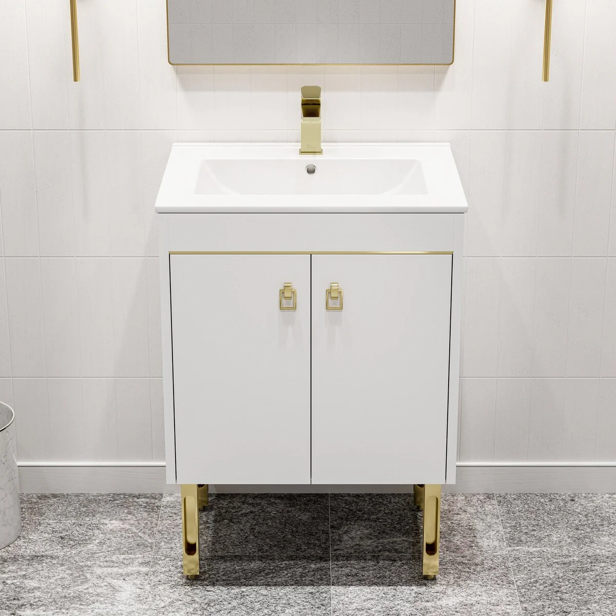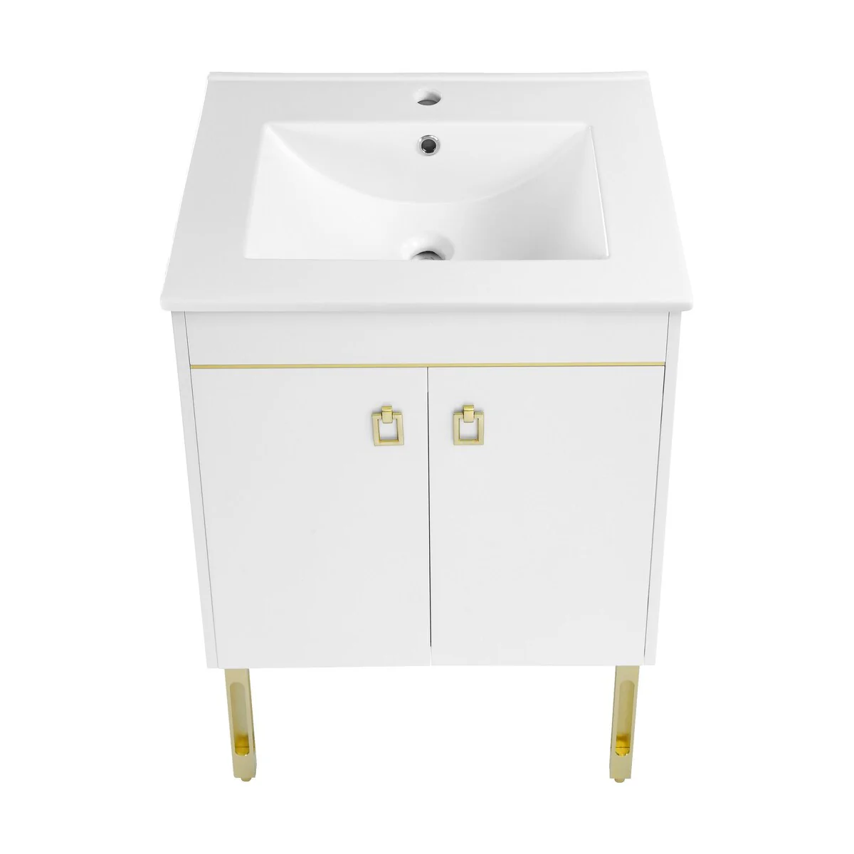 Lumiere 24" Freestanding, Bathroom Vanity in Glossy White and Gold