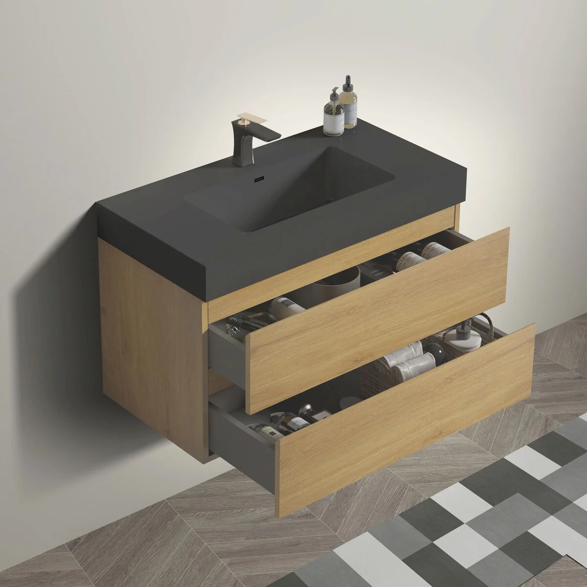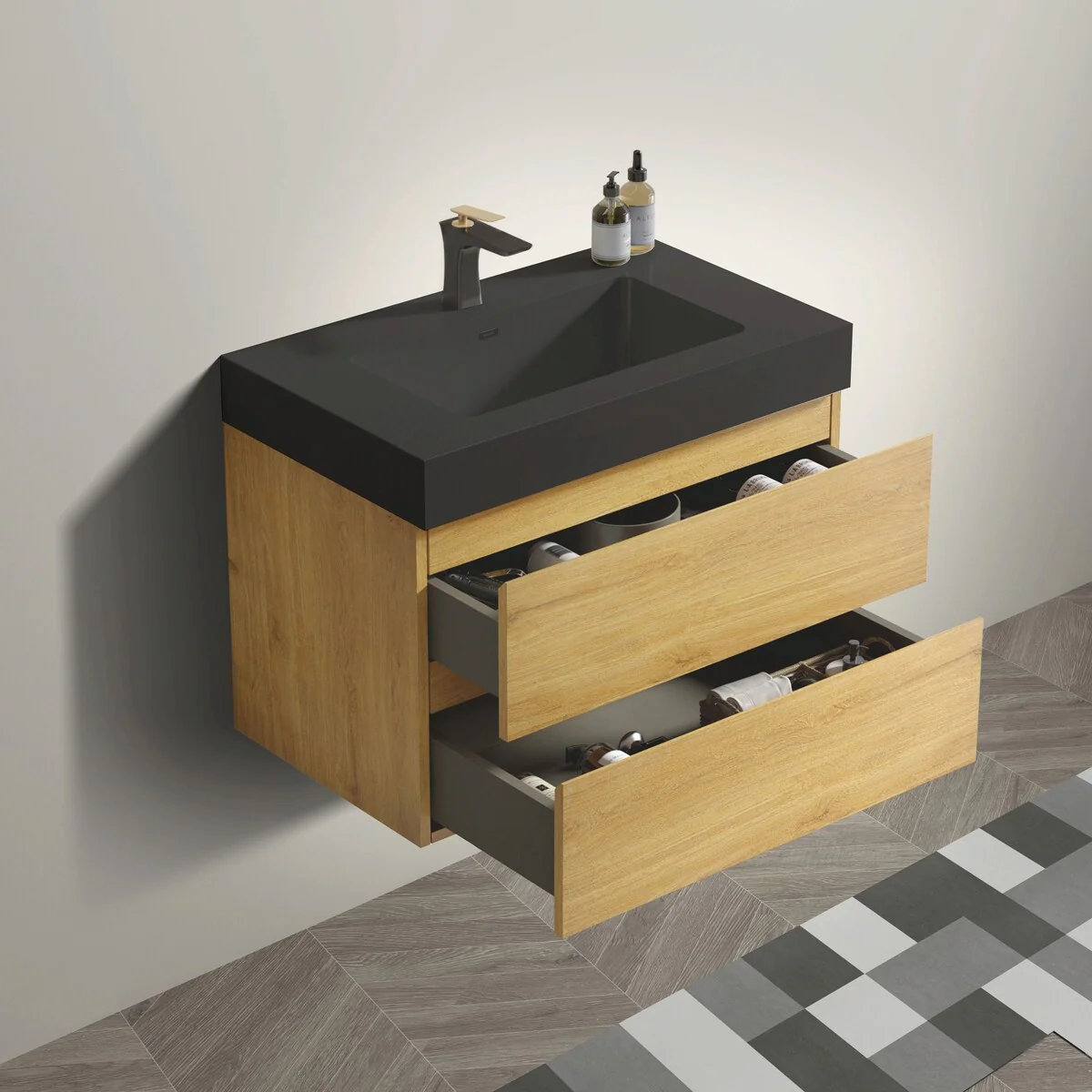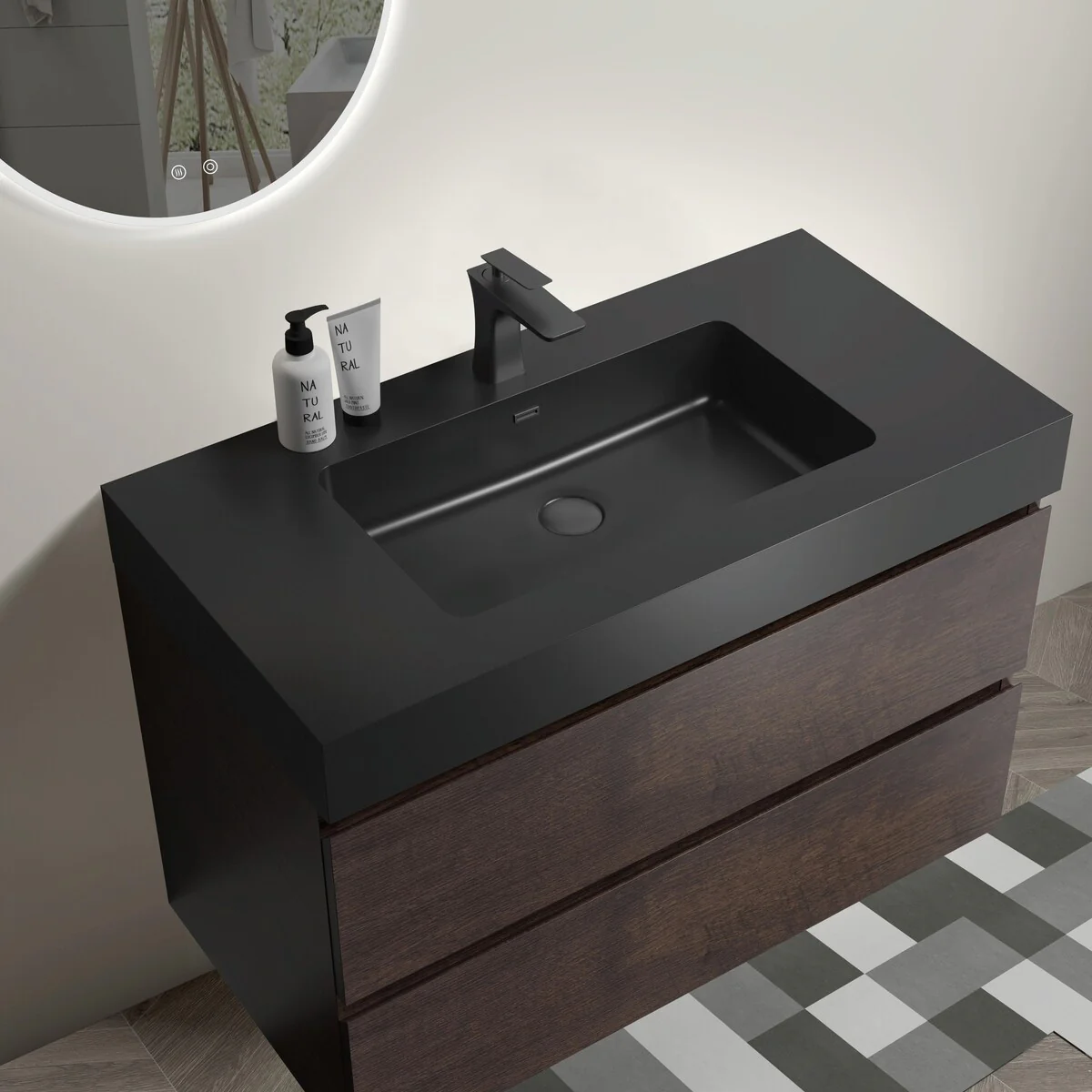 30-2black line ceramic sink
