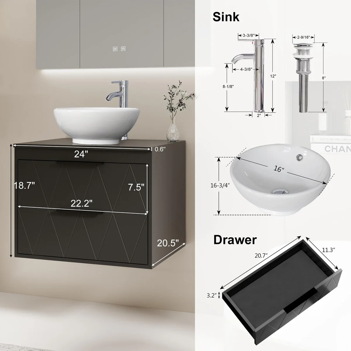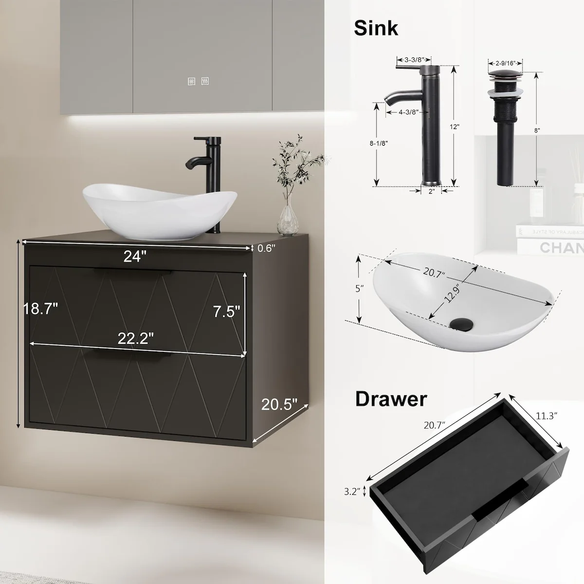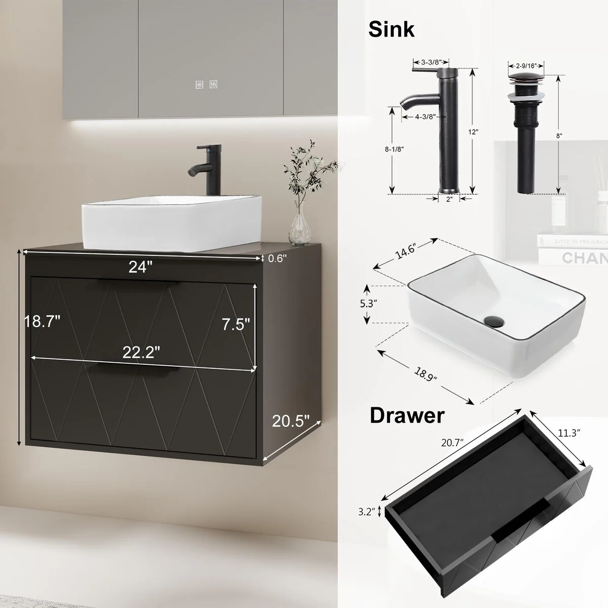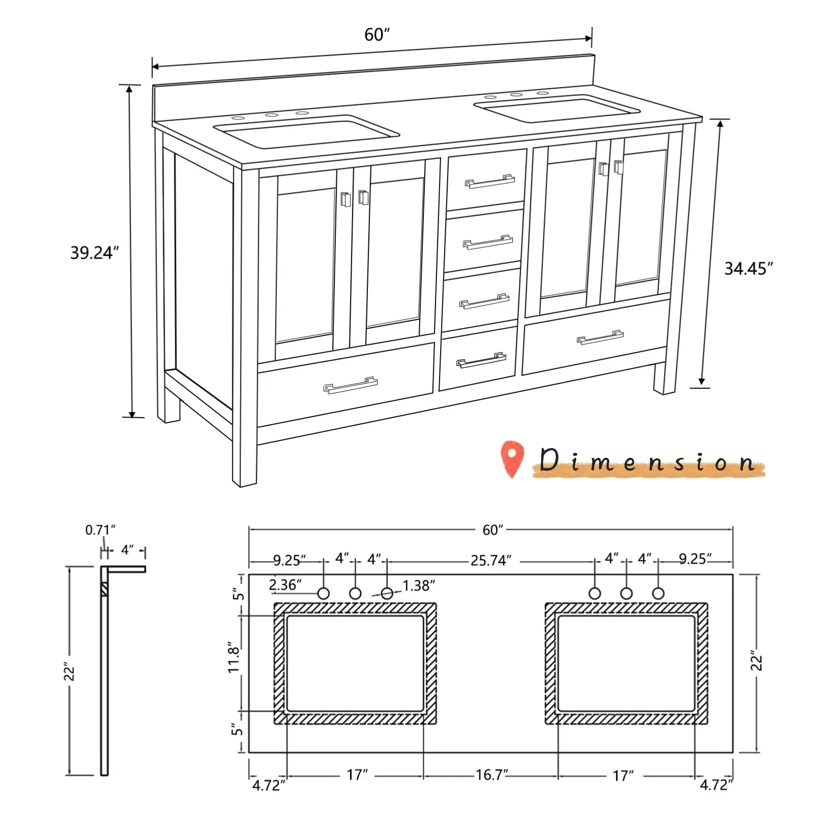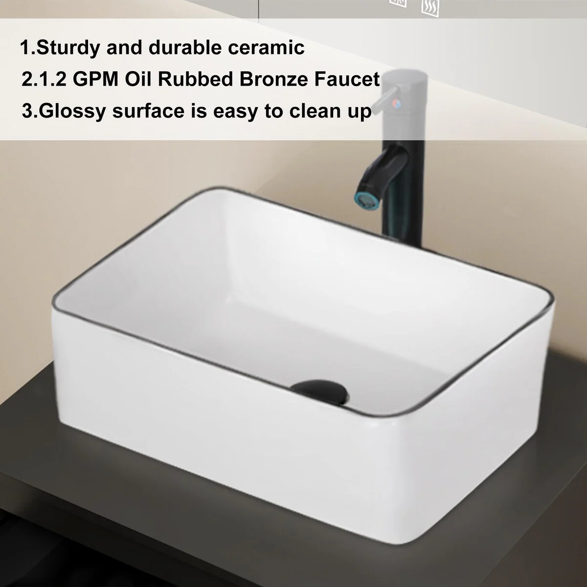 24-2black line ceramic sink