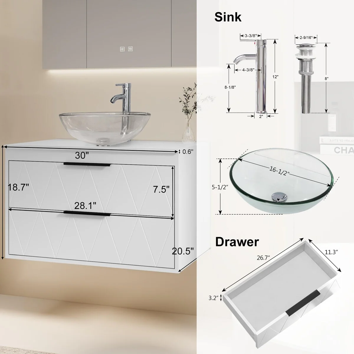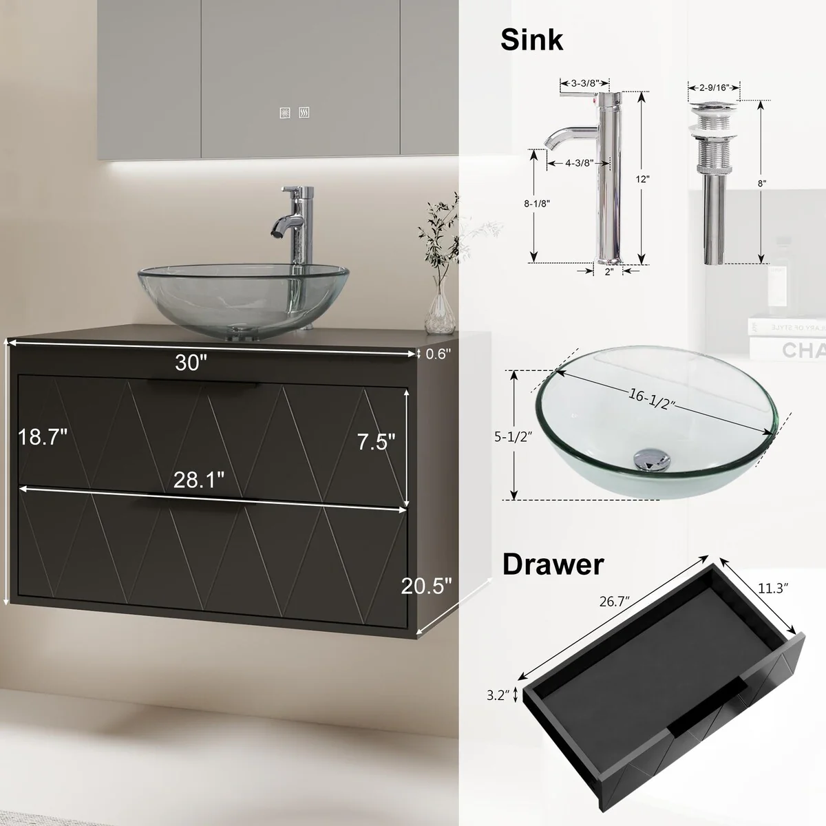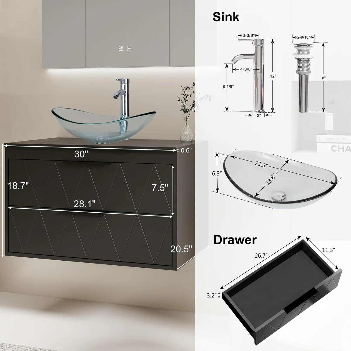 30-1glass clear boat sink
