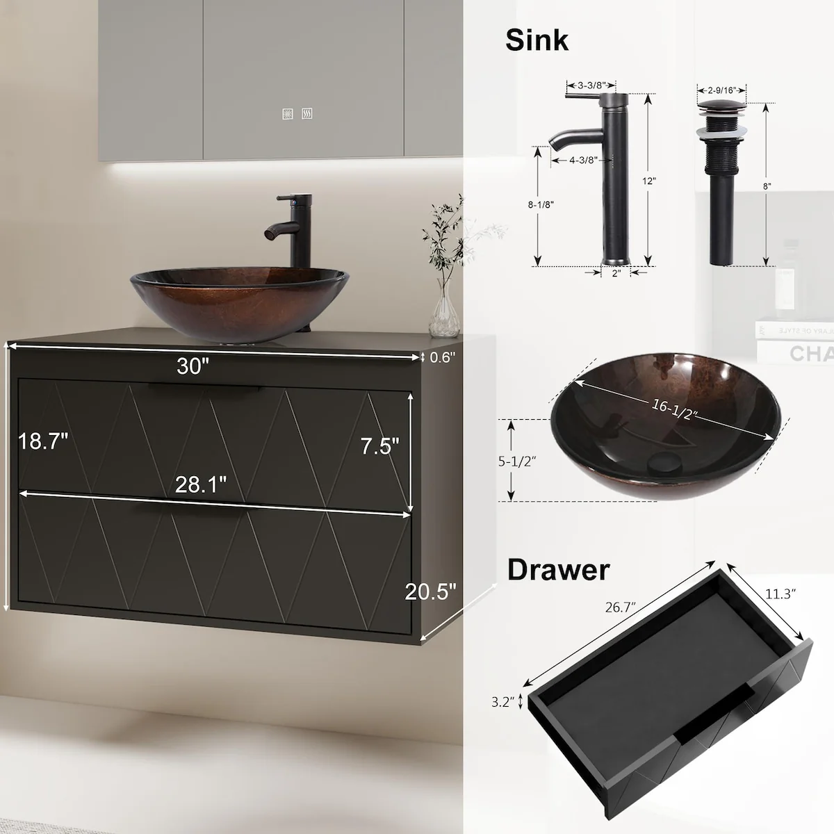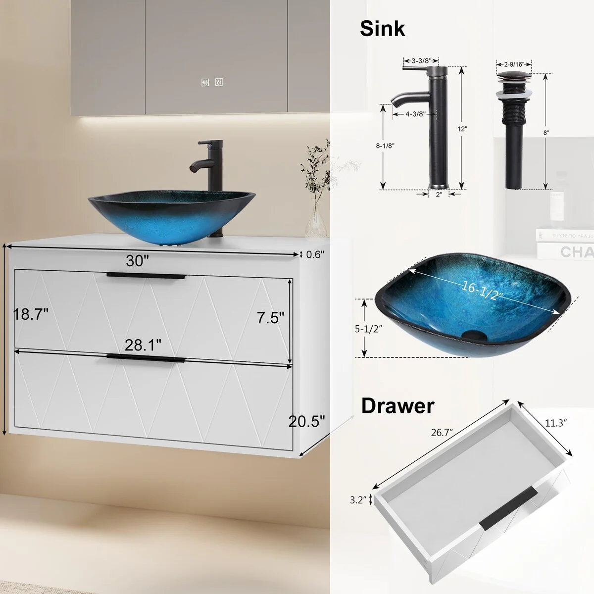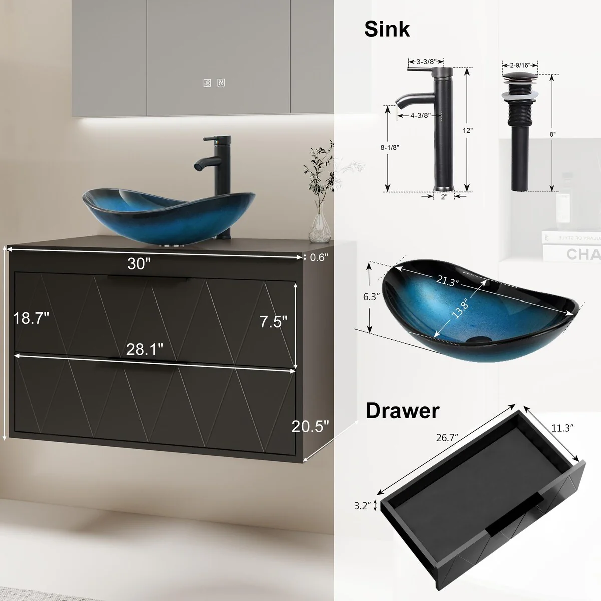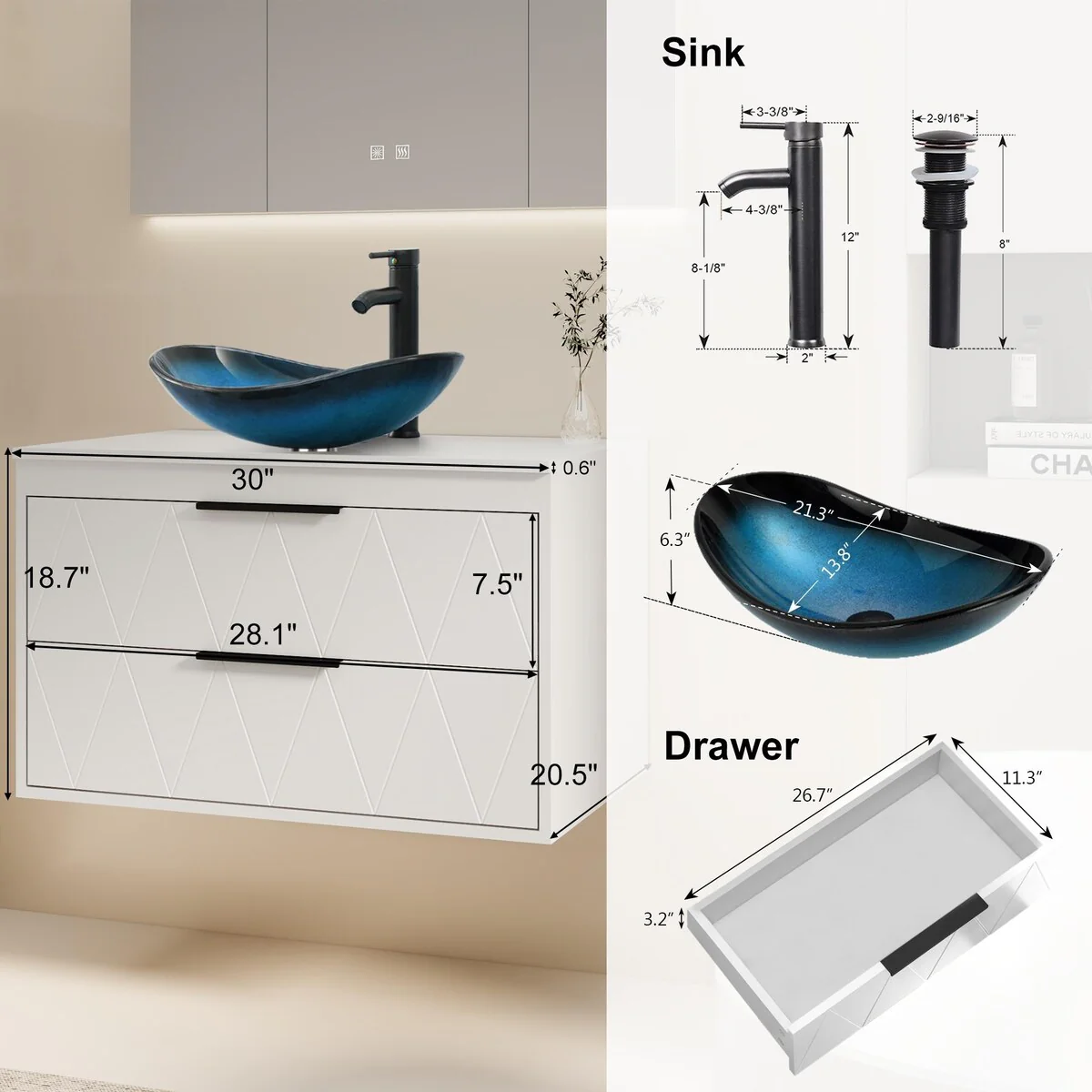 30-1glass clear boat sink