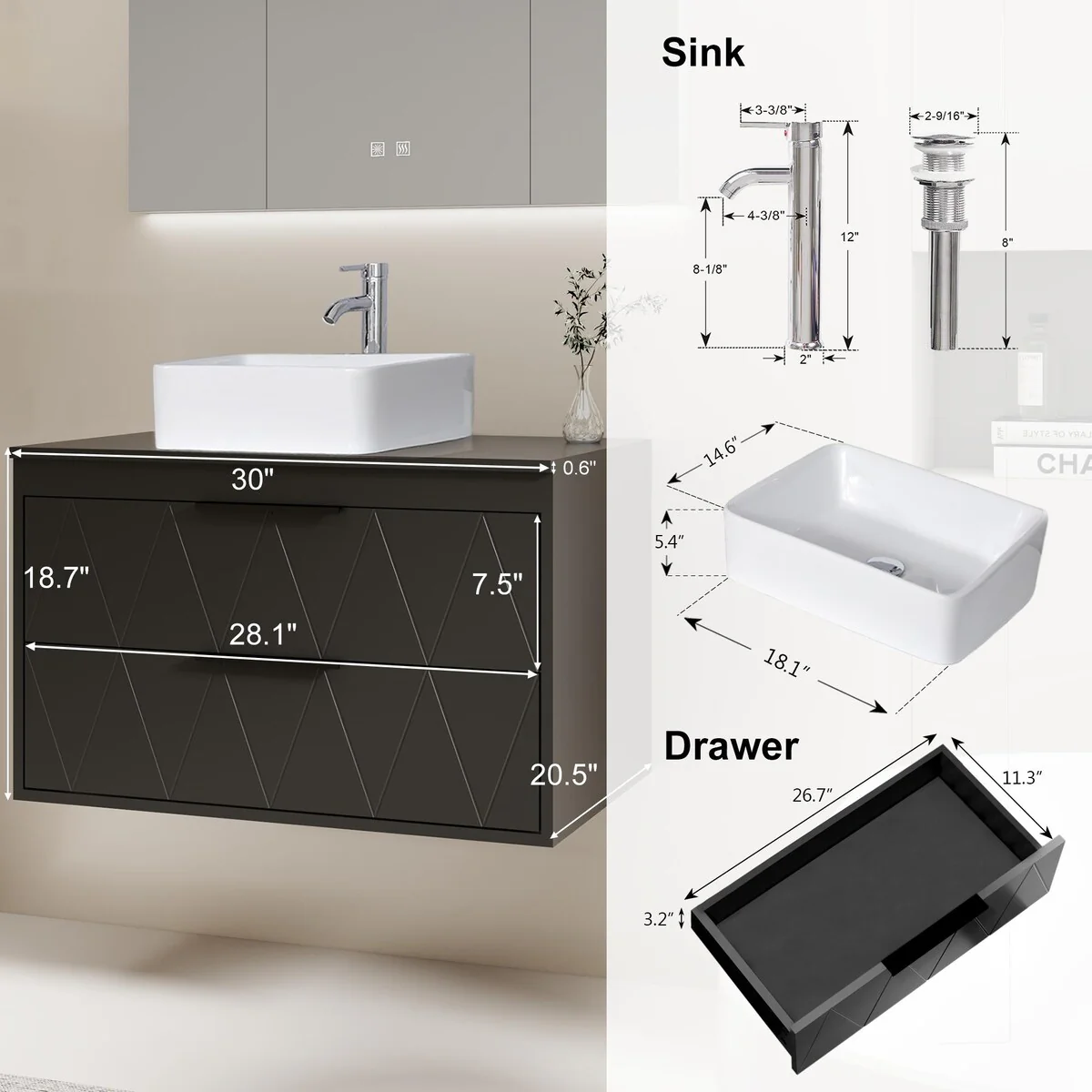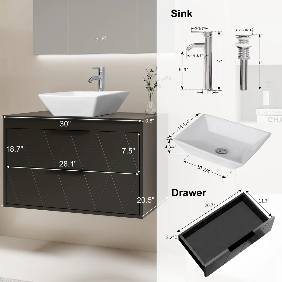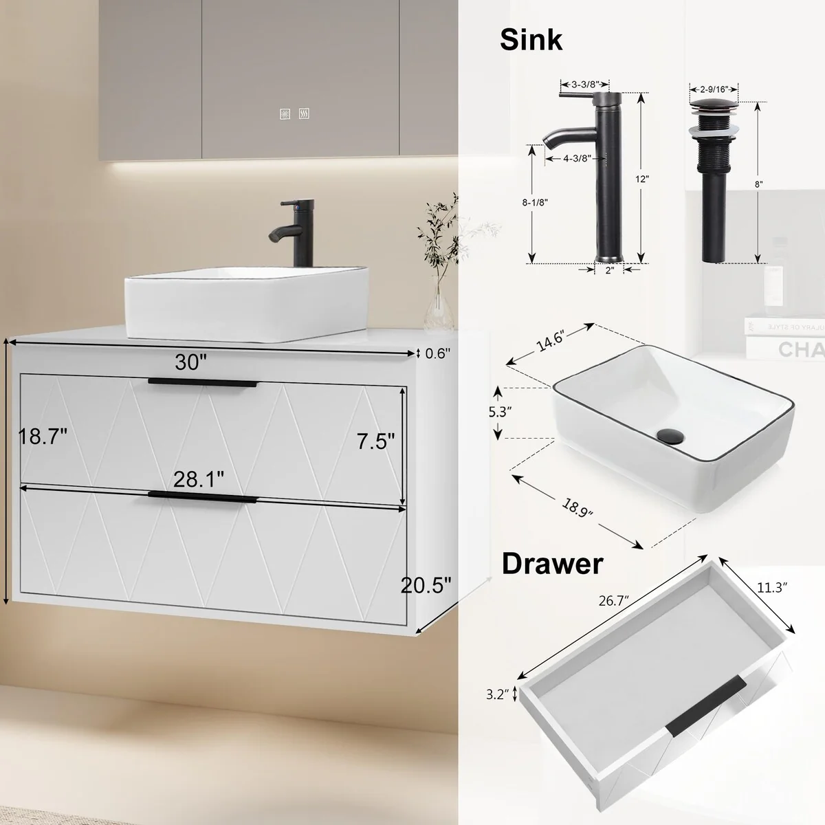 30-1white ceramic square sink