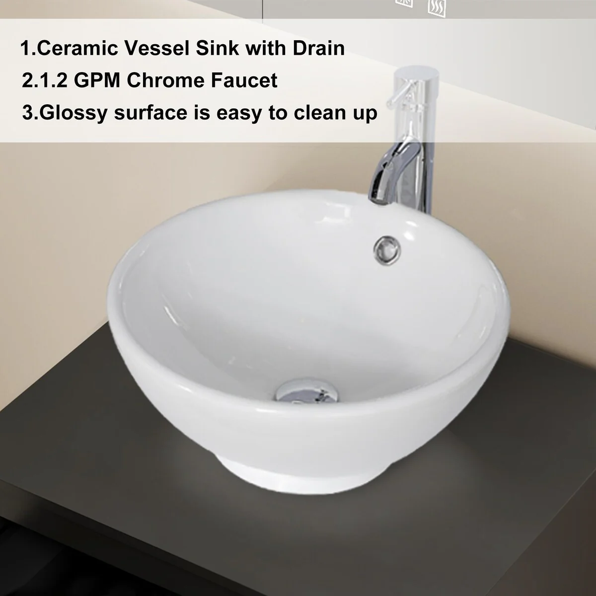 24-1white ceramic round sink