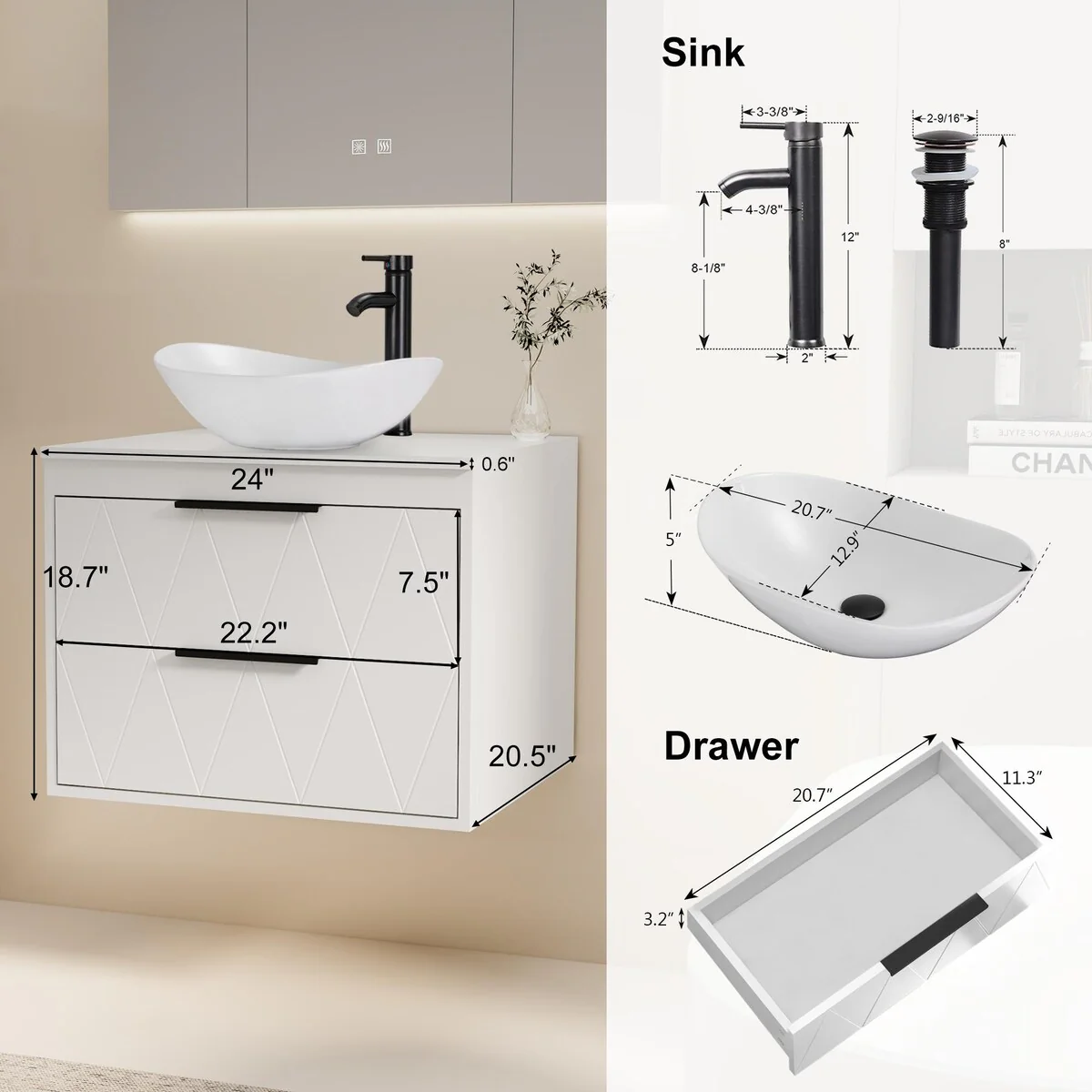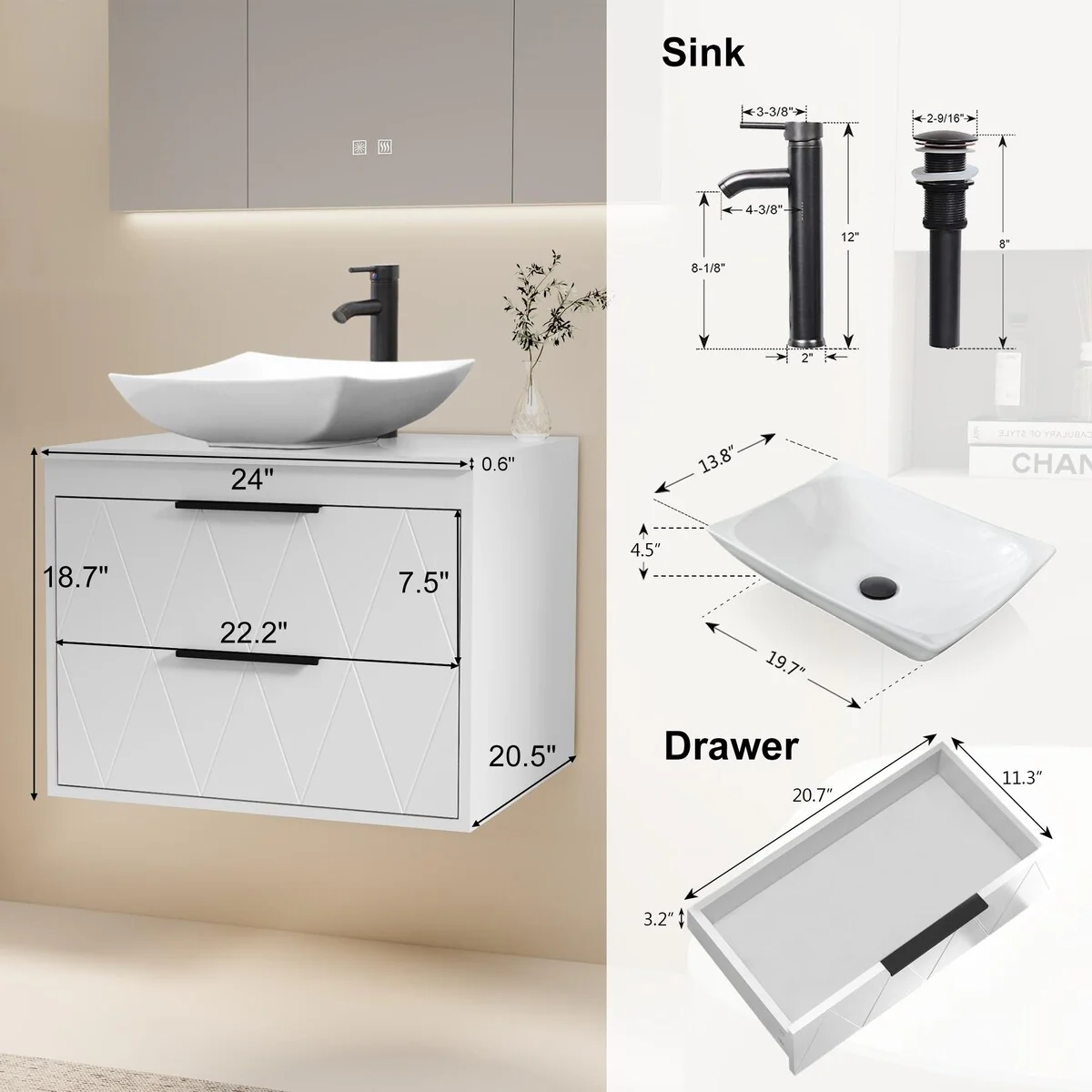 24-2white ceramic boat sink