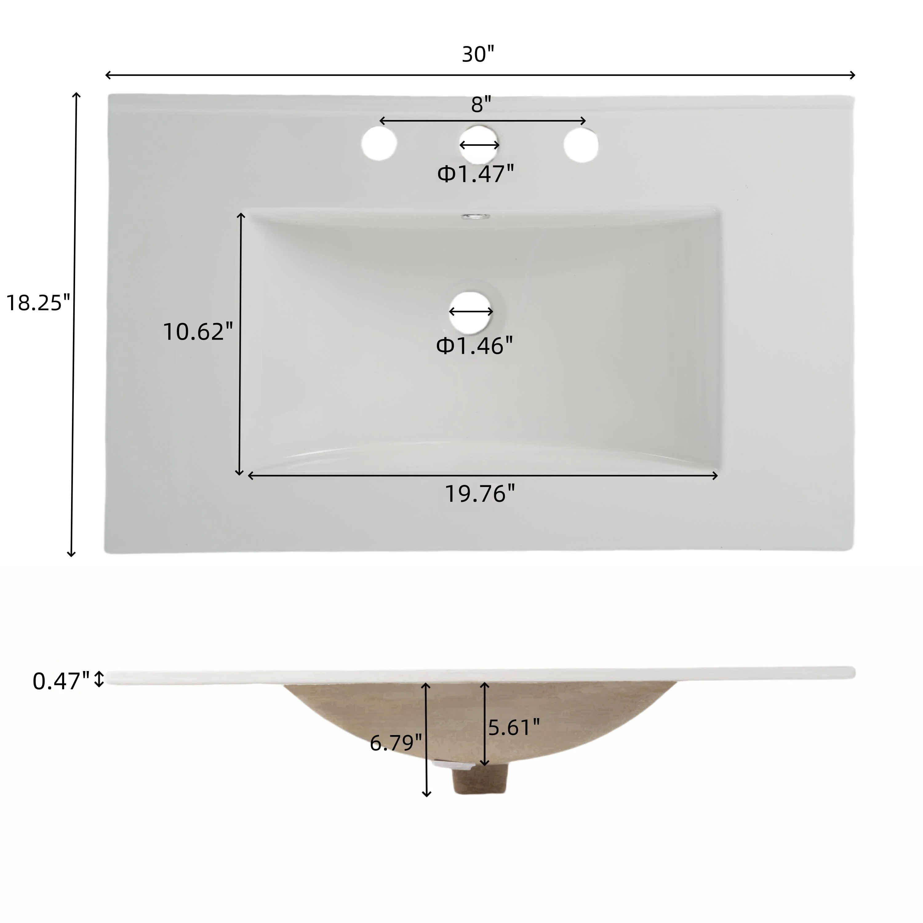 30-1white ceramic rectangular sink