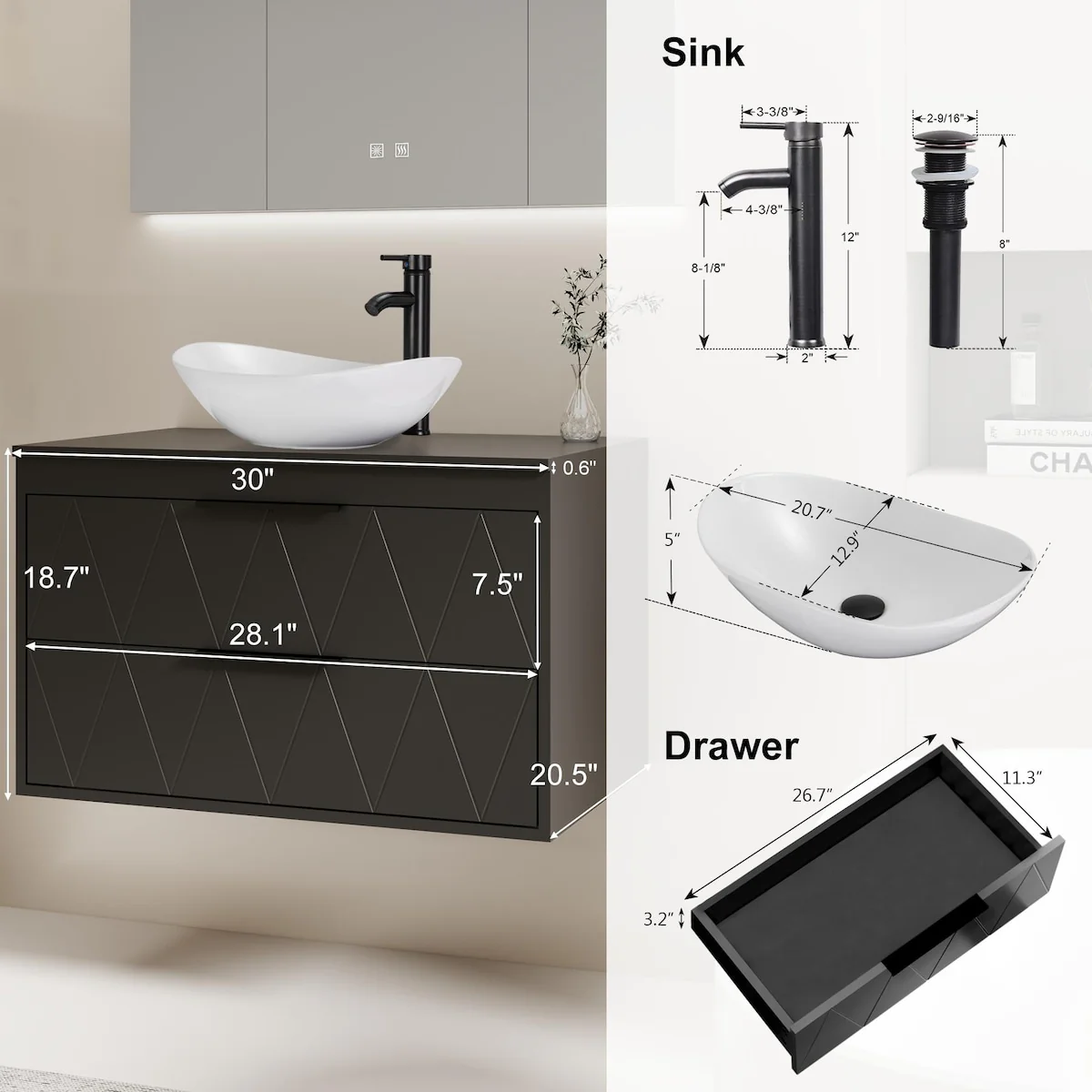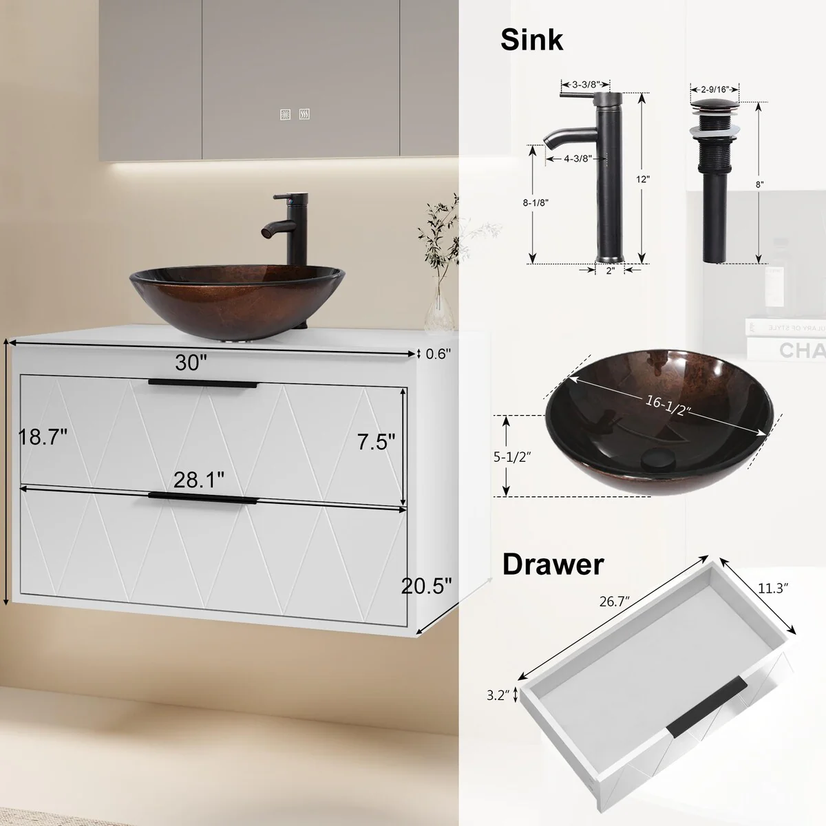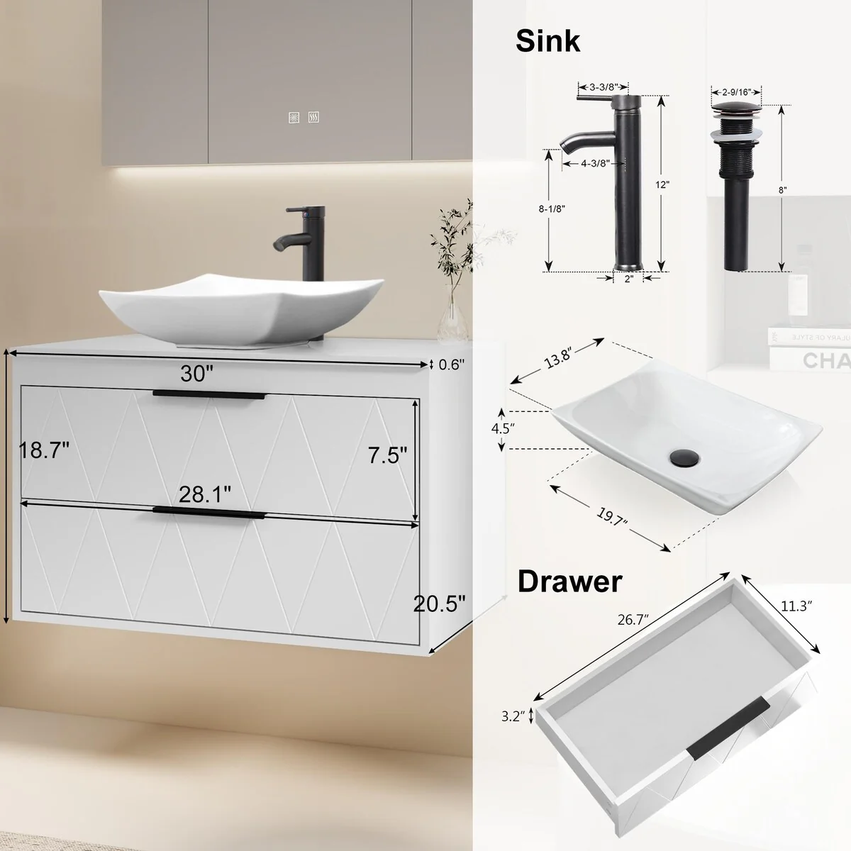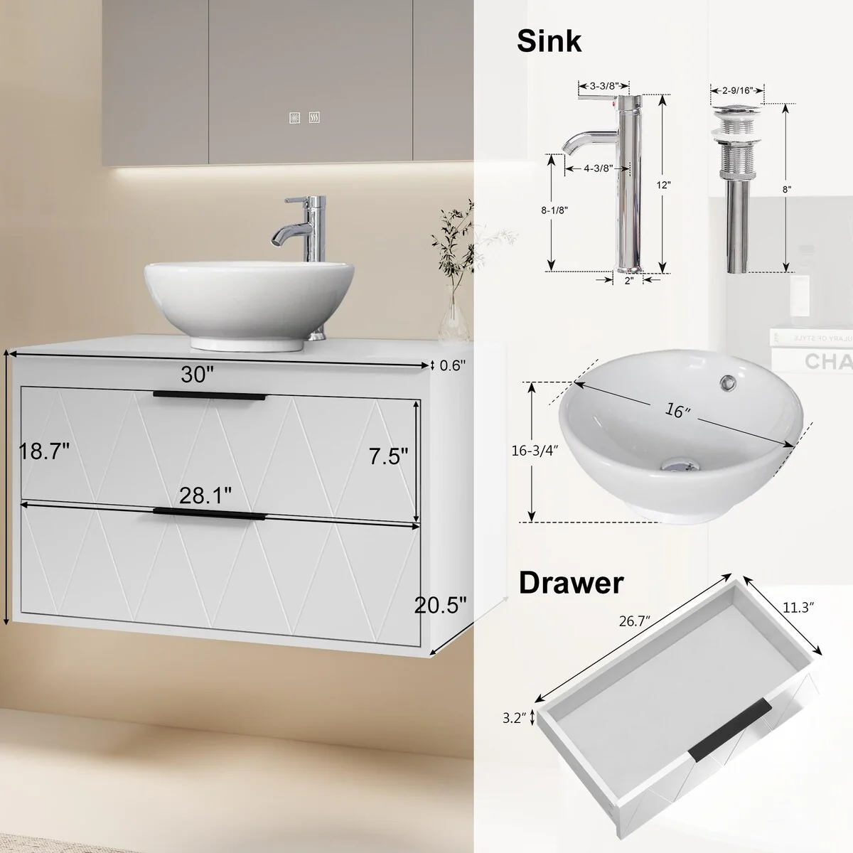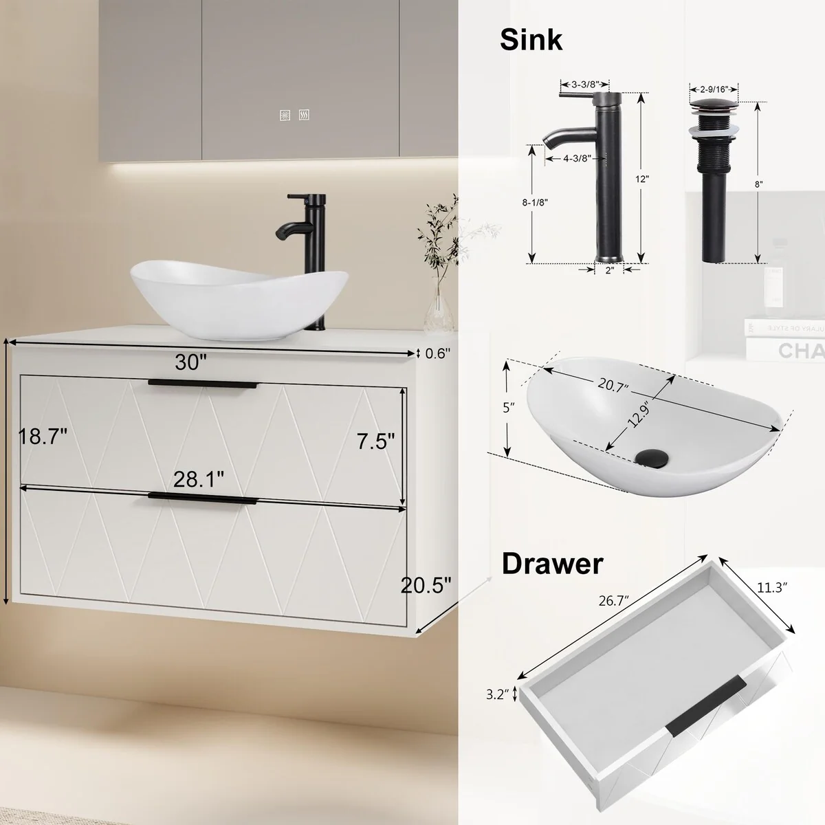 30-2white ceramic boat sink