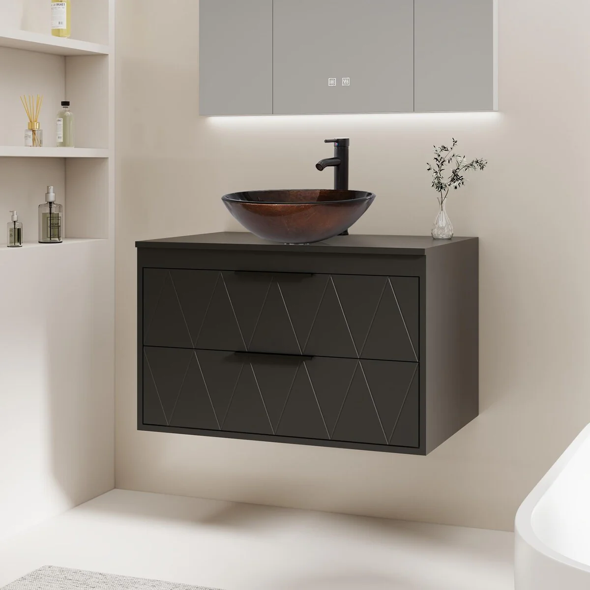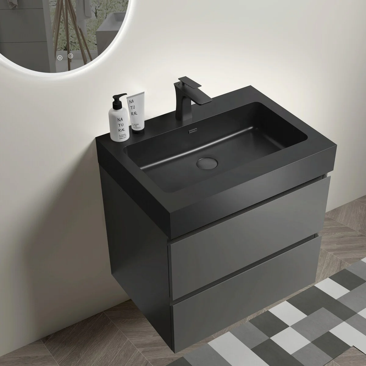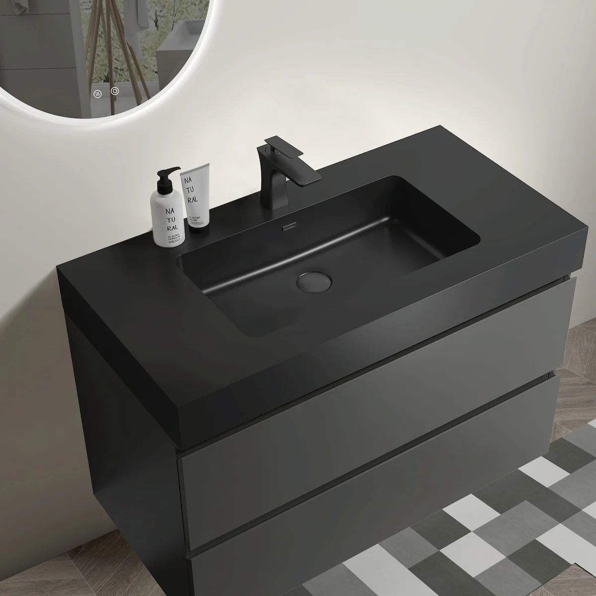 24-1black line ceramic sink