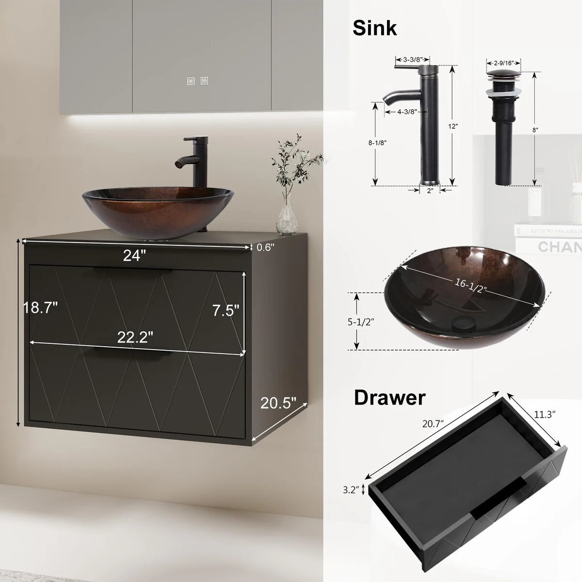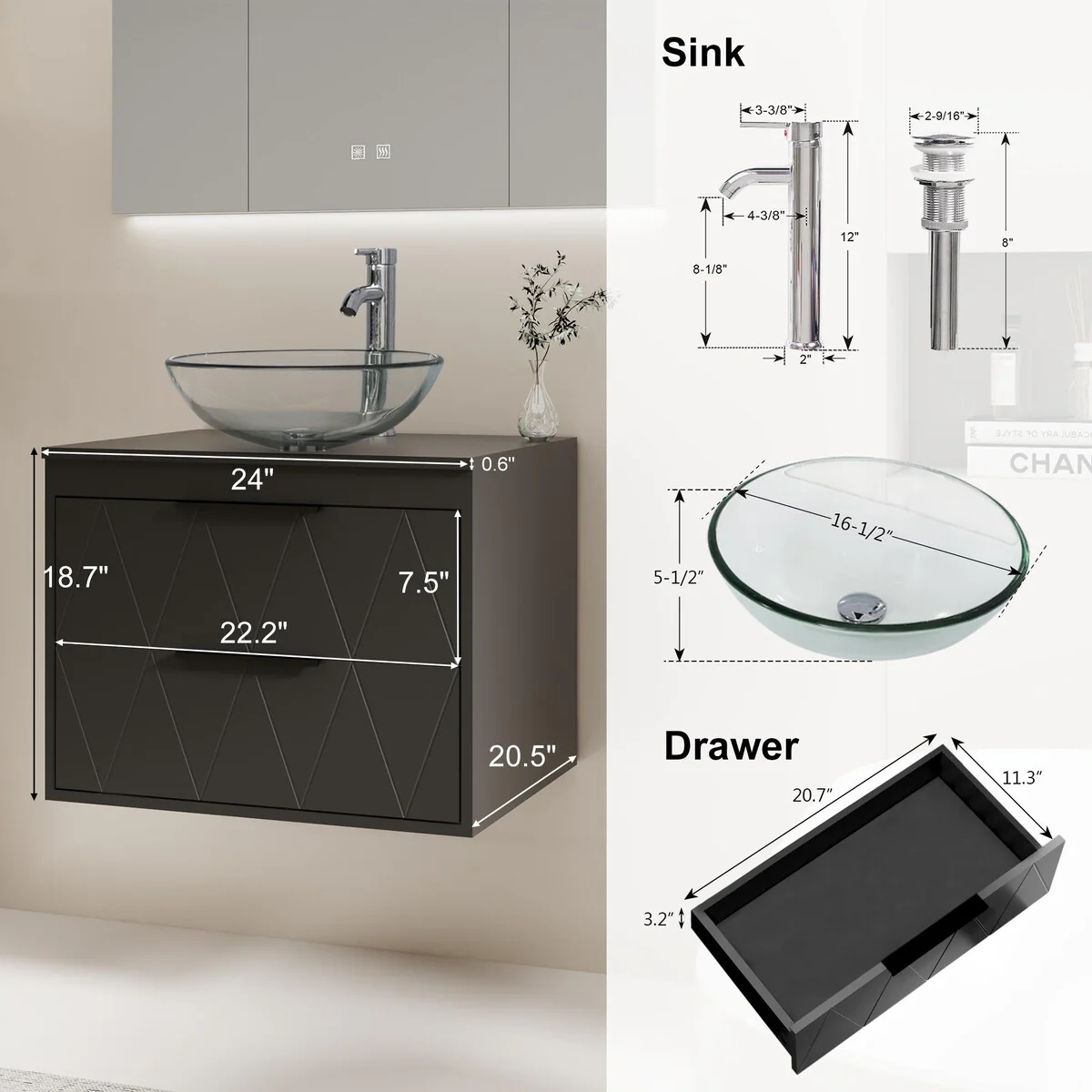 24-2glass clear boat sink