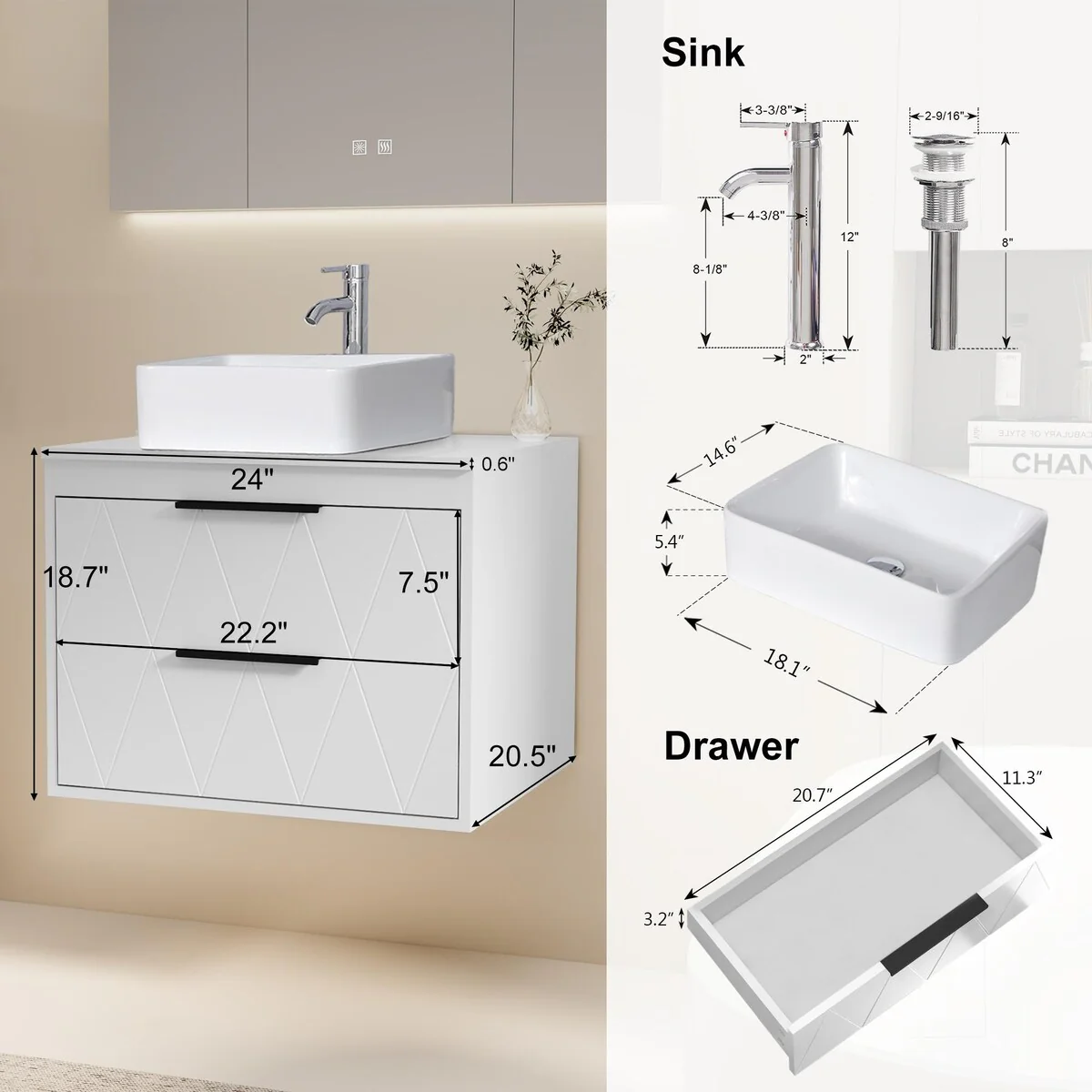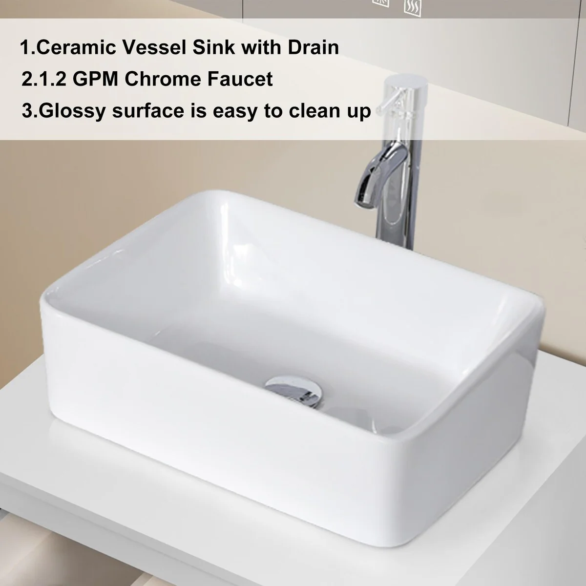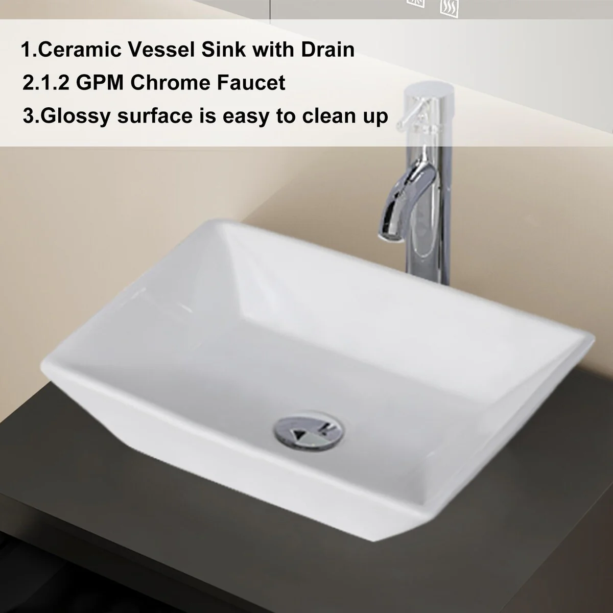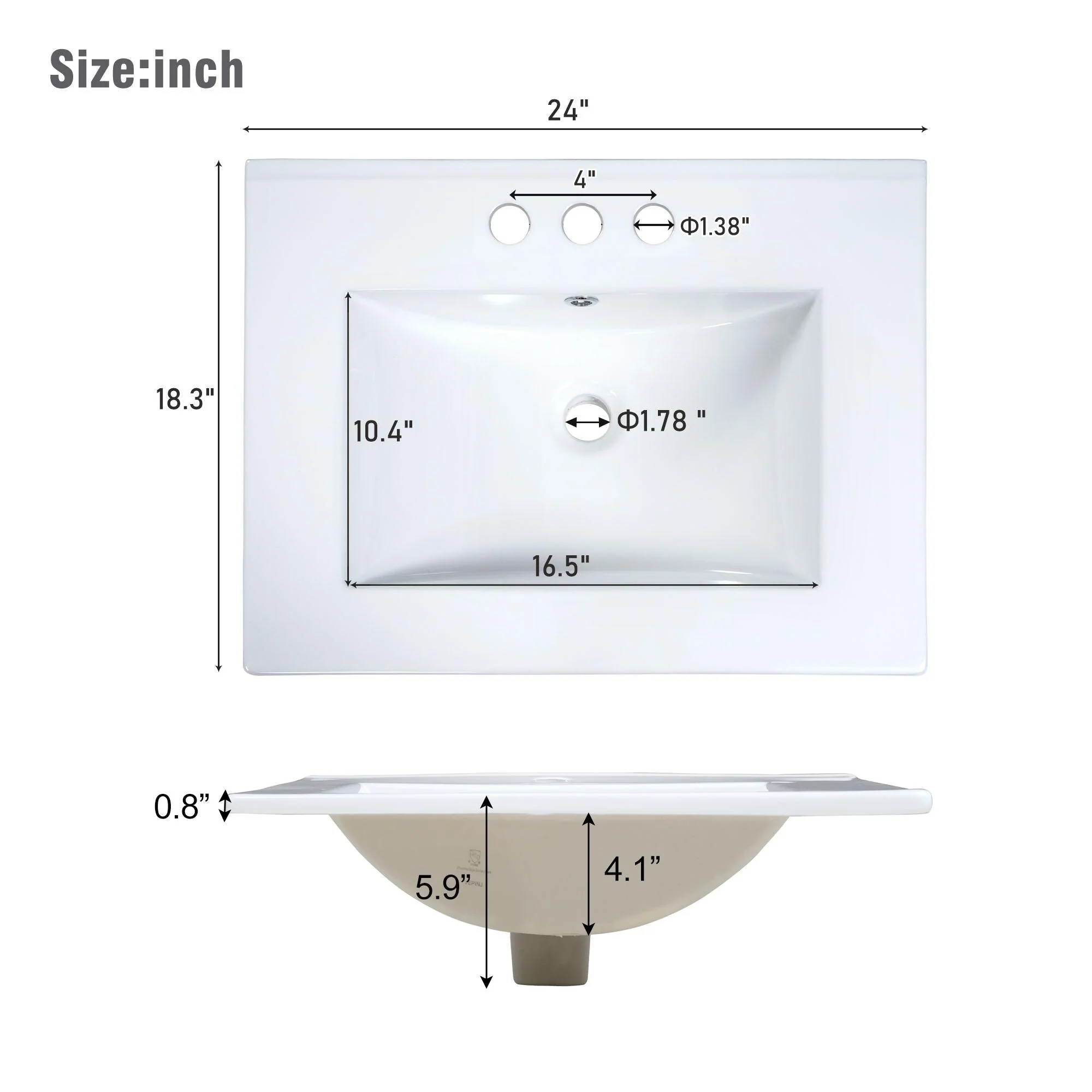 24-1white ceramic square sink