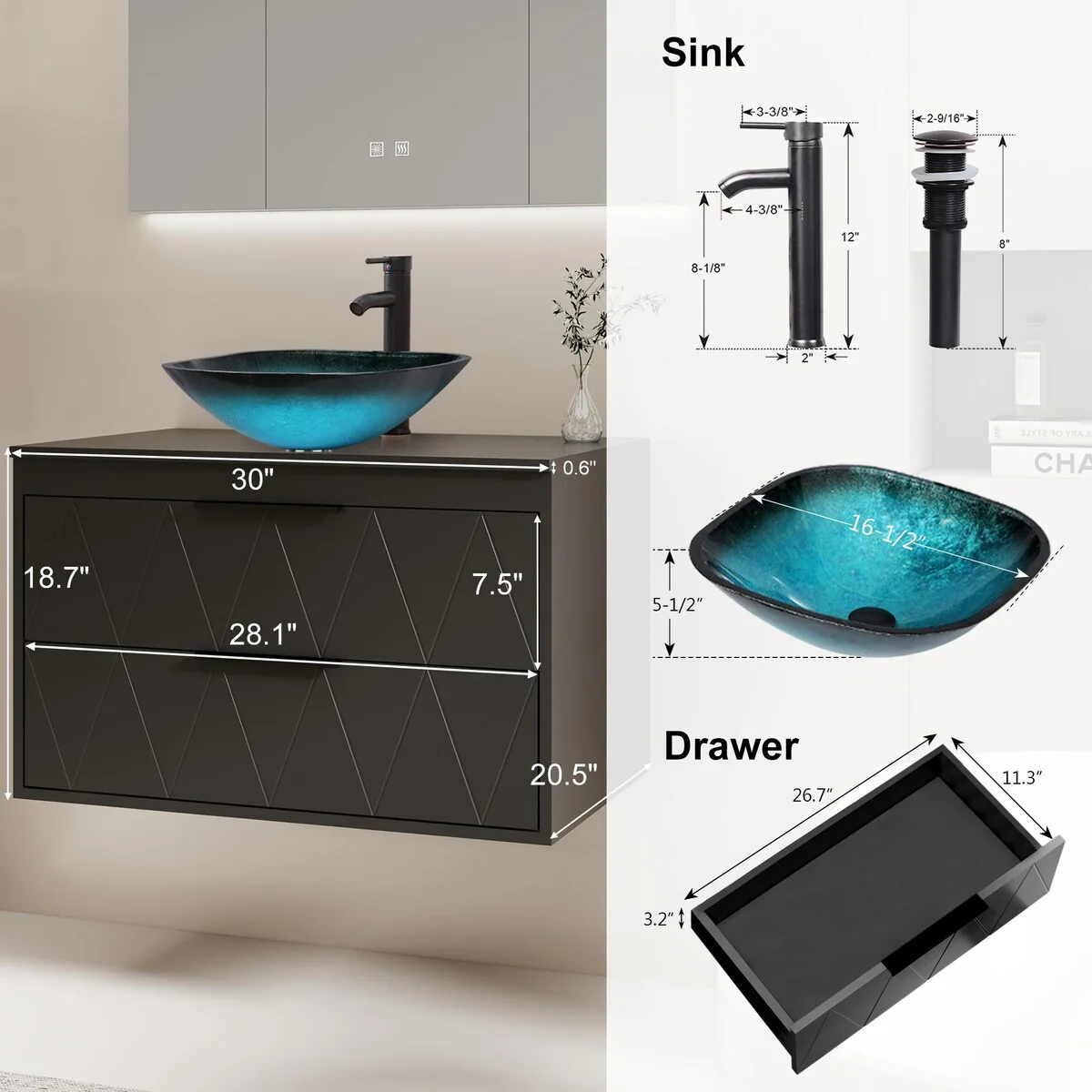 30-2Turquoise Square sink