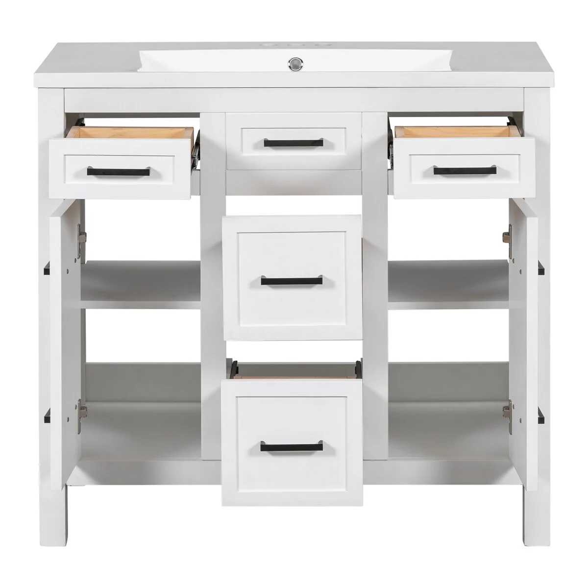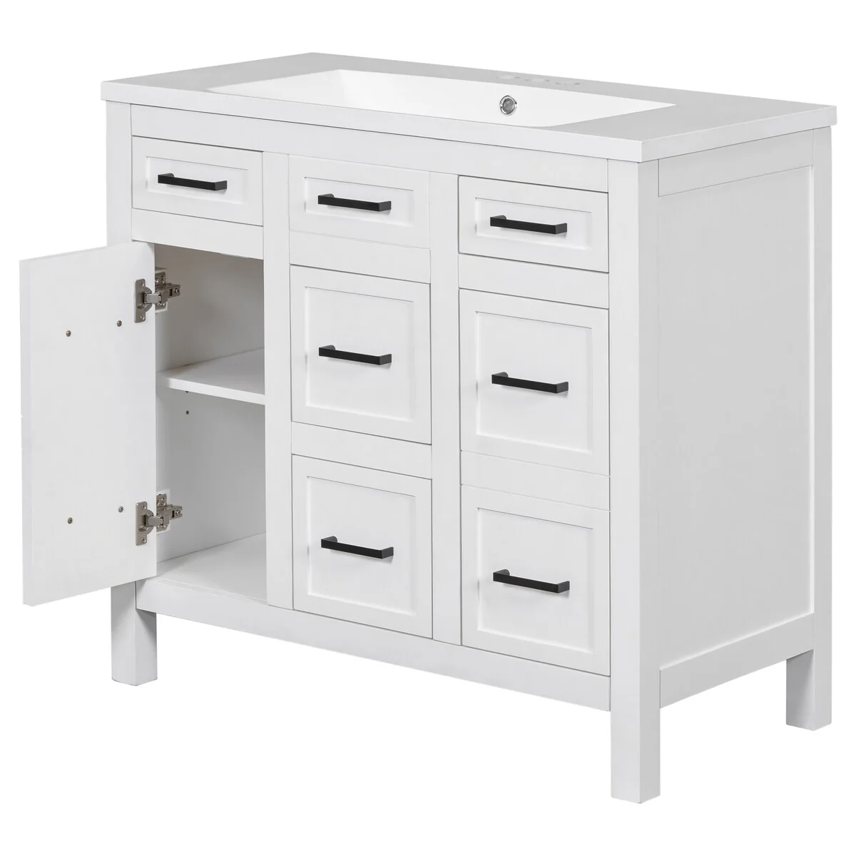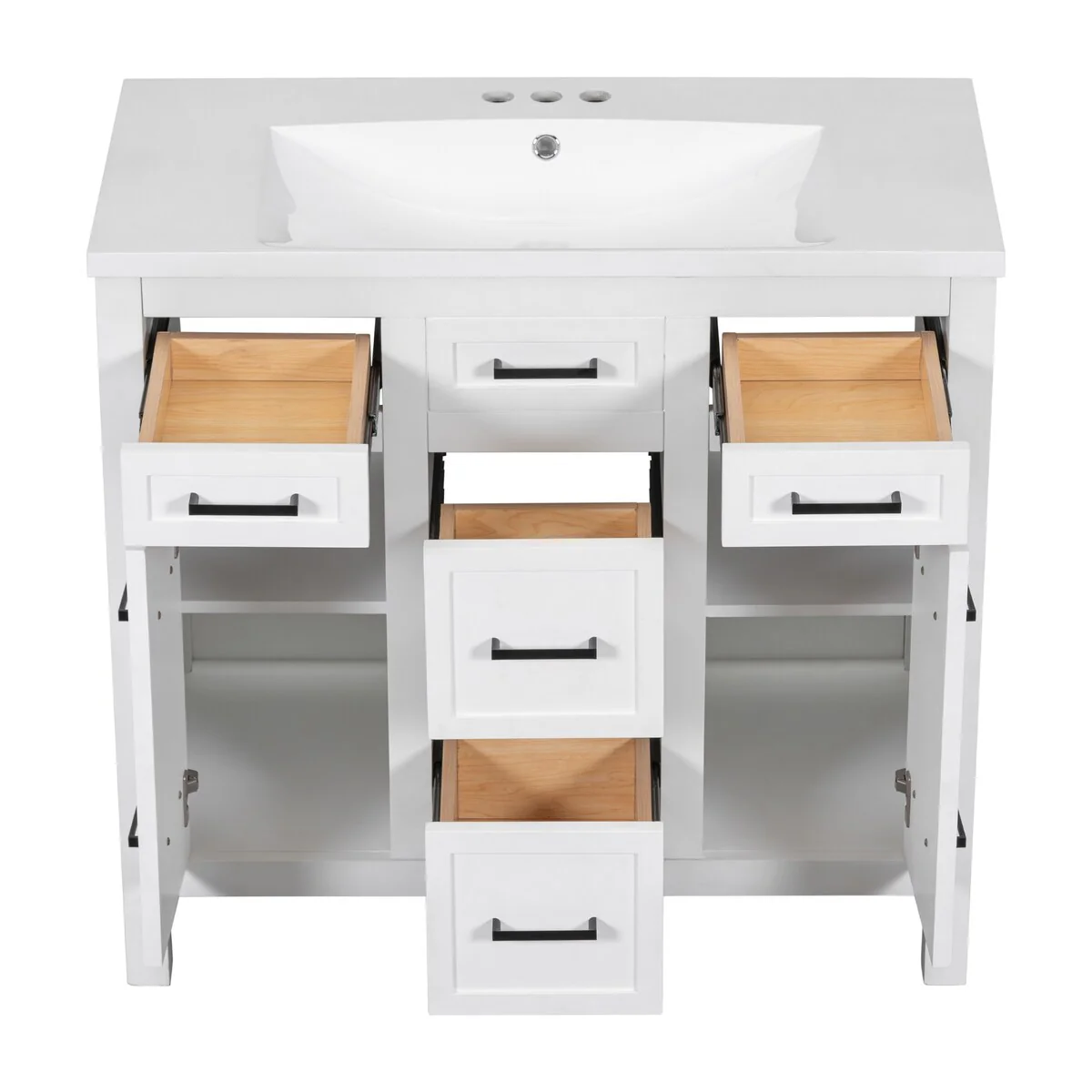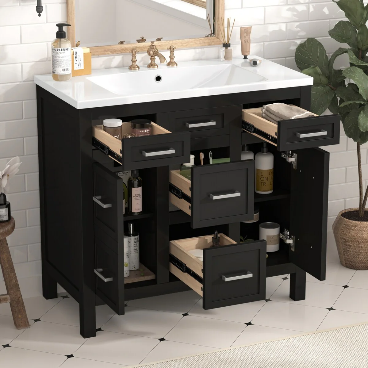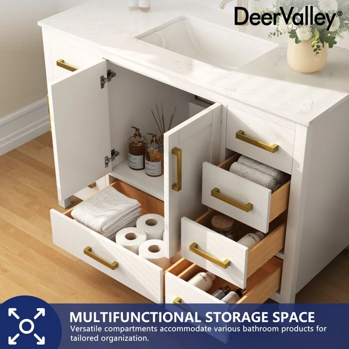 36" Bathroom Vanity Cabinet with 4 Drawers 2 Doors