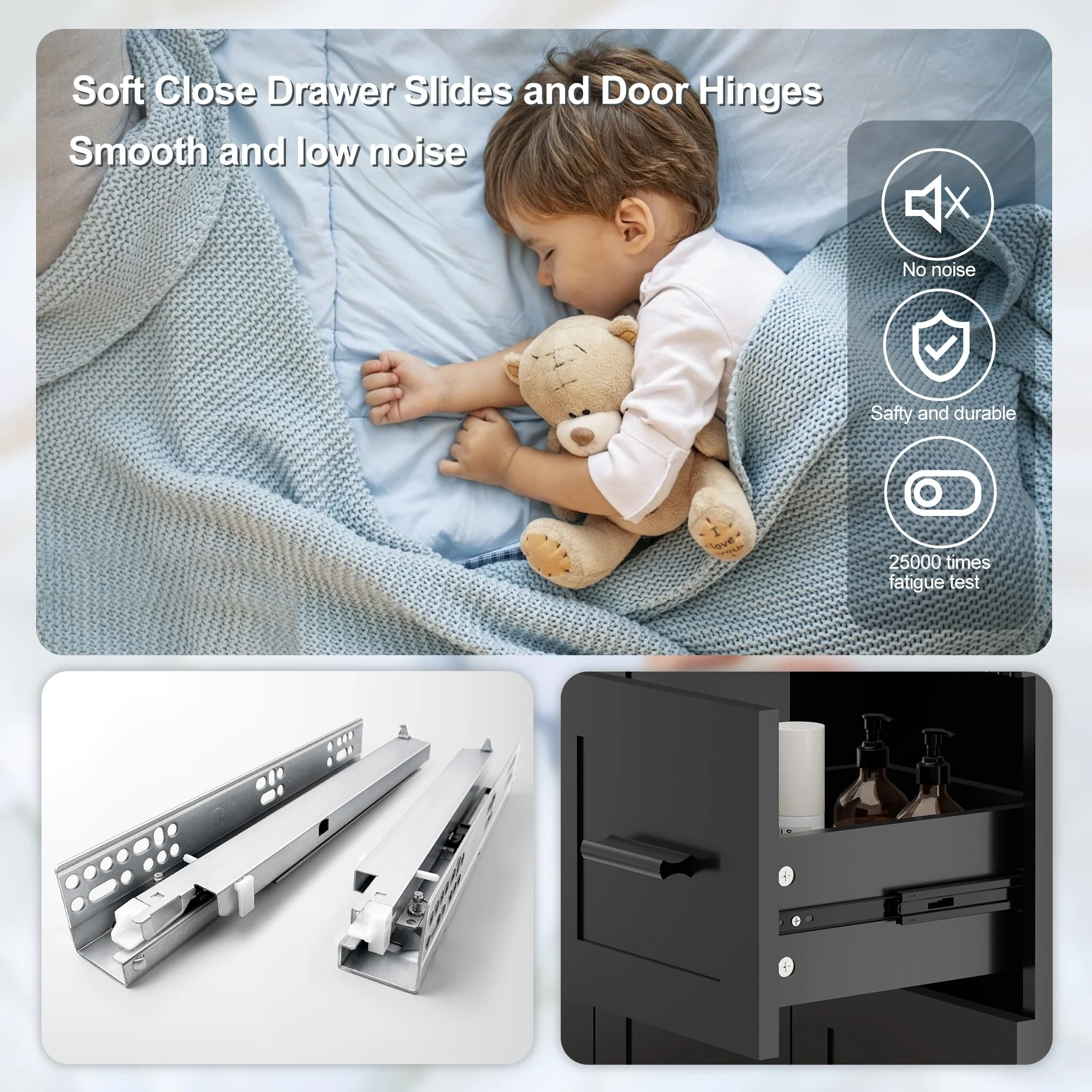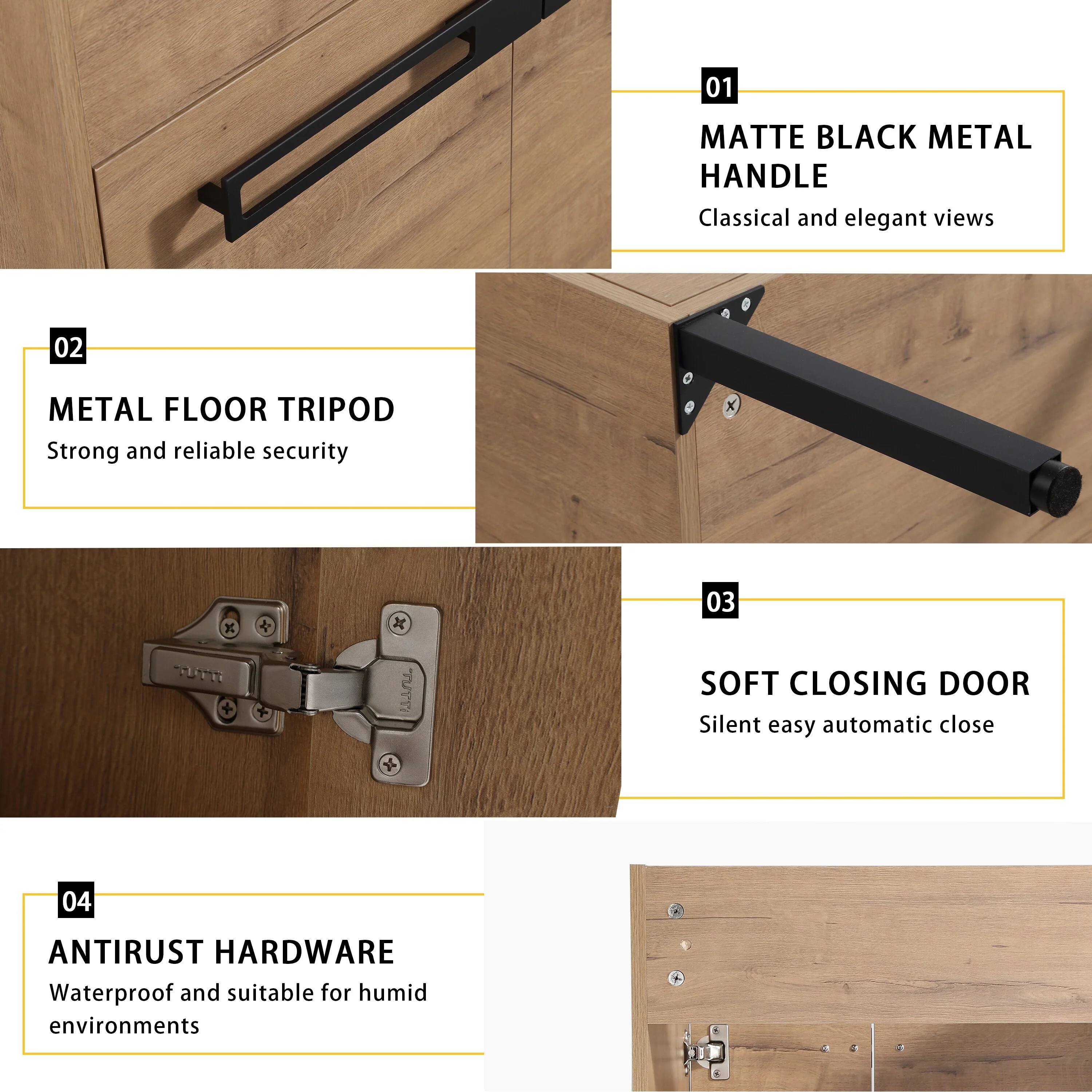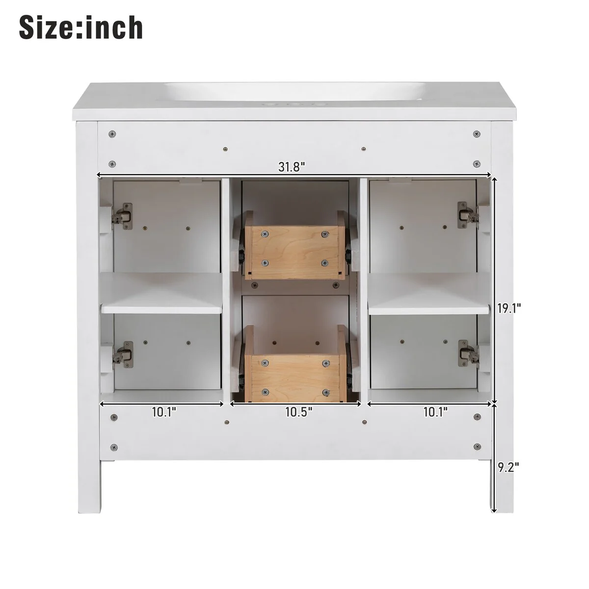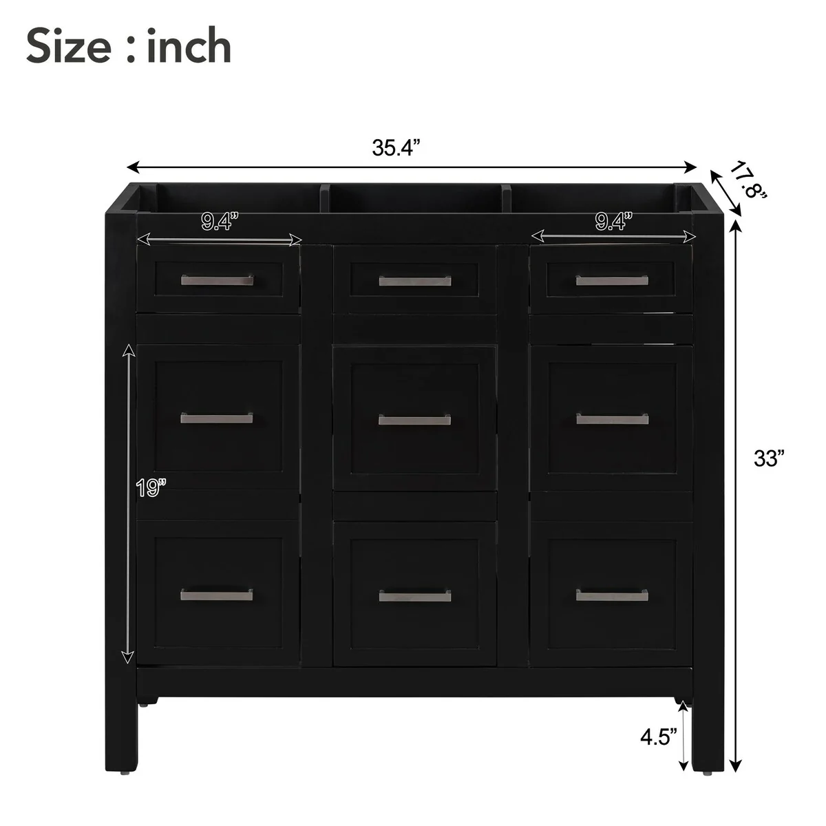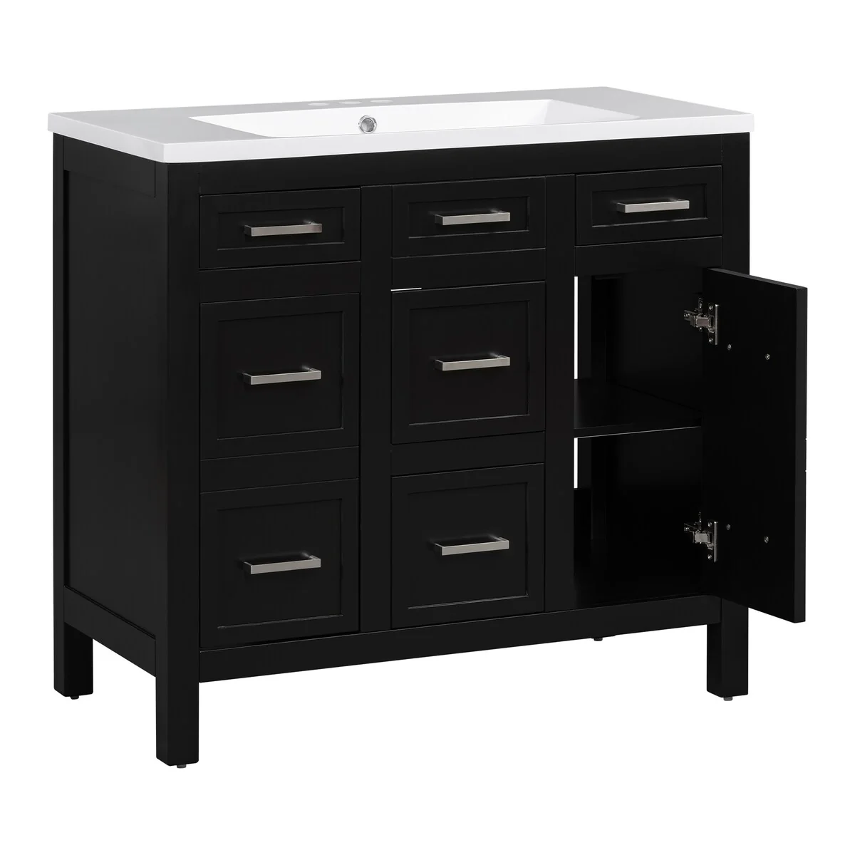 36" Bathroom Vanity Cabinet with 4 Drawers 2 Doors