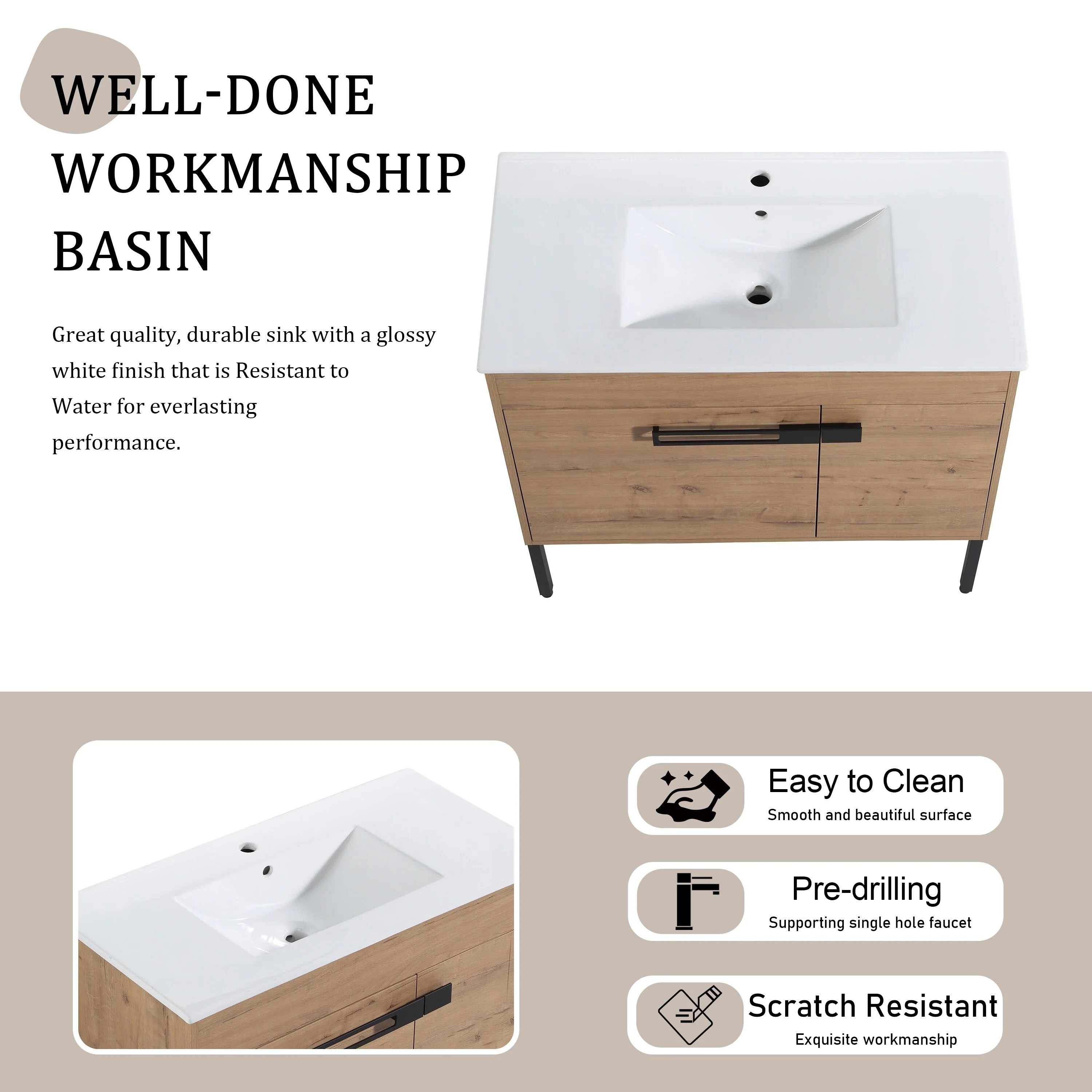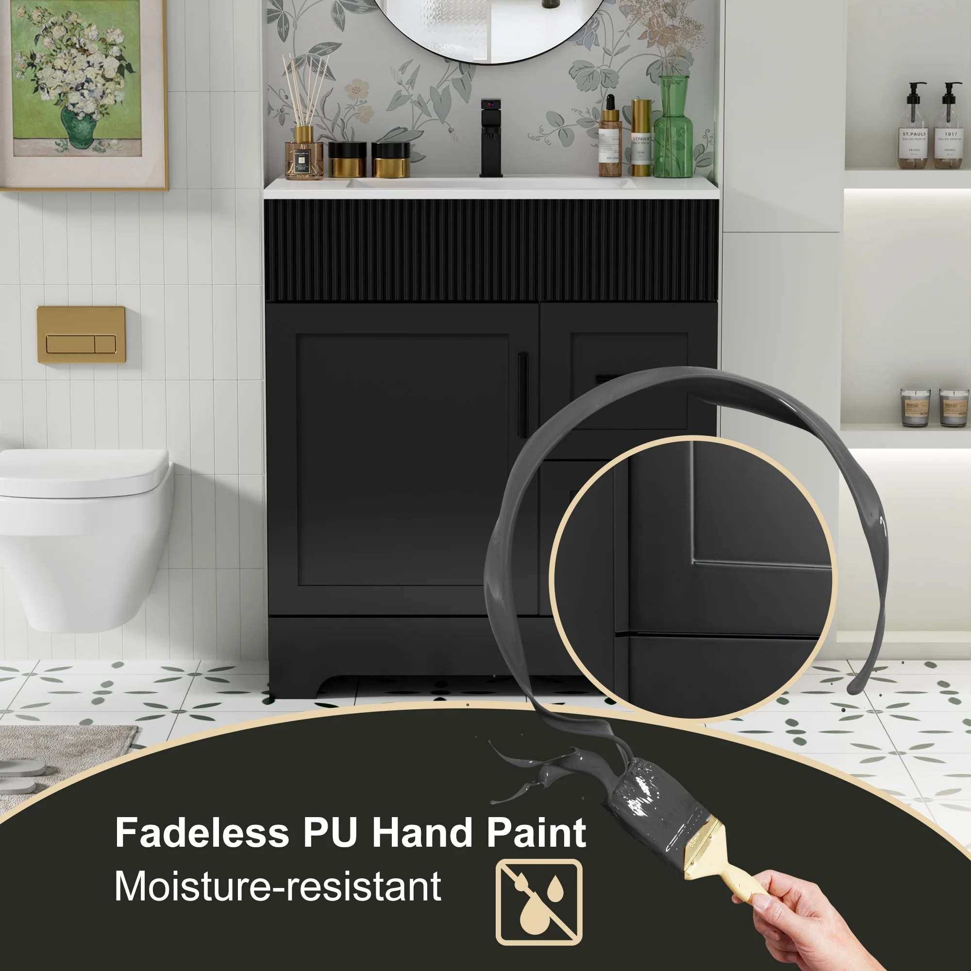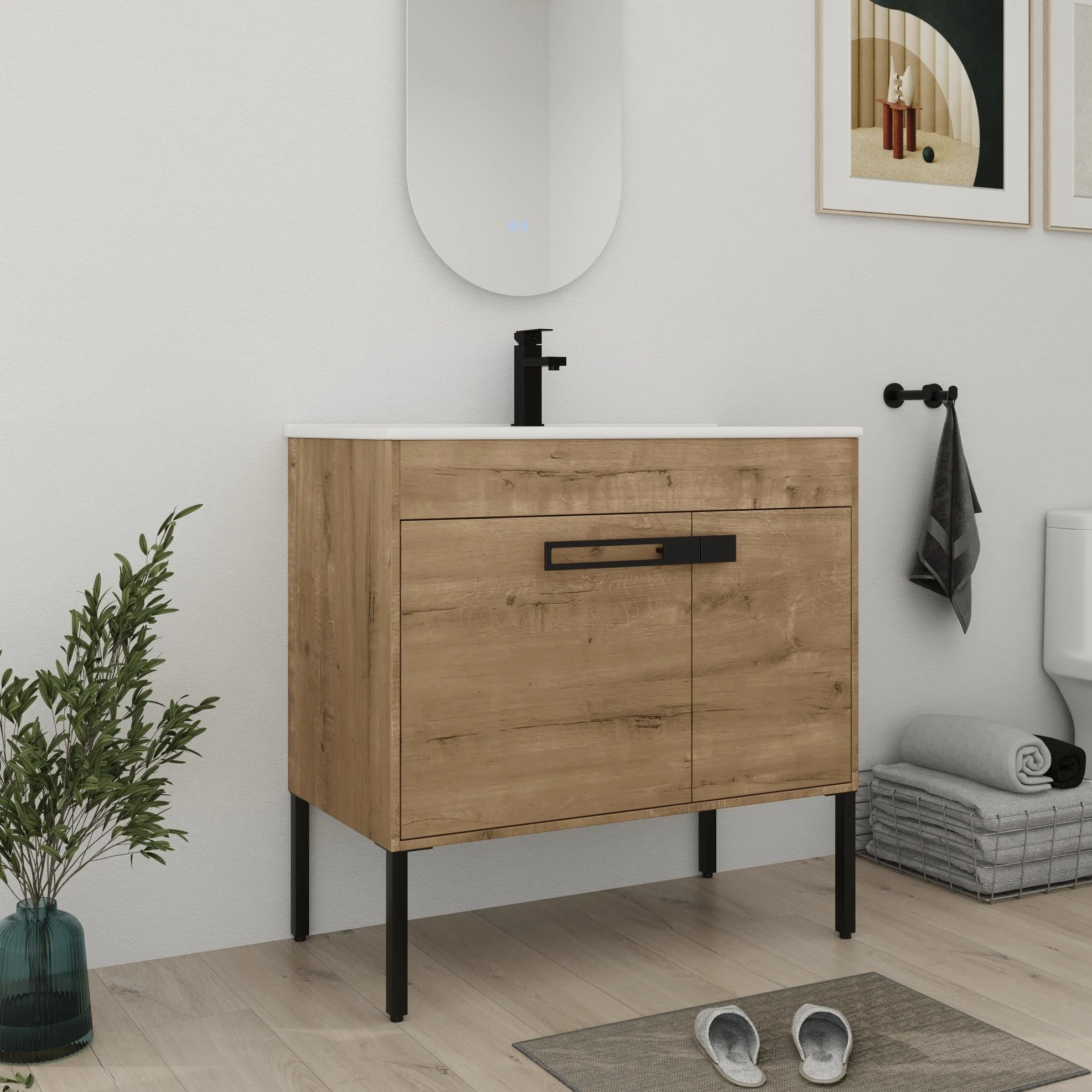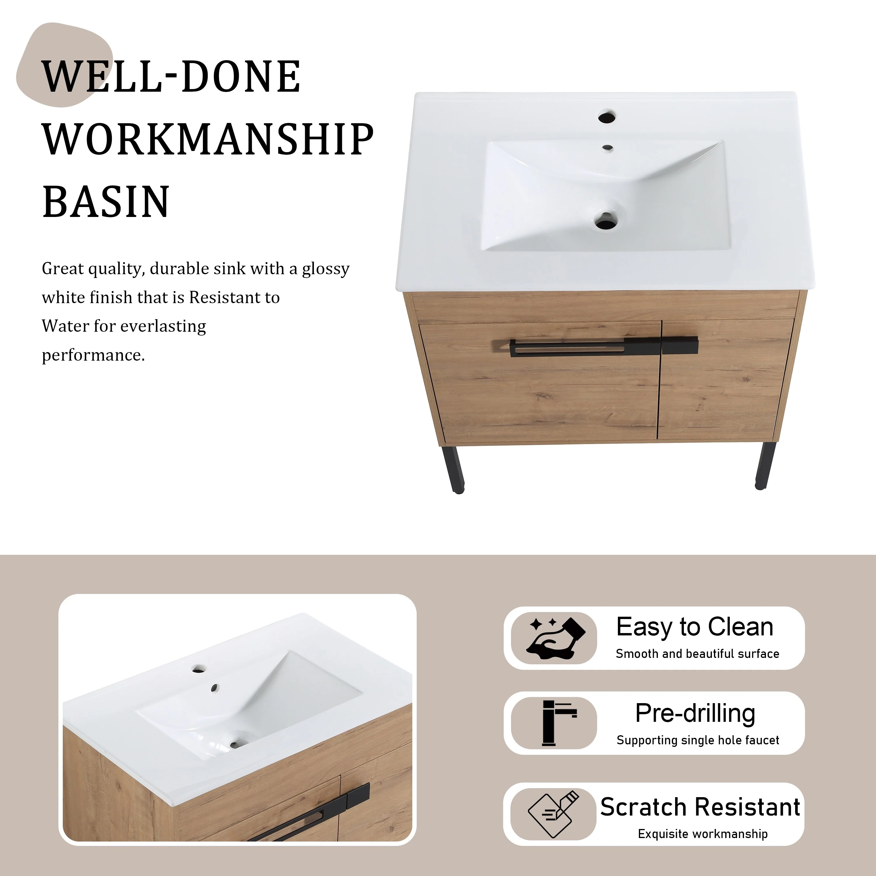 Bathroom Vanity With Sink In 24/30/36 Inch, Floating Bathroom Vanity or Freestanding Vanity With Soft Close Door