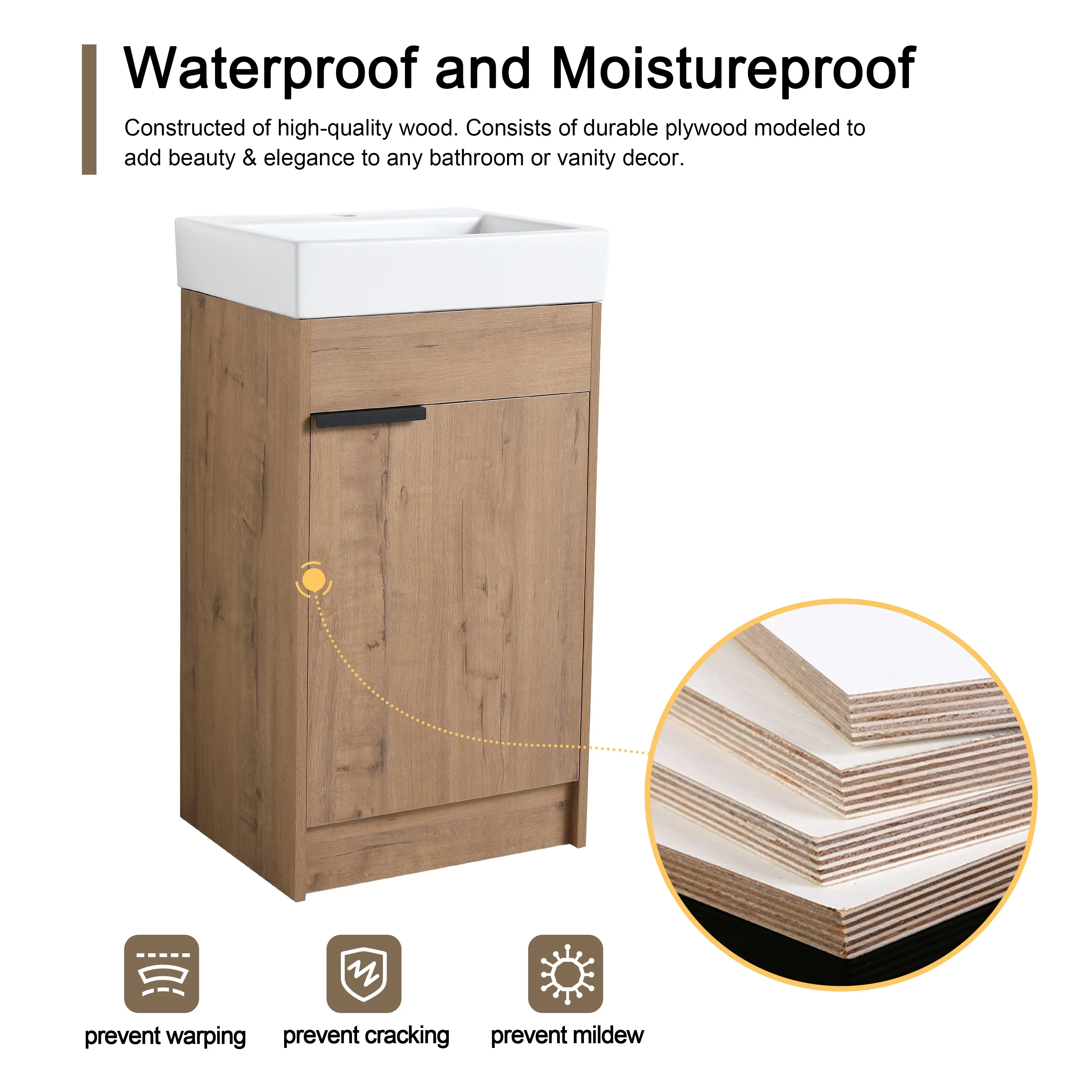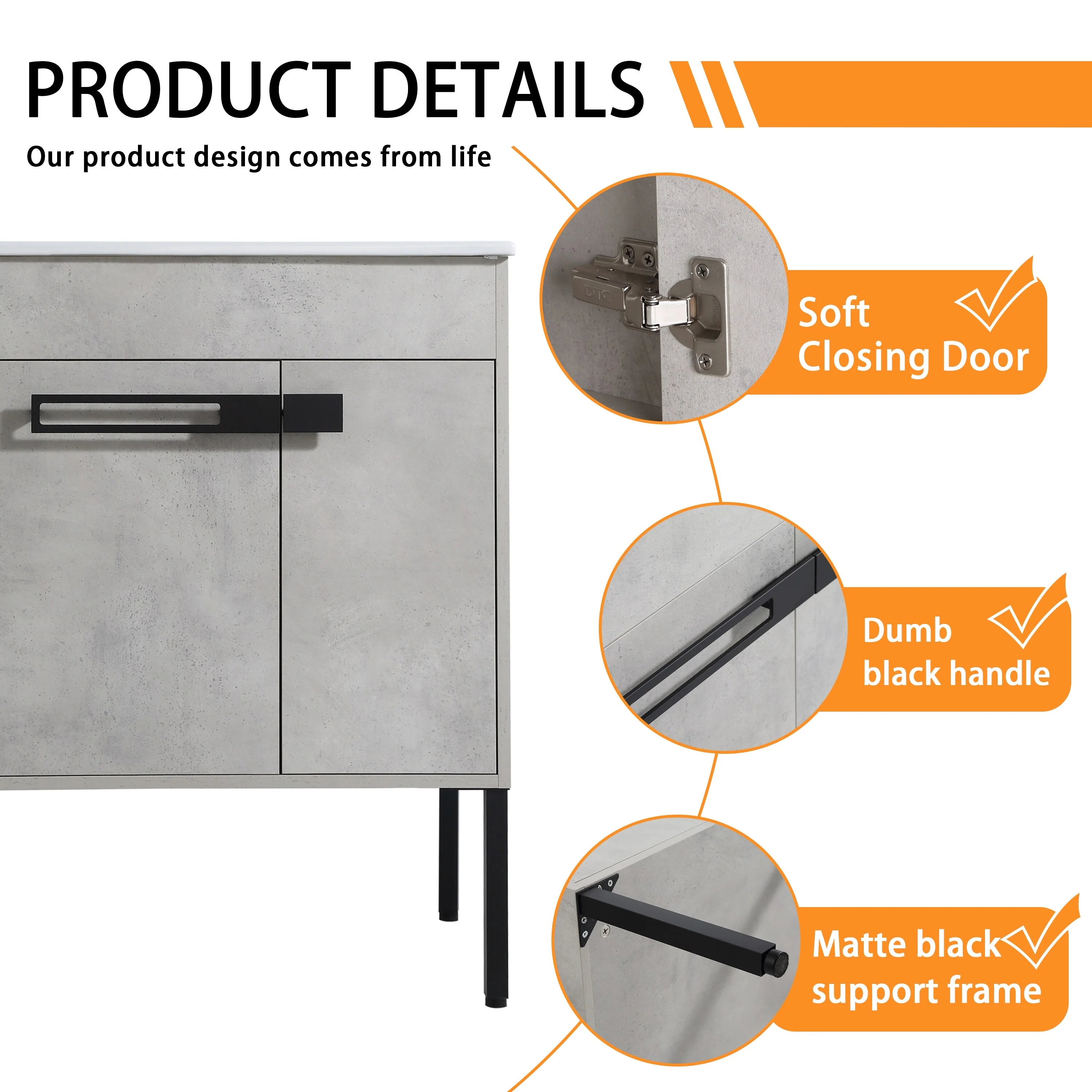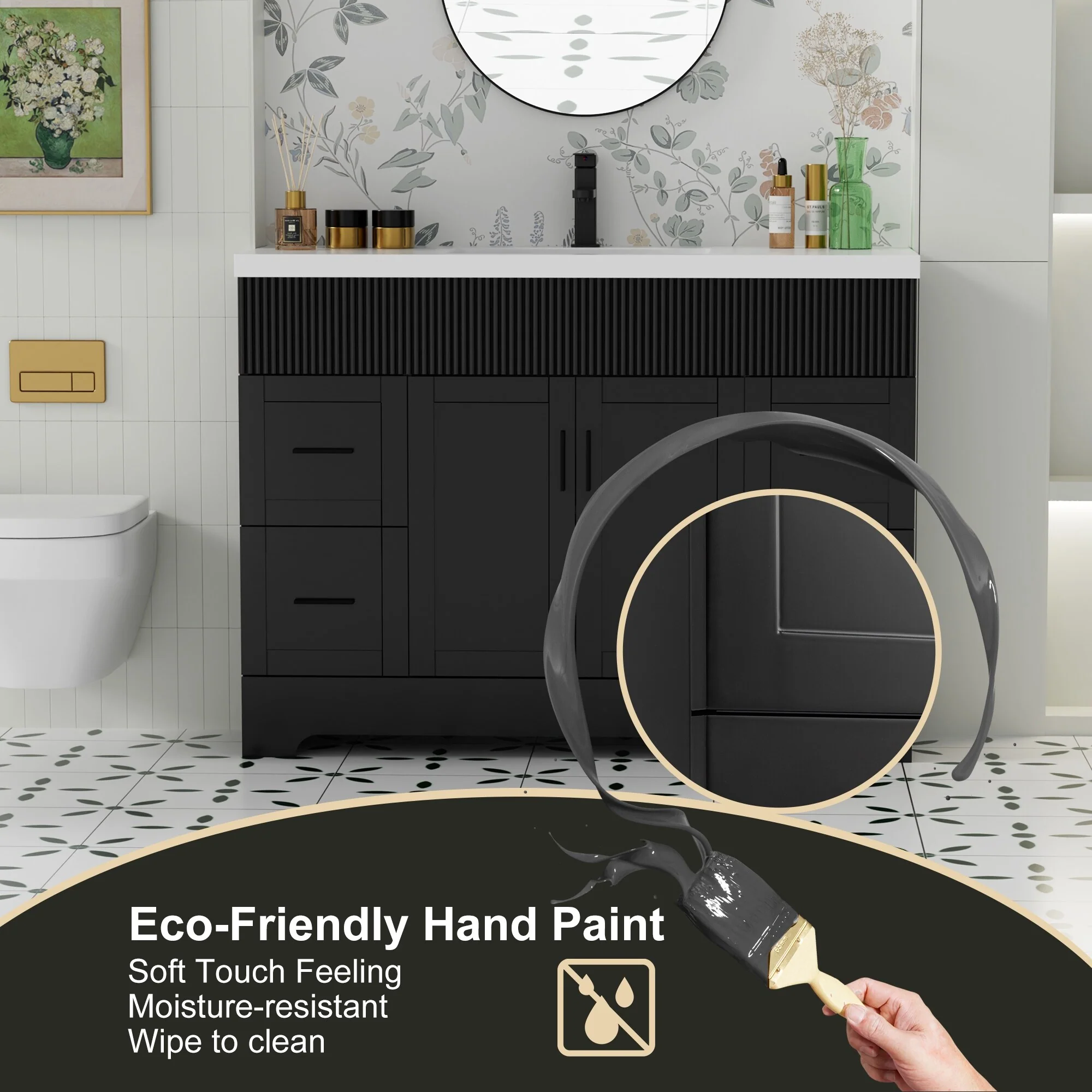 Bathroom Vanity With Sink In 24/30/36 Inch, Floating Bathroom Vanity or Freestanding Vanity With Soft Close Door