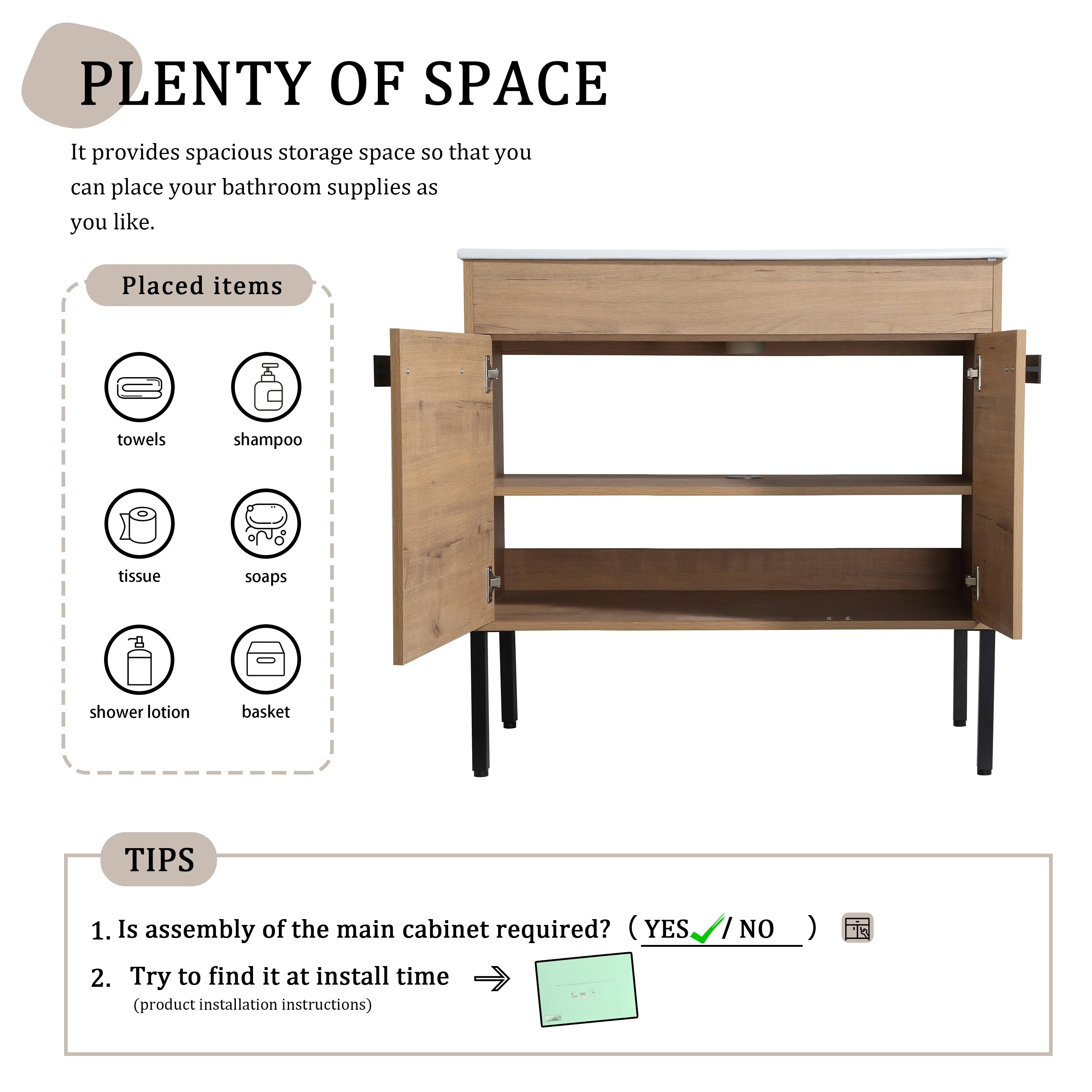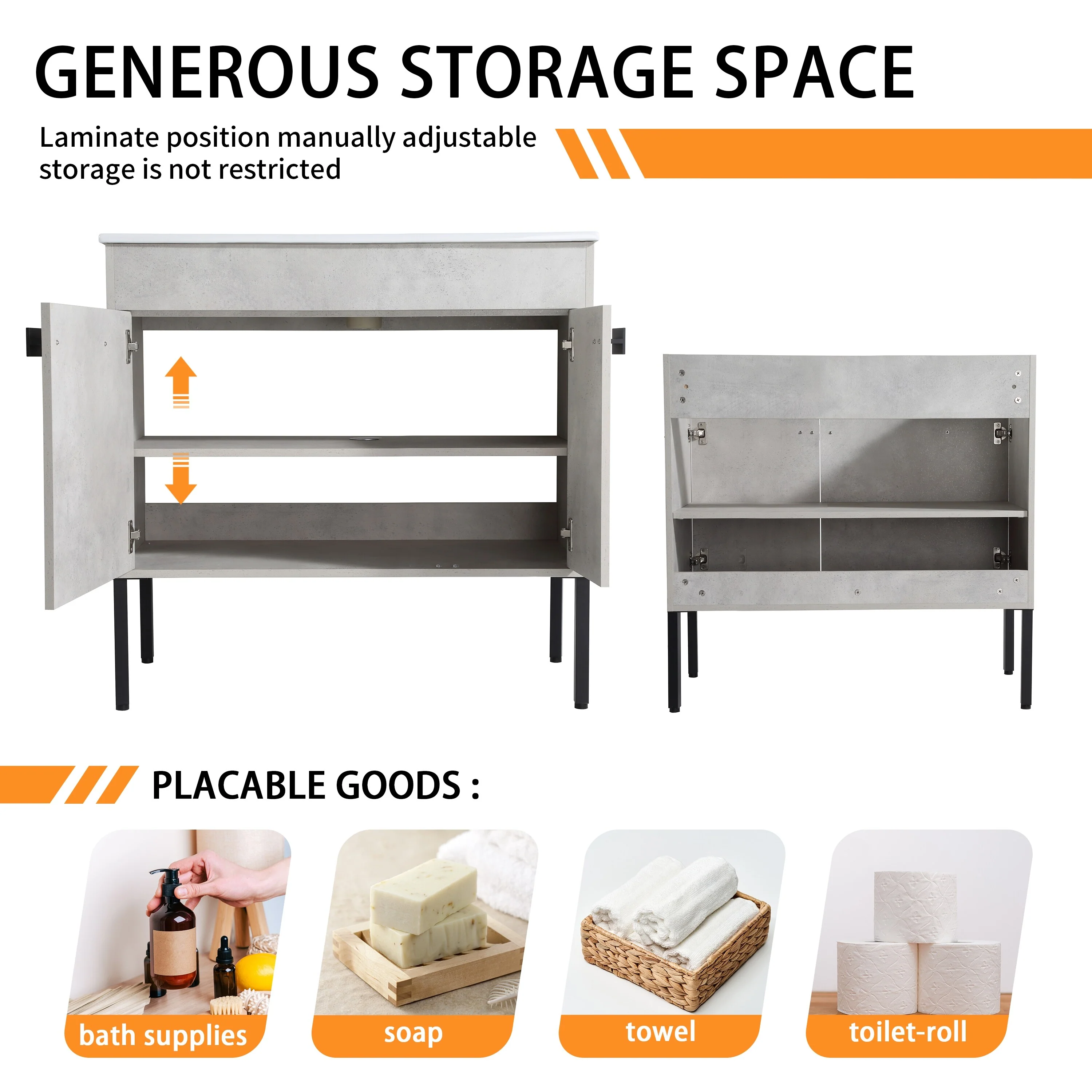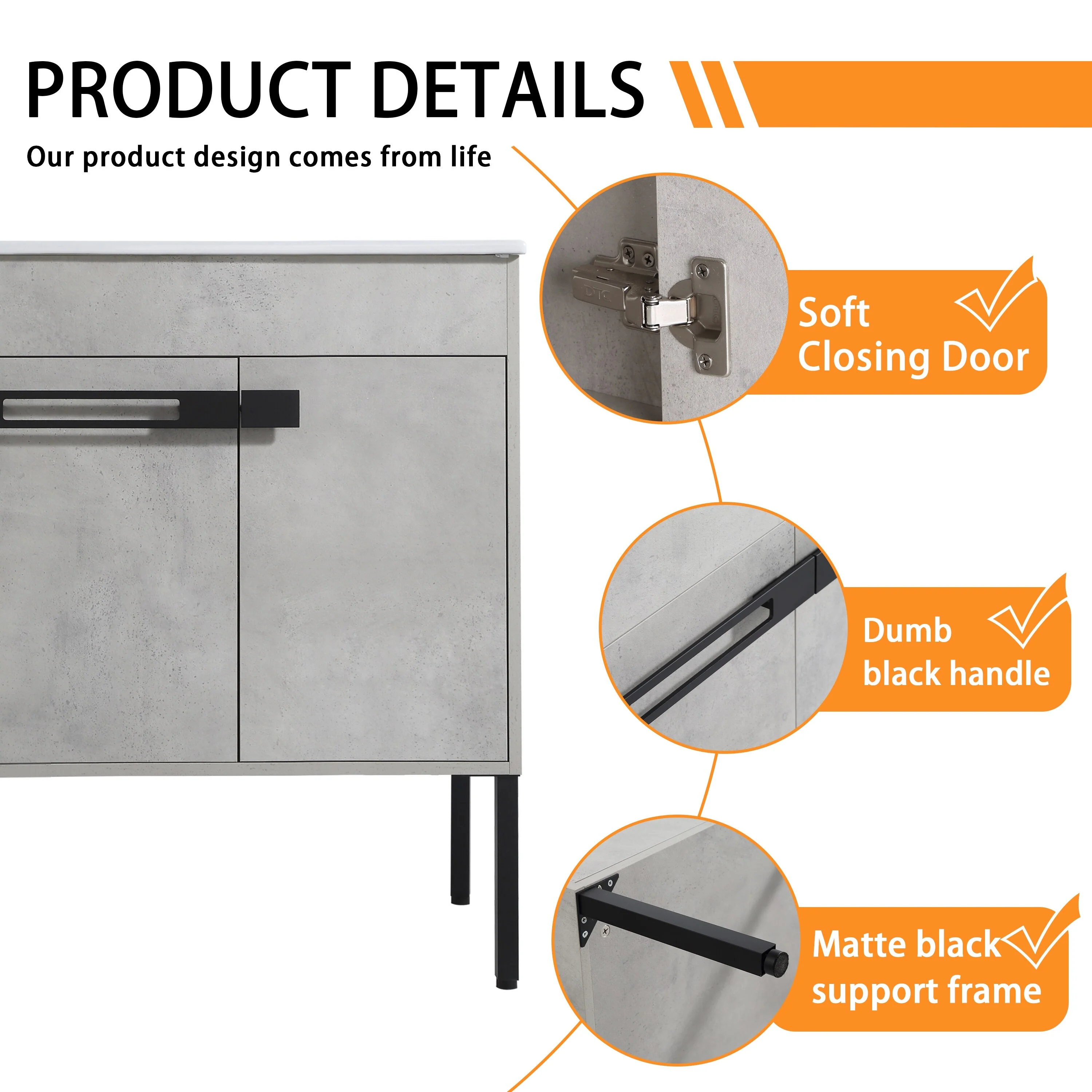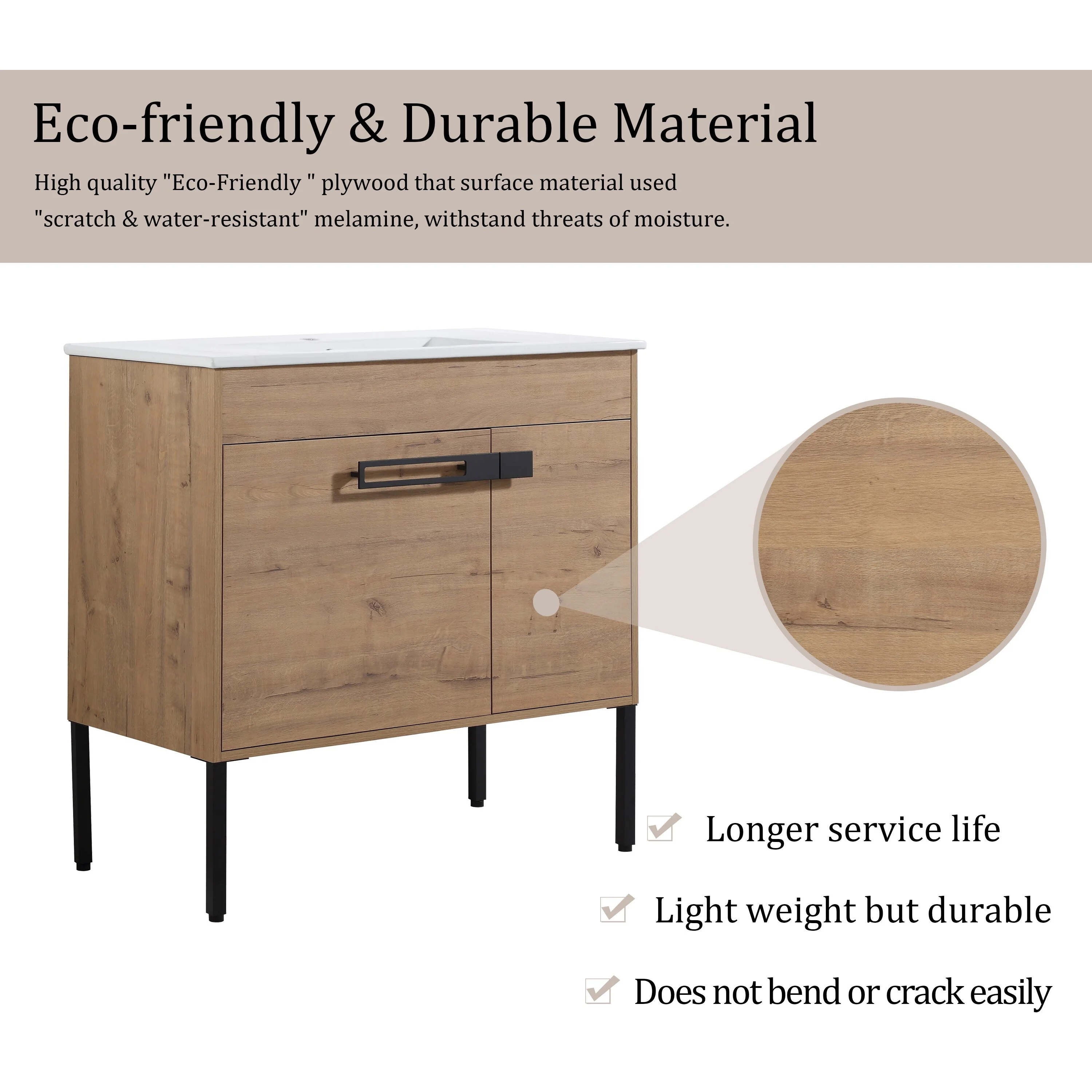 Bathroom Vanity With Sink In 24/30/36 Inch, Floating Bathroom Vanity or Freestanding Vanity With Soft Close Door