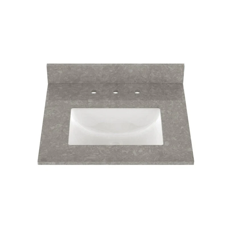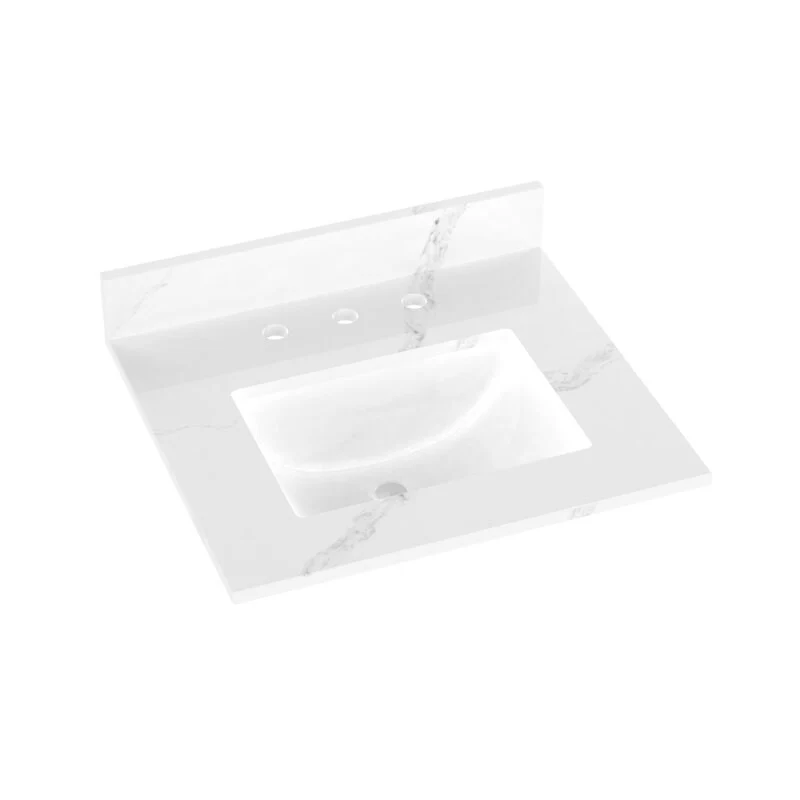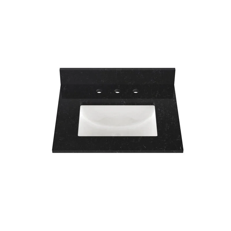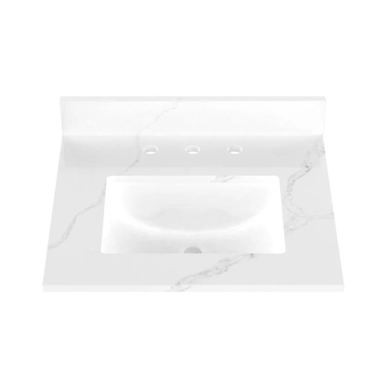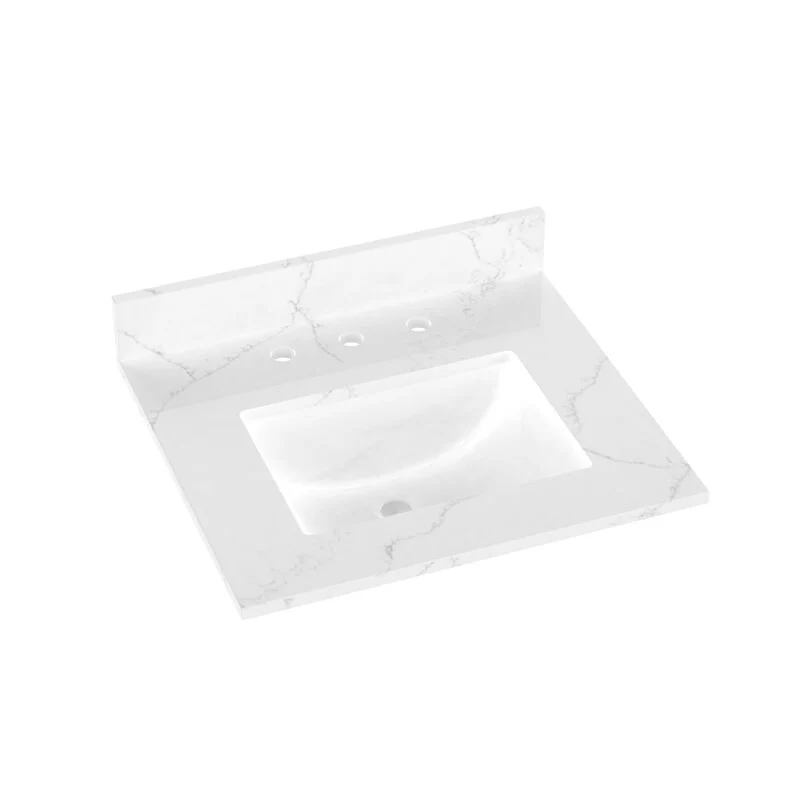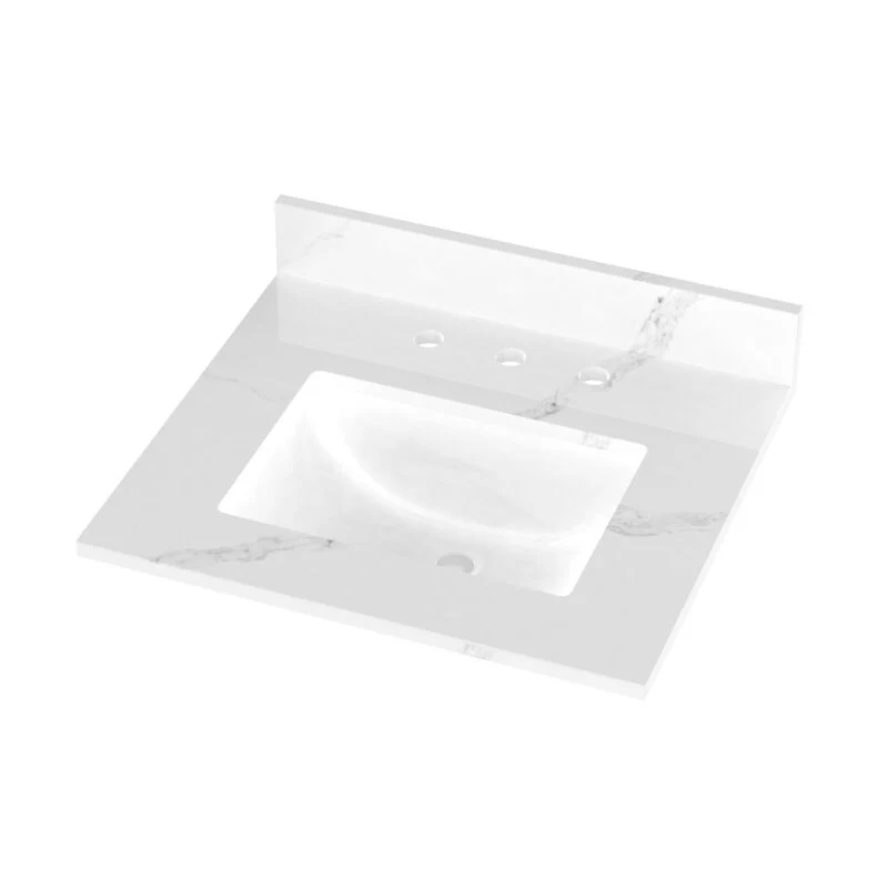 Winette 25" x 22" Quartz Bathroom Vanity Top with White Rectangular Cermic Sink and Backsplash