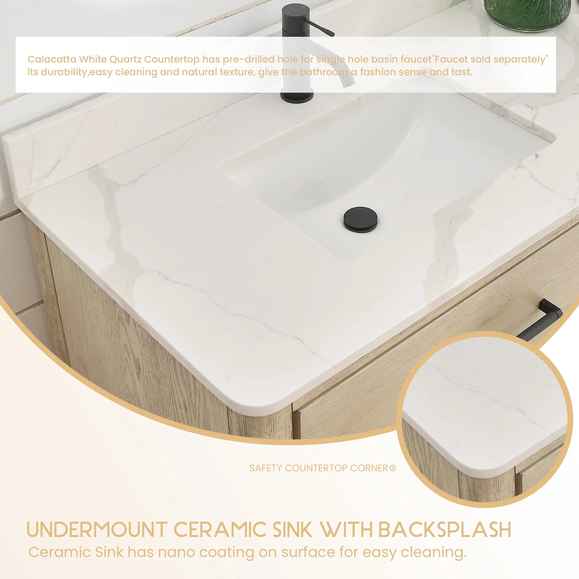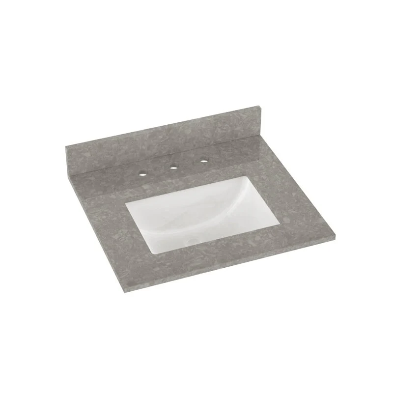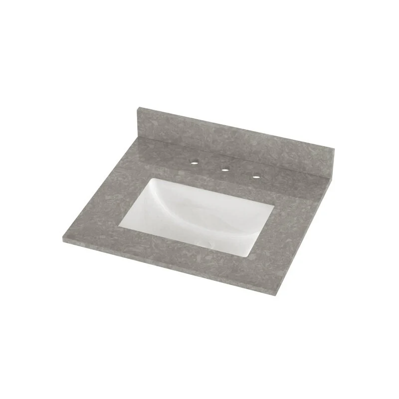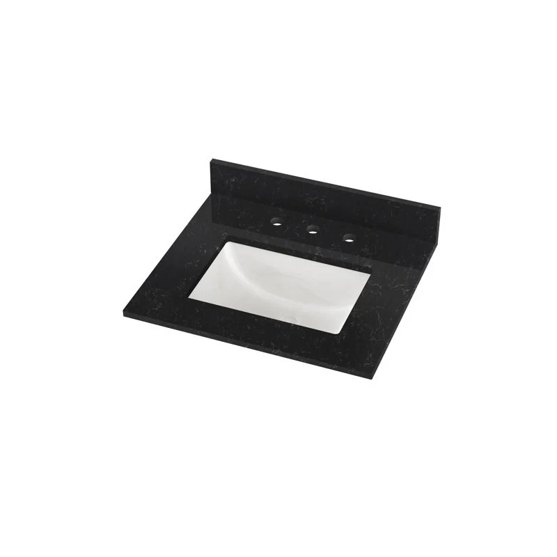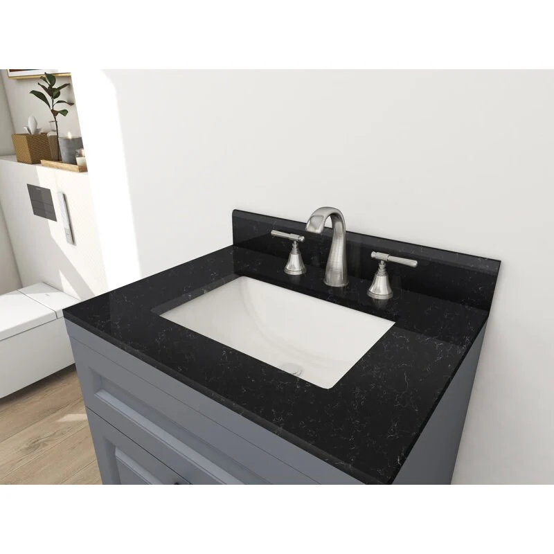 Winette 25" x 22" Quartz Bathroom Vanity Top with White Rectangular Cermic Sink and Backsplash