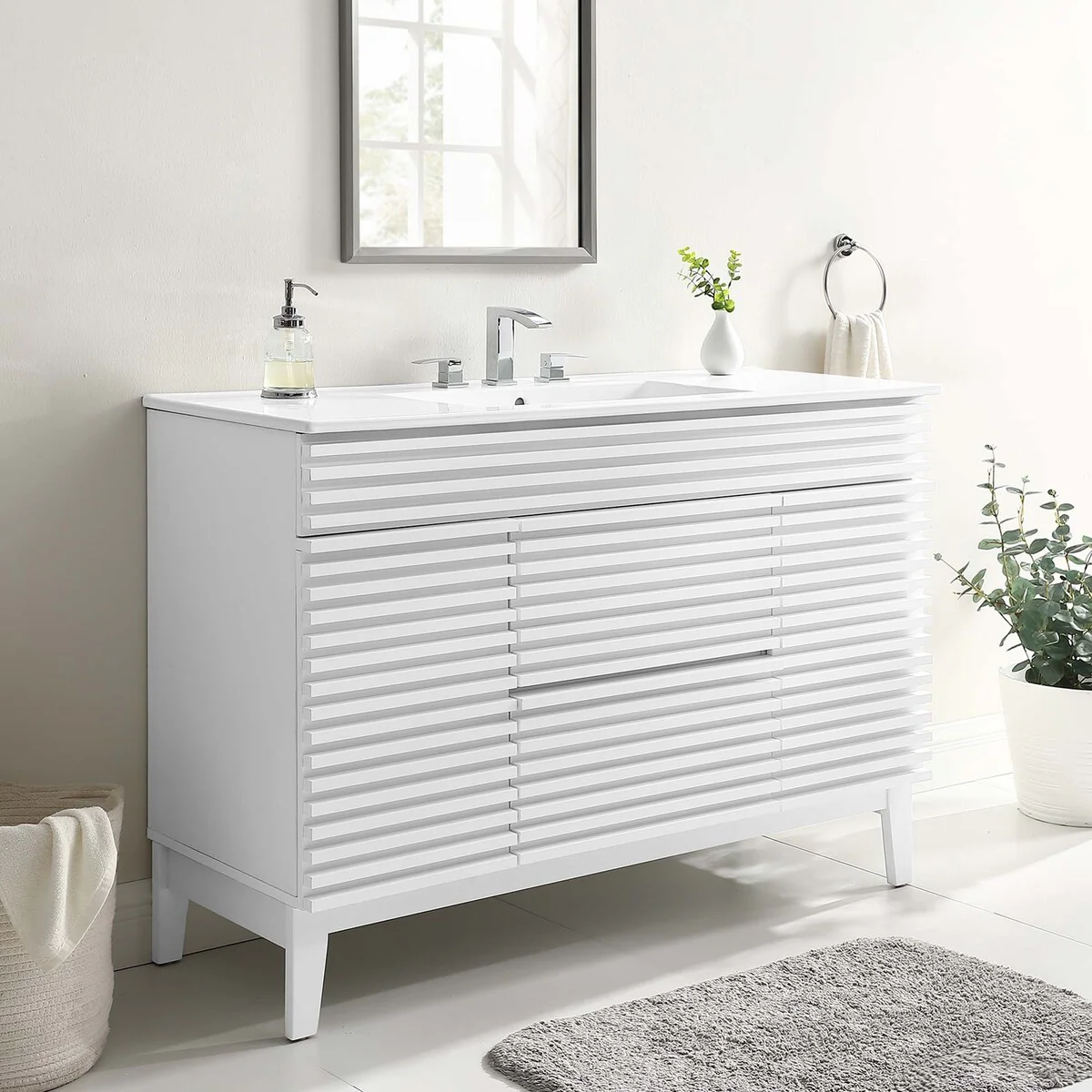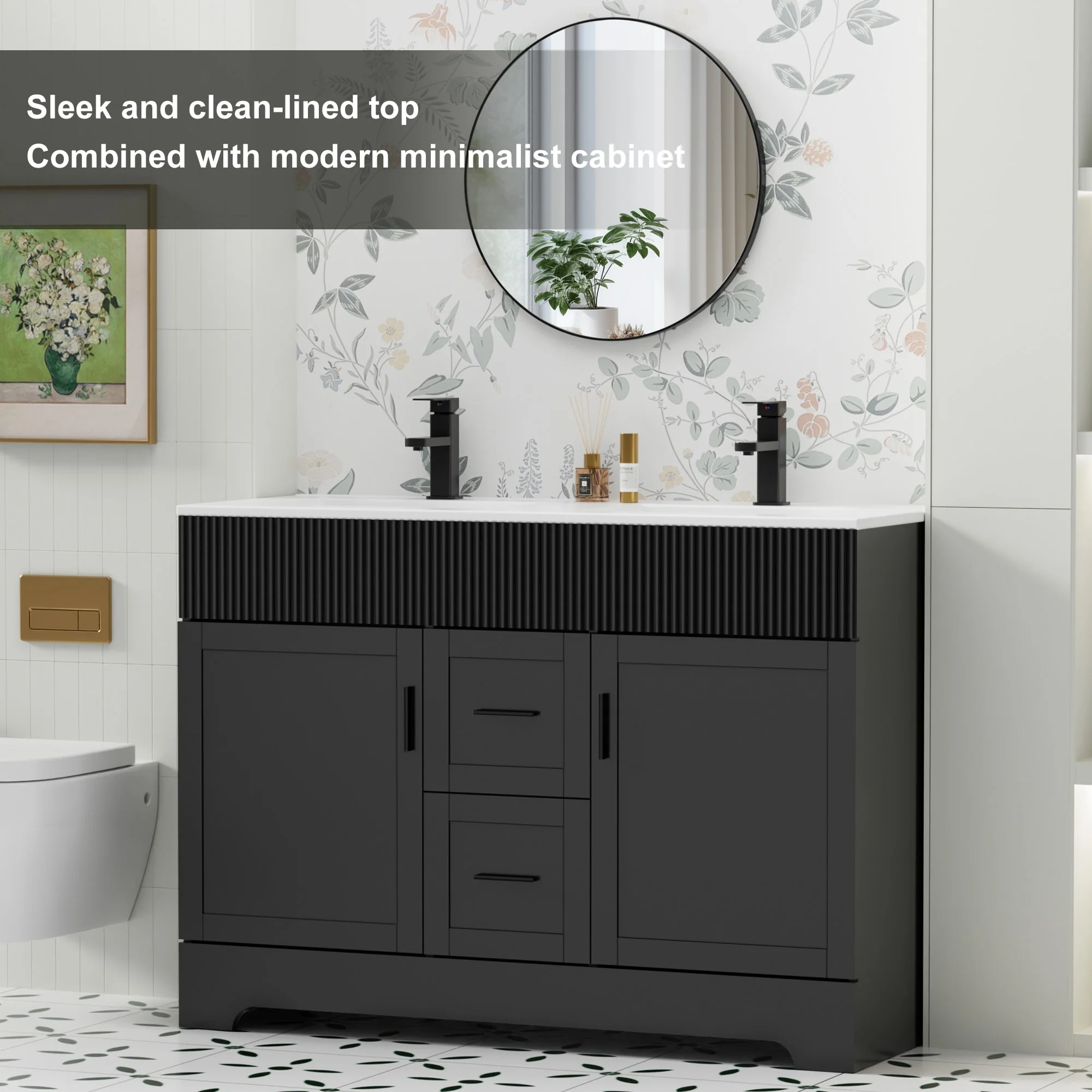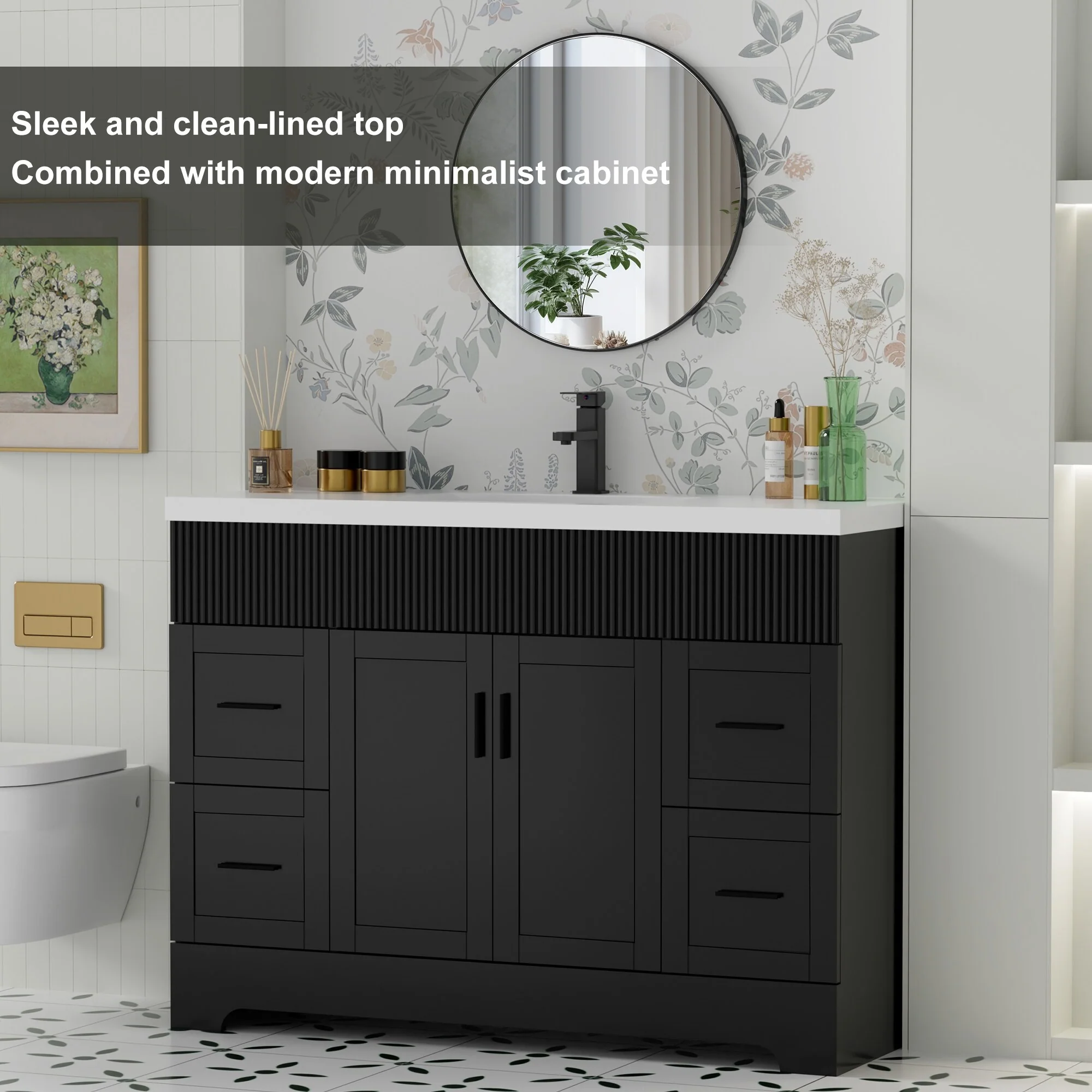 Wavy Line 30"/36"/48" Bathroom Vanity Set with Sink & Faucet