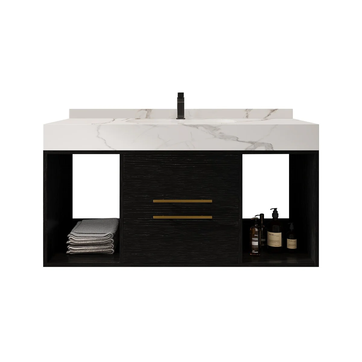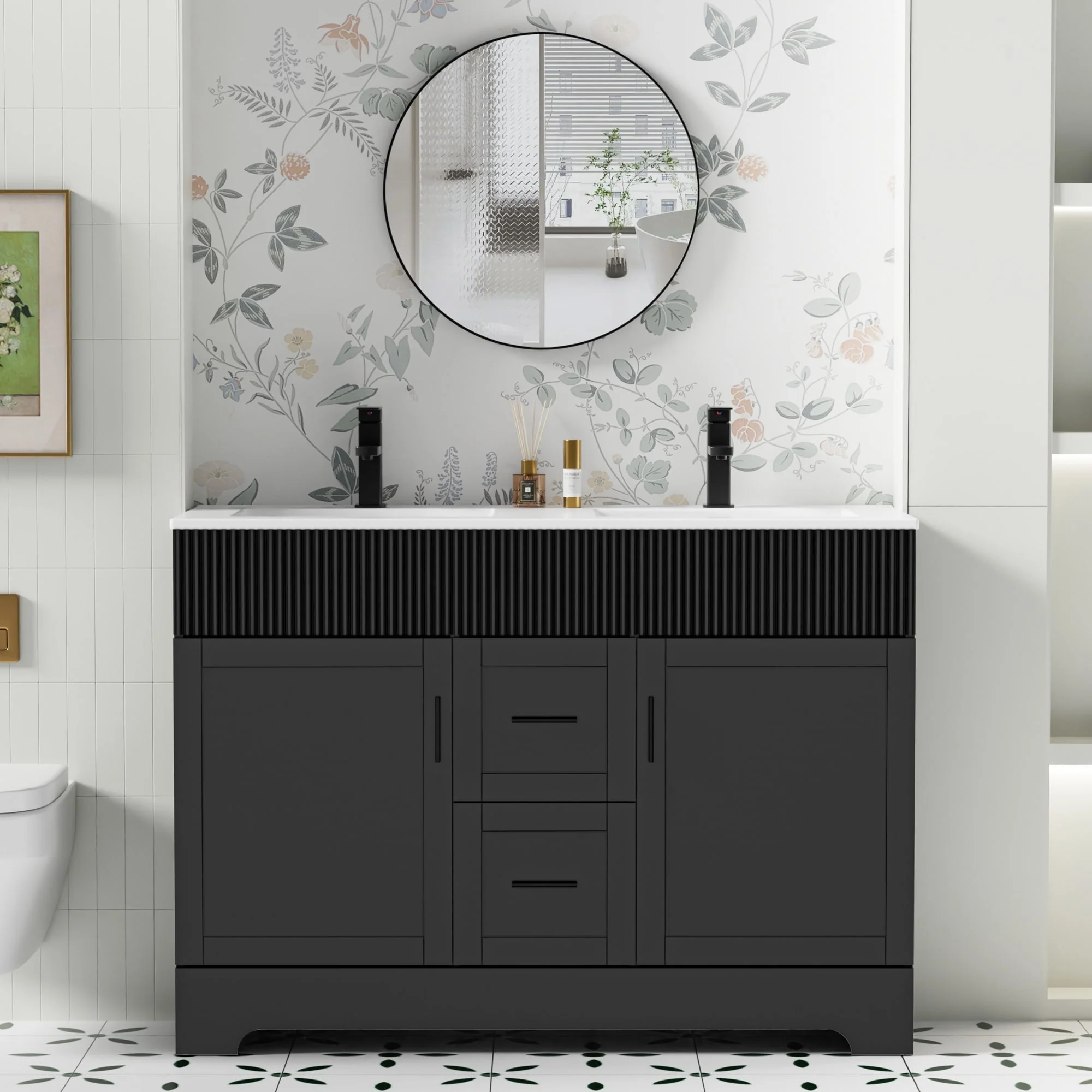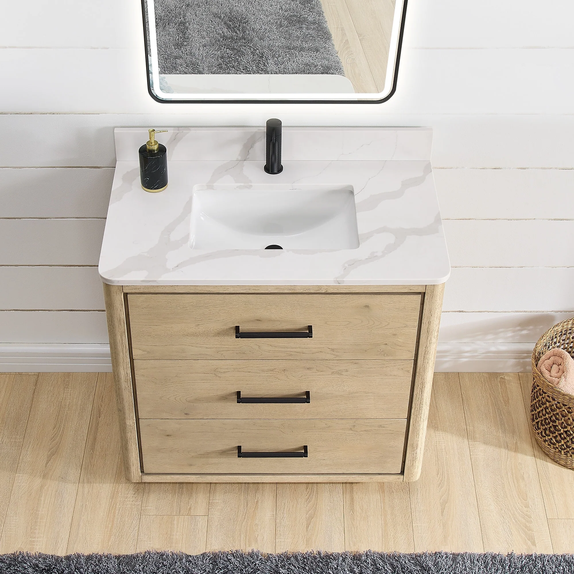 Wavy Line 30"/36"/48" Bathroom Vanity Set with Sink & Faucet