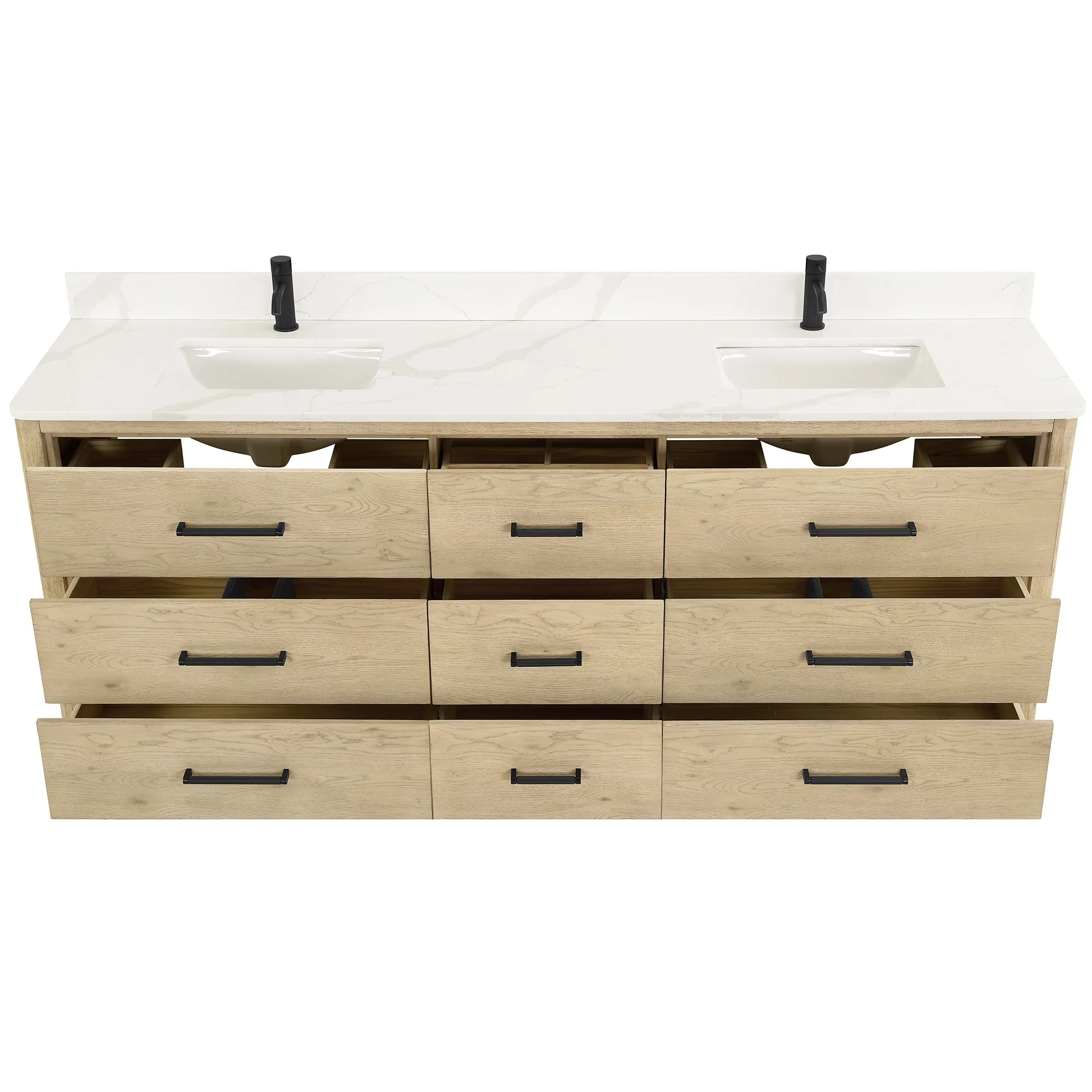 Vanity Art 72" Double Sink Bathroom Vanity Cabinet with Engineered Marble Top