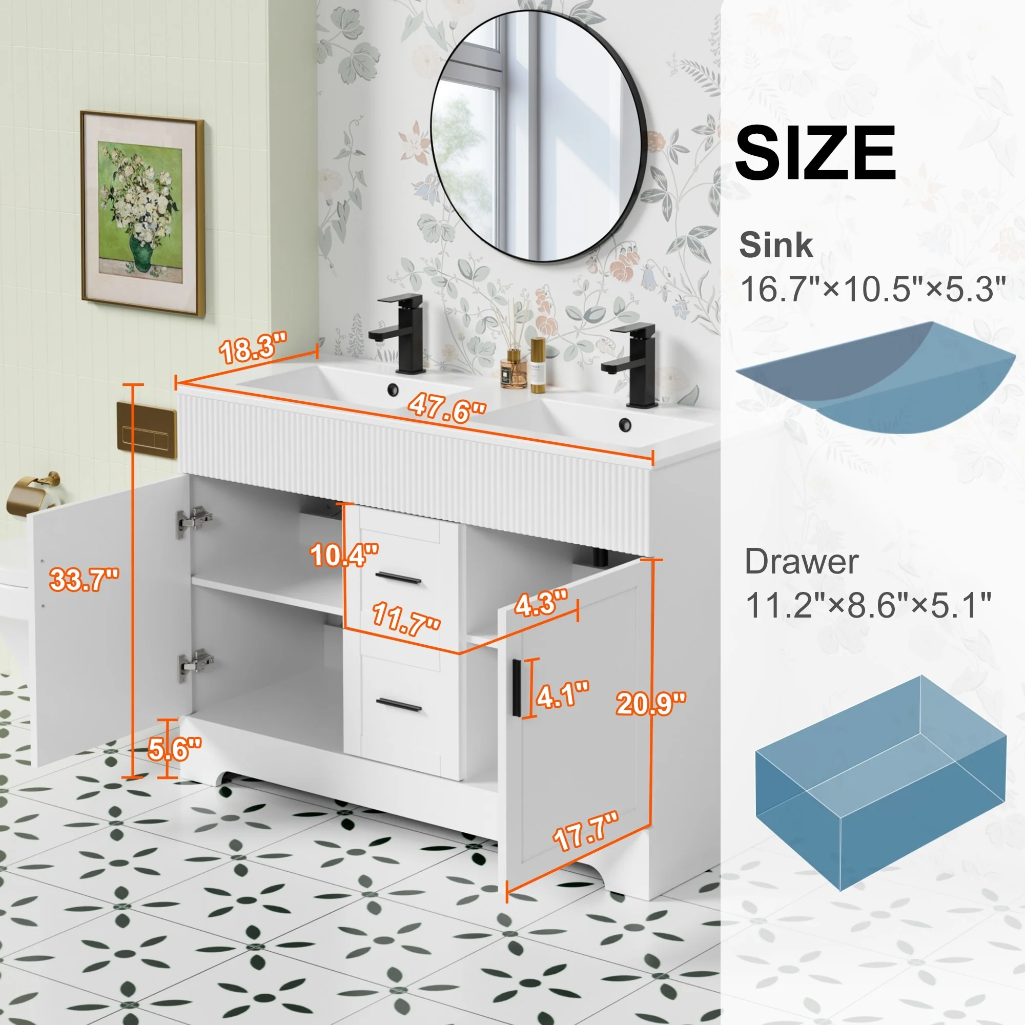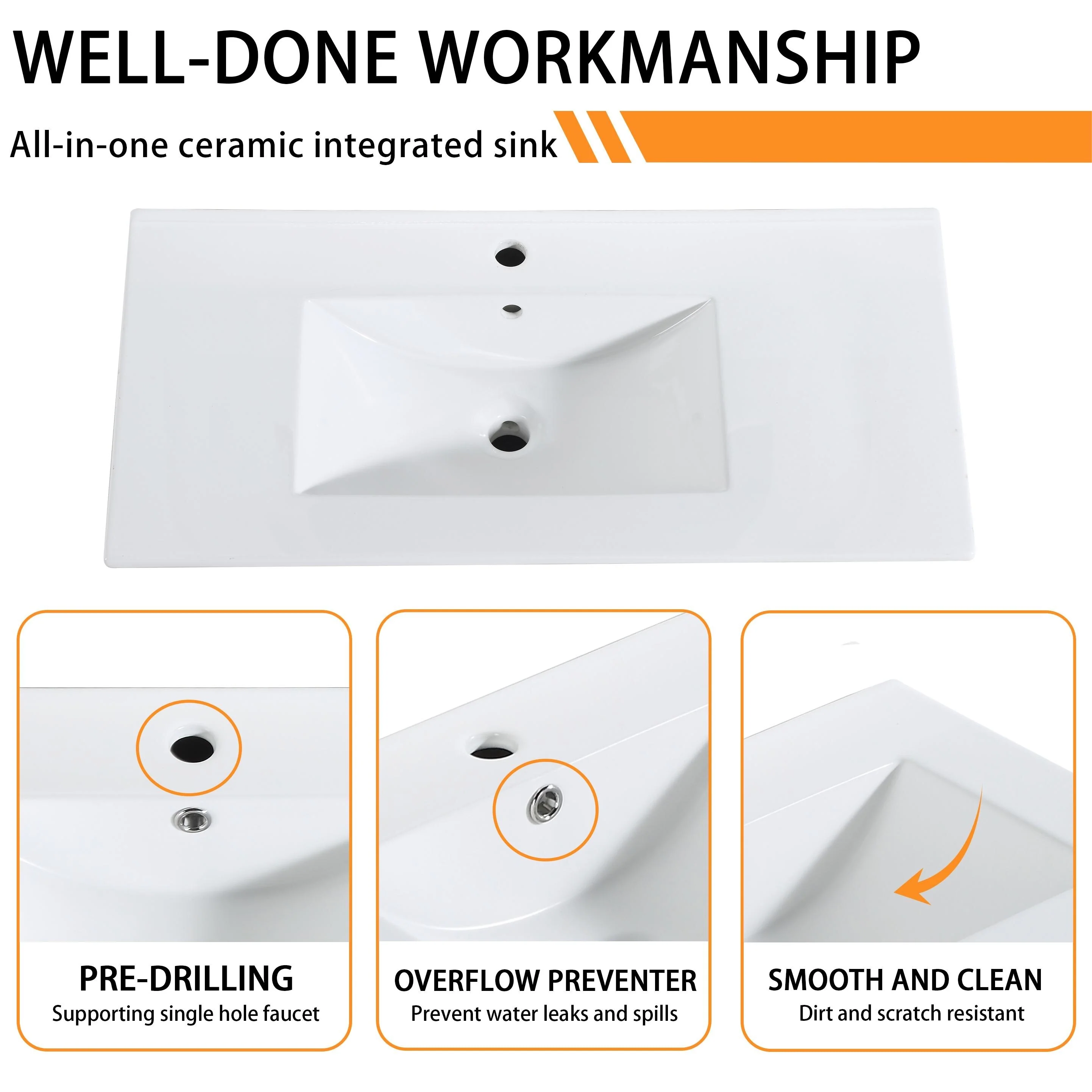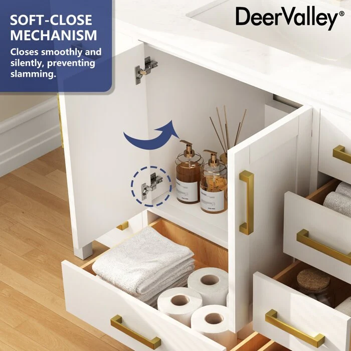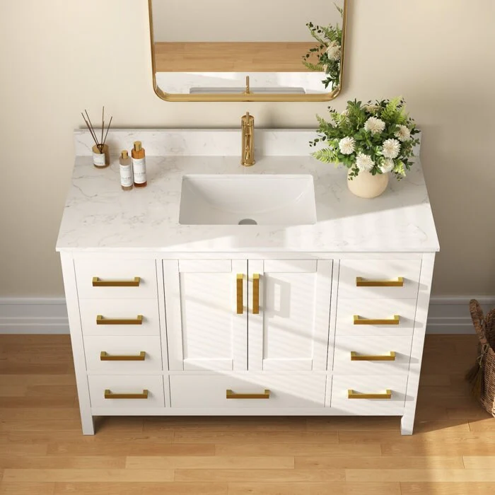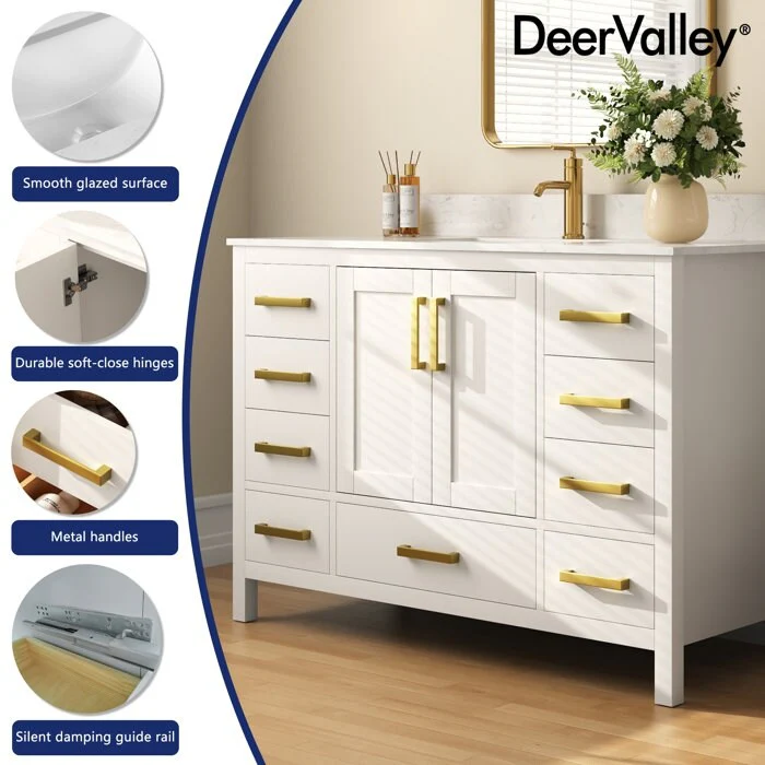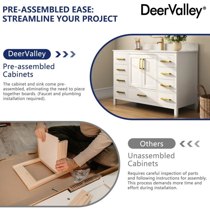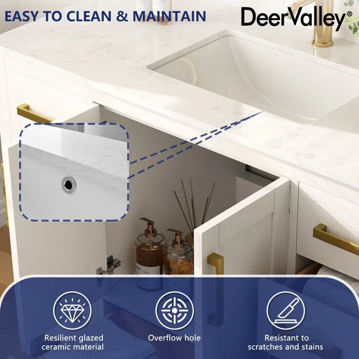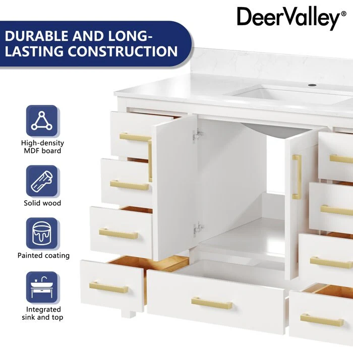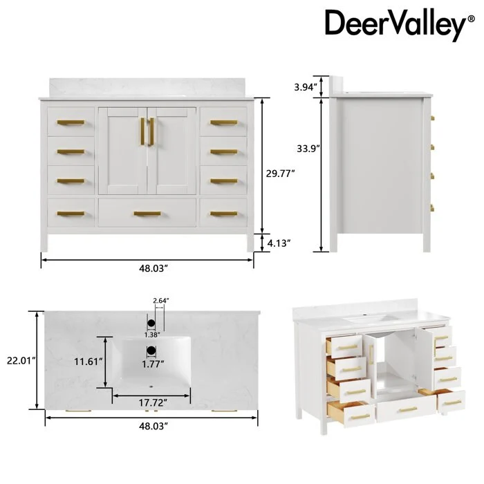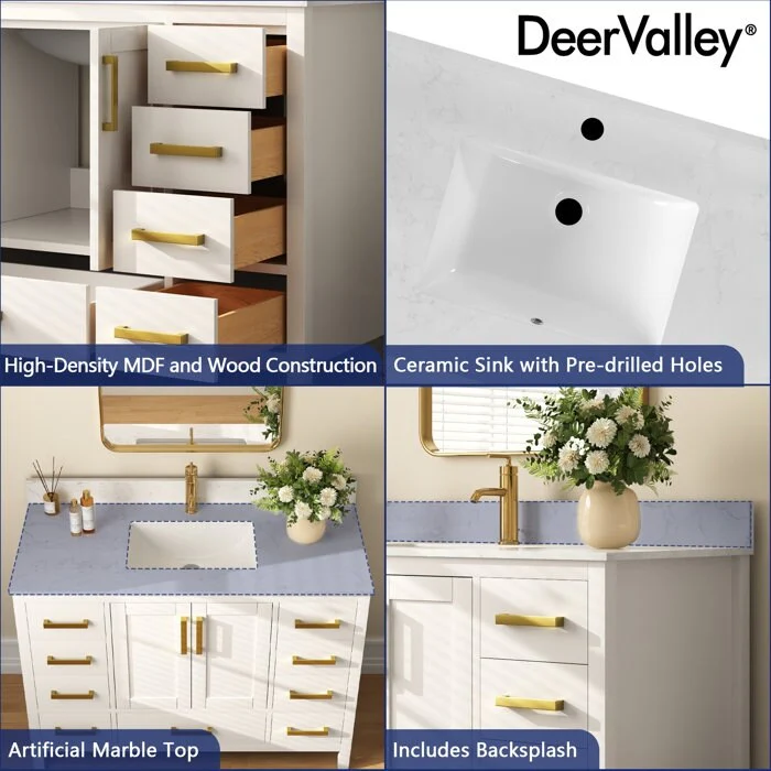 DeerValley 48 inch Bathroom Vanity Ceramic Sink Top with Backsplash, Pre-assembled Bathroom Cabinet White