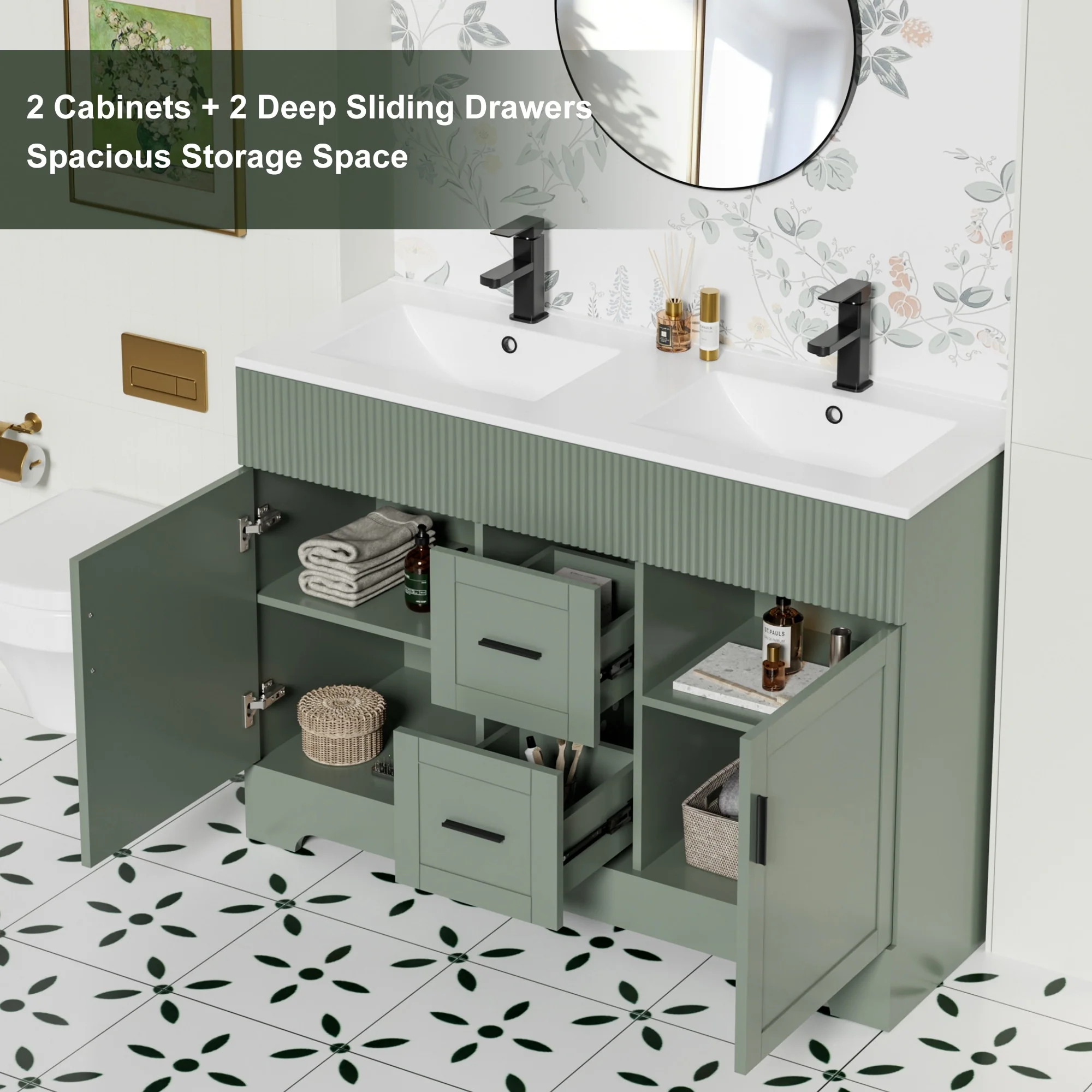 Prismora 48 in. Juniper Green Vanity with Countertop & Splash, Single Sink