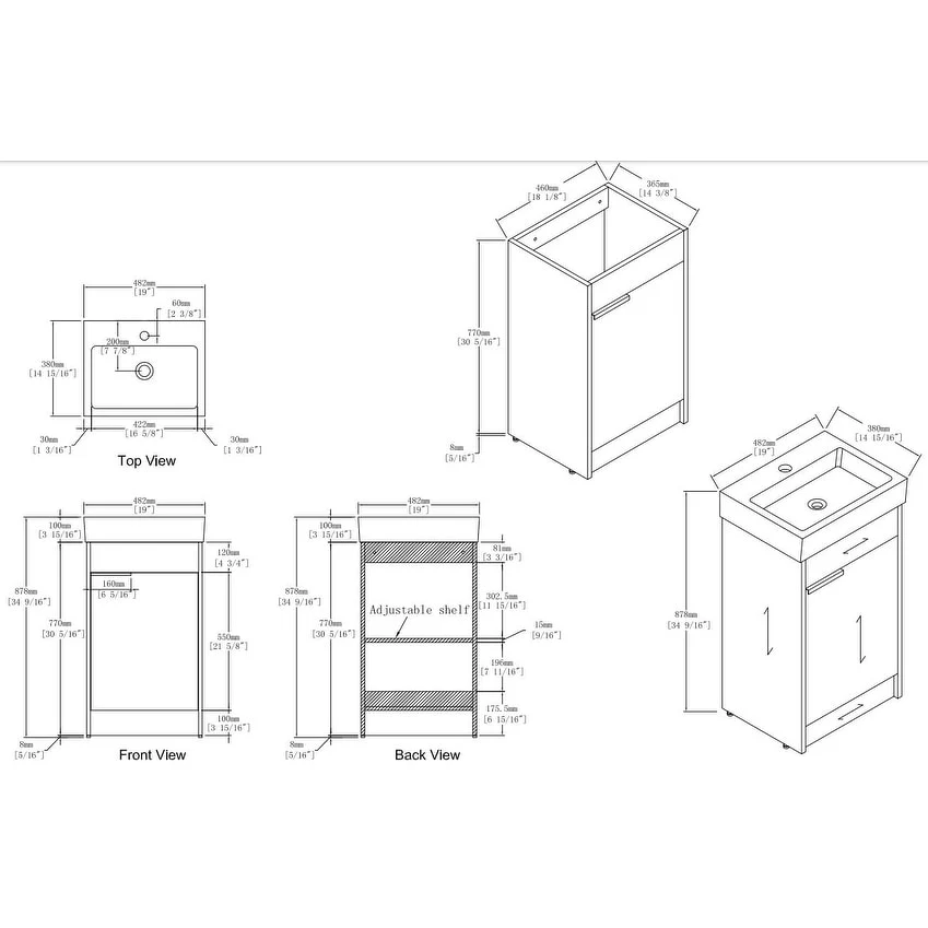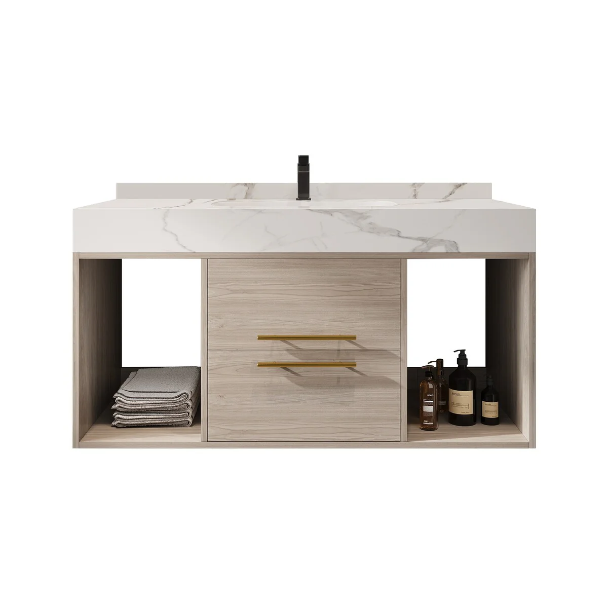 Wall Mounted Bathroom Vanity Set W/ Drop in Sink Mid-Century Cabinet Set