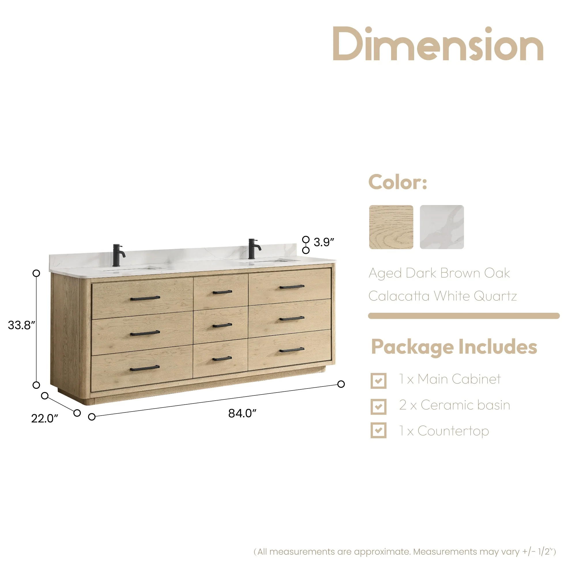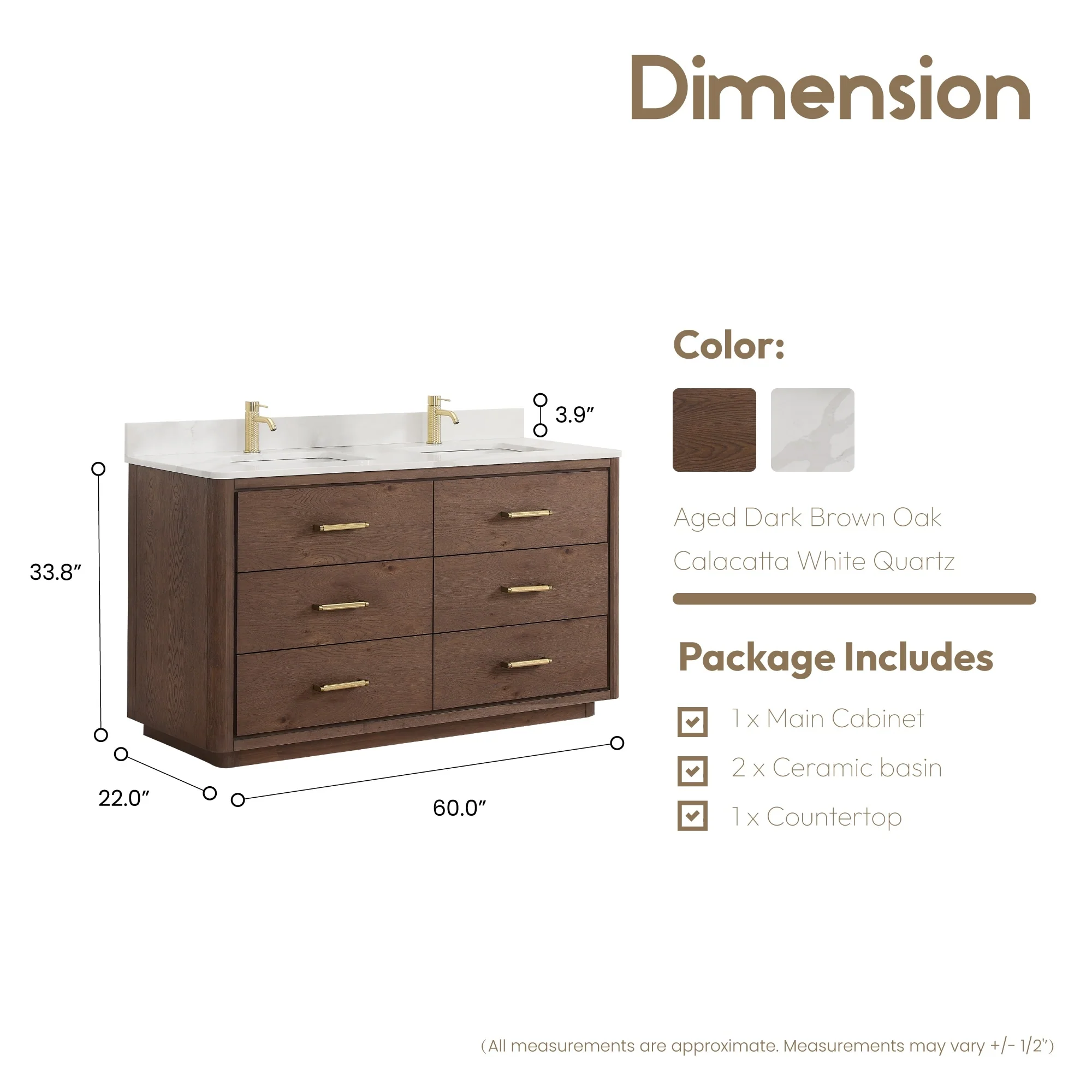 Ari Bath Venice 55" Bathroom Vanity, Oak Gray