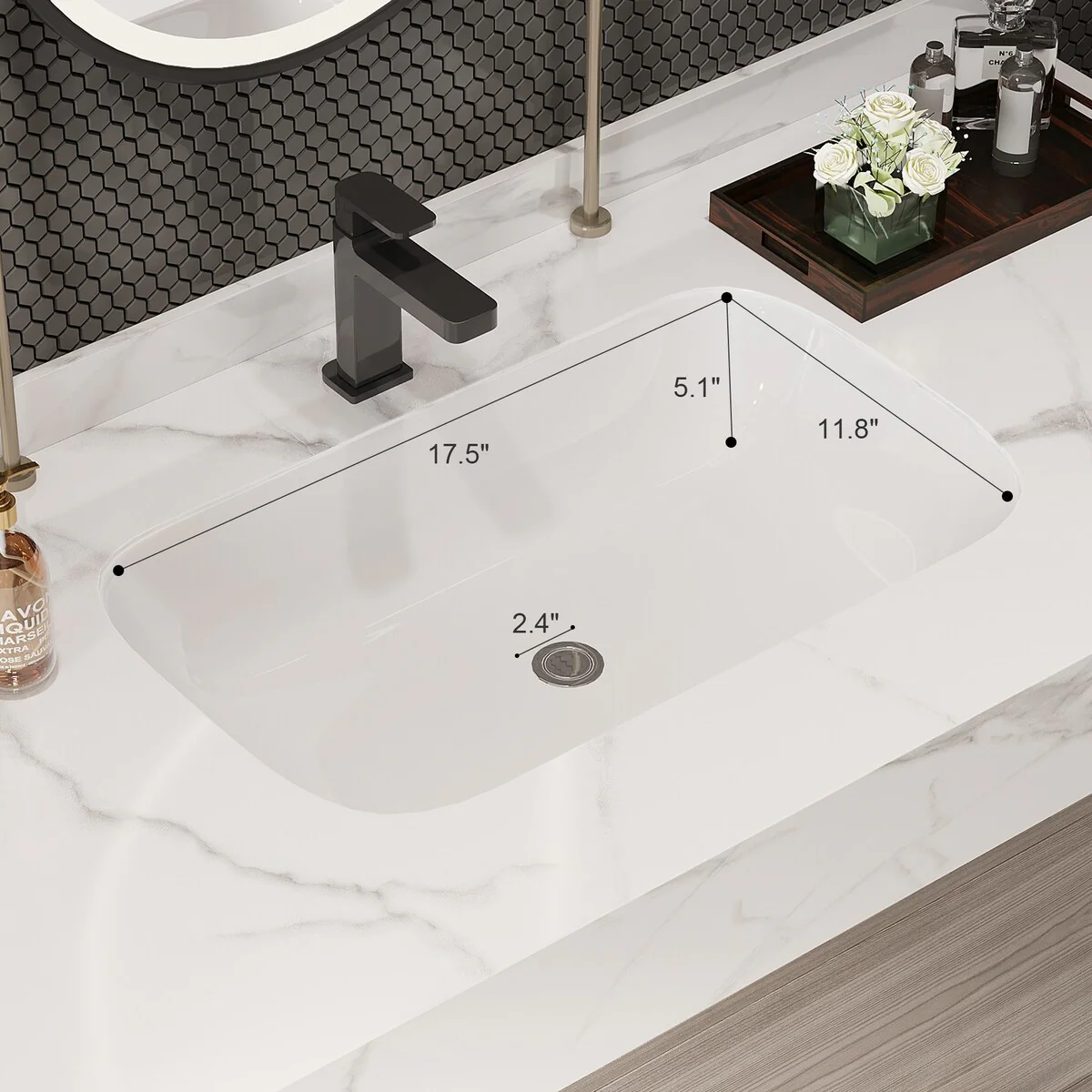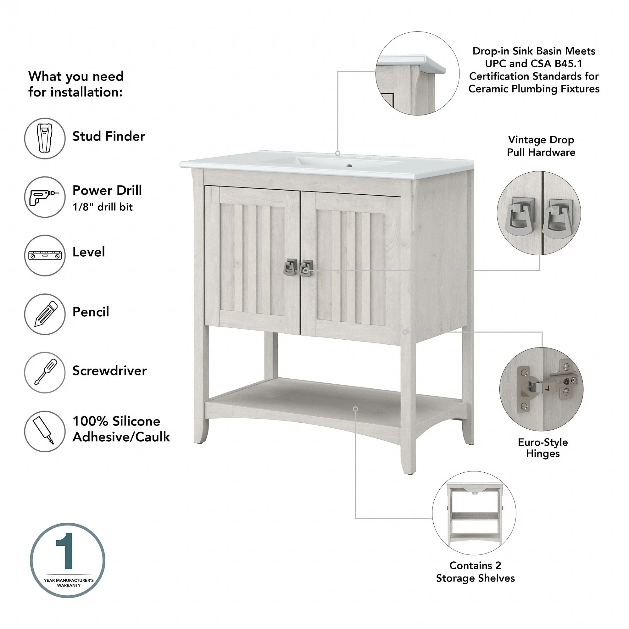Lilleham Bathroom Sink Vanity with White Marble Veneer Stone Top by iNSPIRE Q Classic